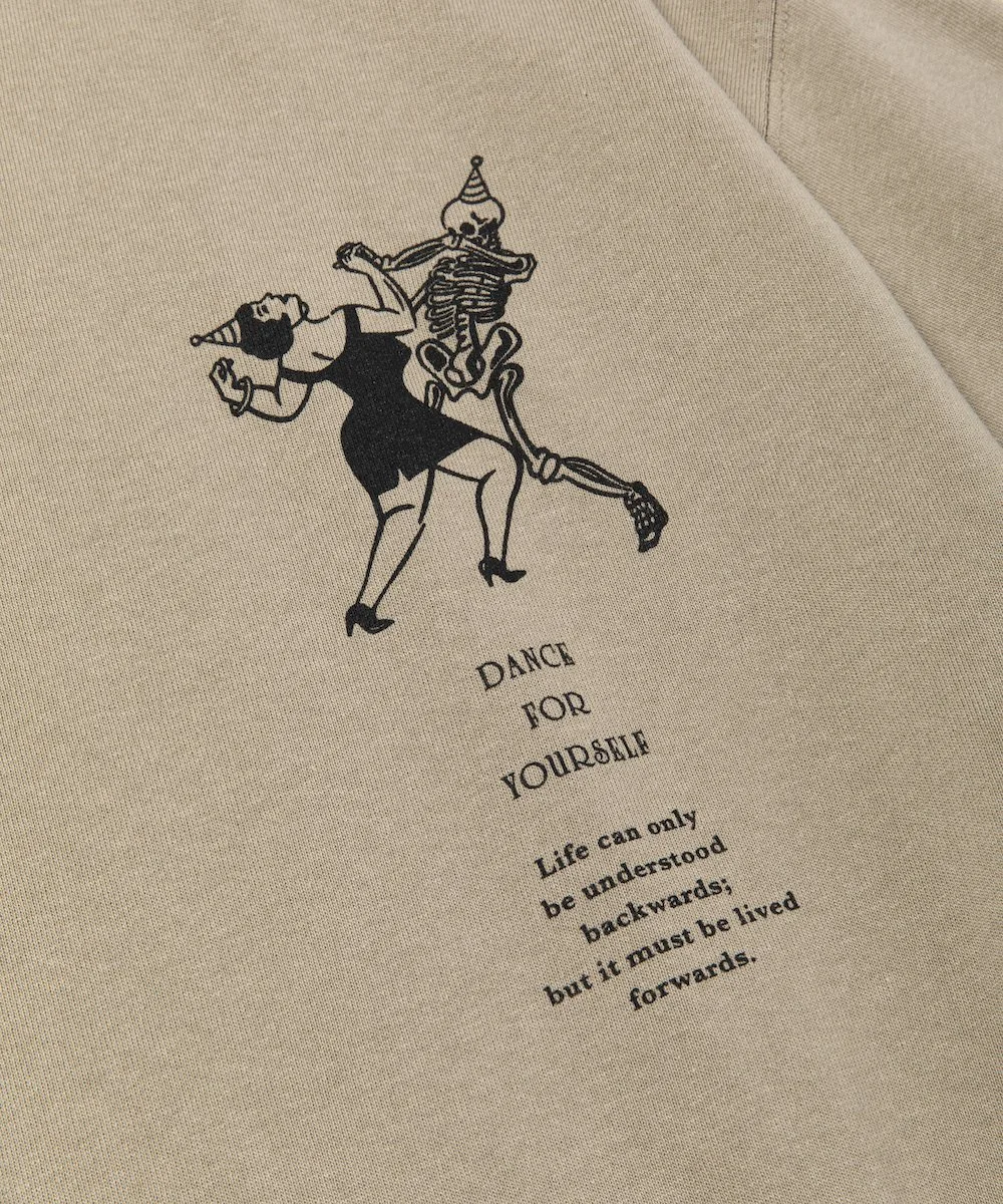 Эта футболка, сшитая по индивидуальному заказу, украшена графическим изображением и надписью на груди: «Танцуй для себя». На левом рукаве вышита нашивка. Каждый принт тщательно наносится методом шелкографии на фабрике в Японии. Силуэт широкий, с достаточной шириной в груди и плечах, что обеспечивает комфортную посадку как для мужчин, так и для женщин.