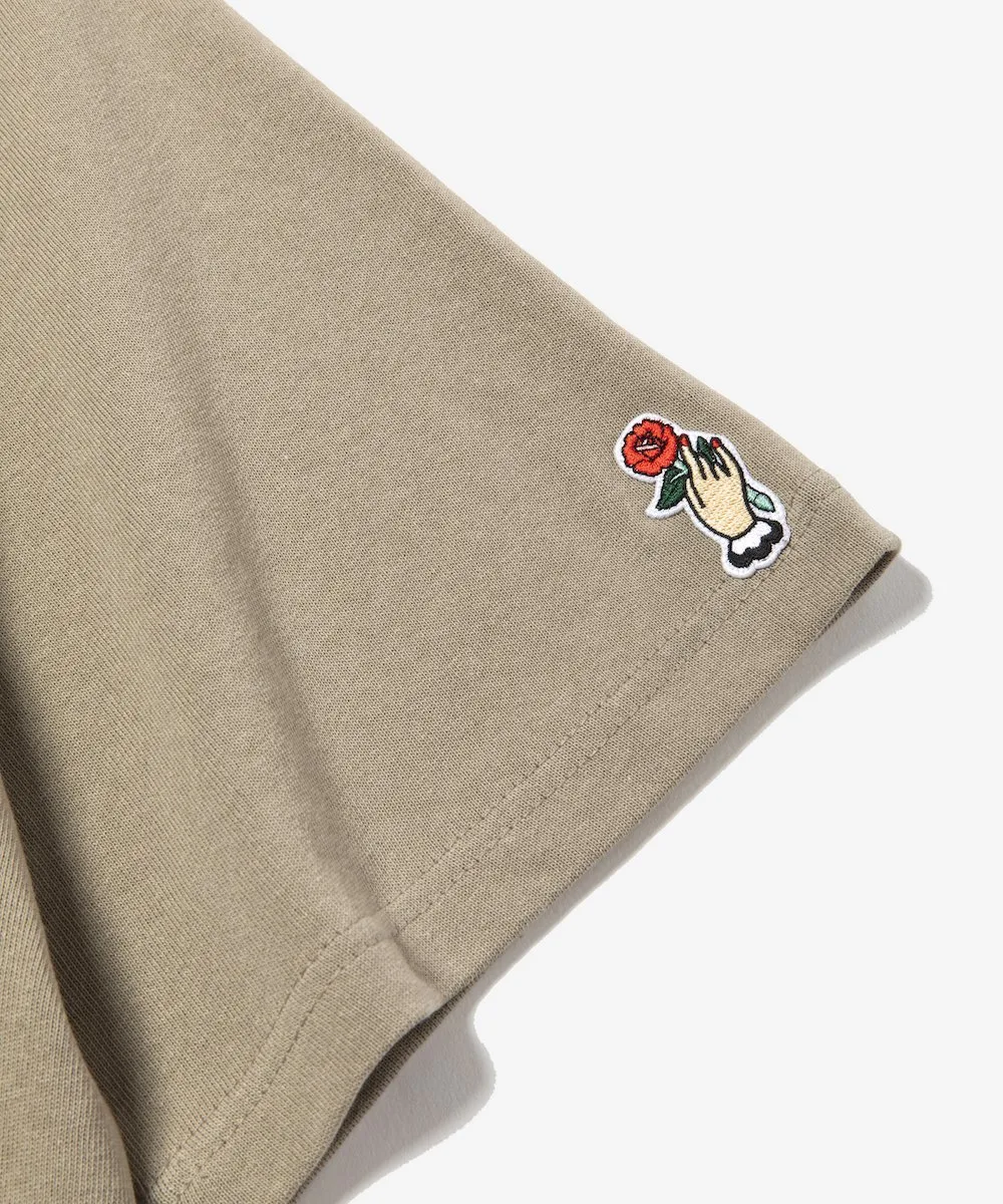 Изготовлена из плотной, прочной 100% хлопковой трикотажной ткани, напоминающей винтажные футбольные футболки. Благодаря своей сухости она комфортна в условиях влажного климата Японии.