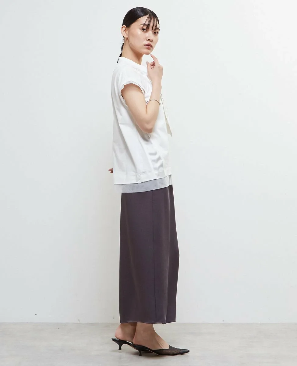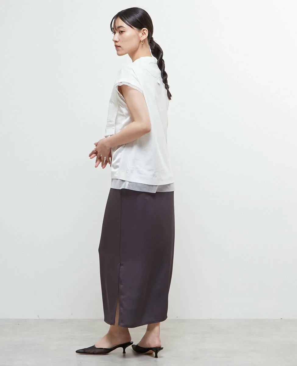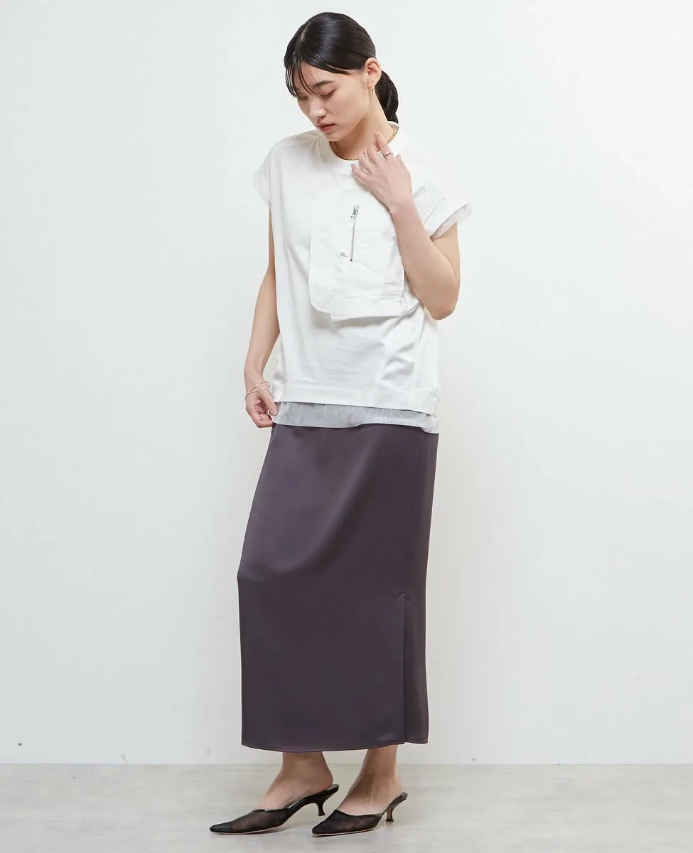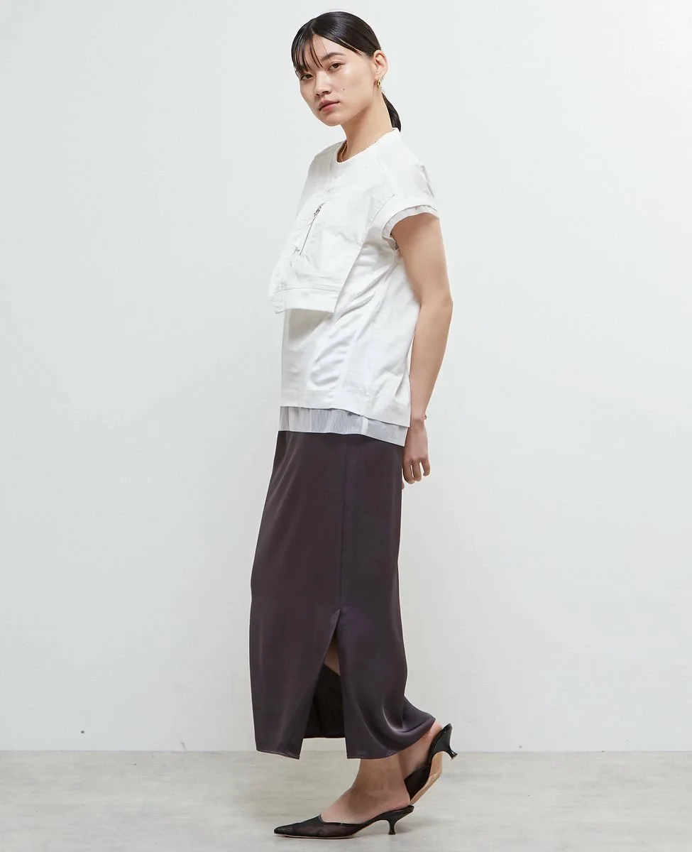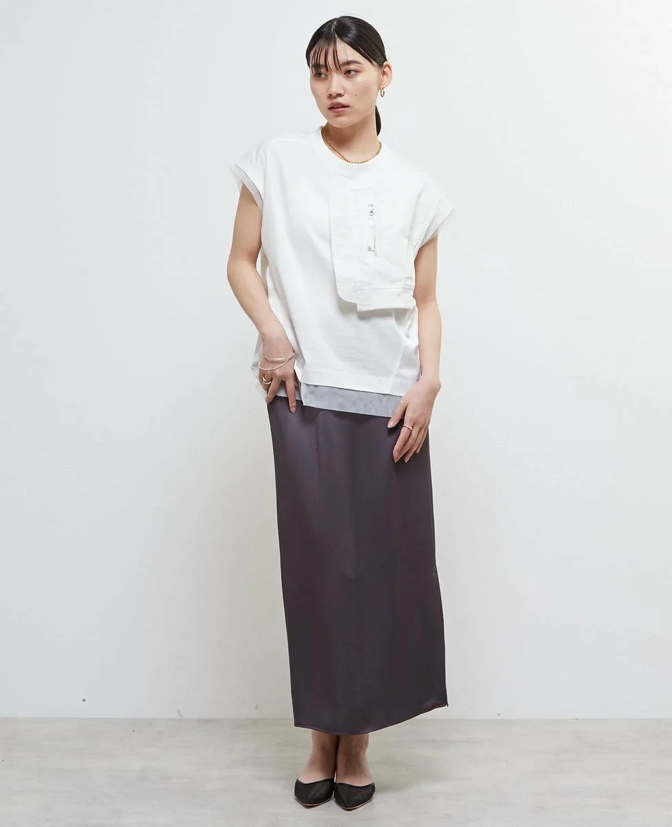 Футболка изготовлена из хлопкового трикотажа в сочетании с материалами различной текстуры, такими как тафта, атлас и тюль.