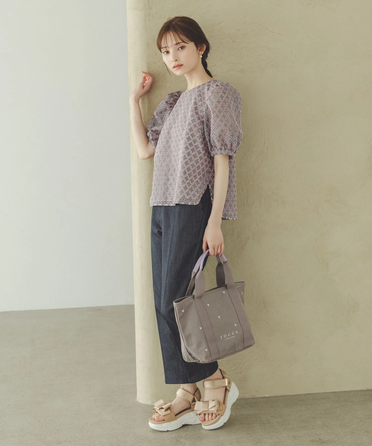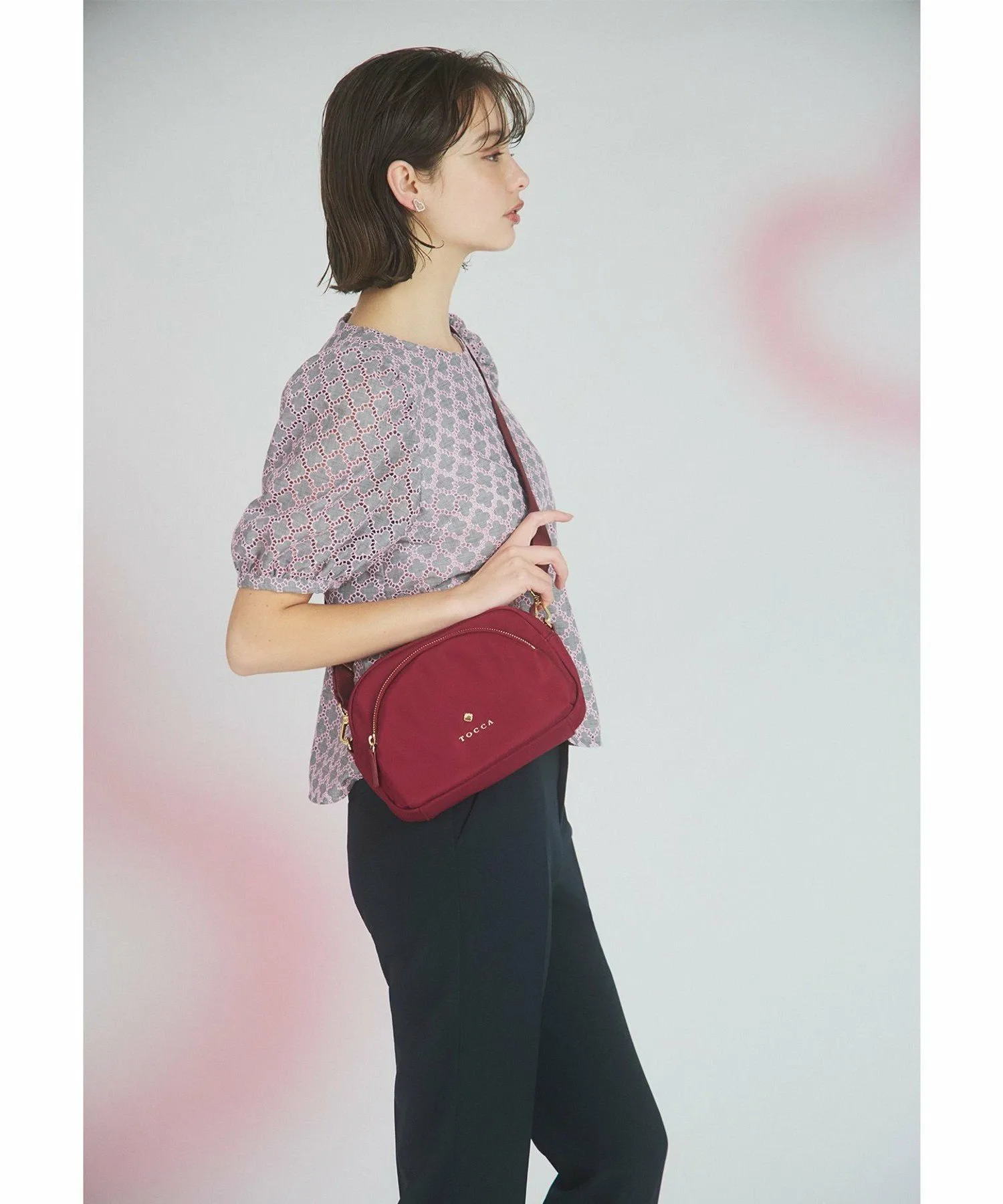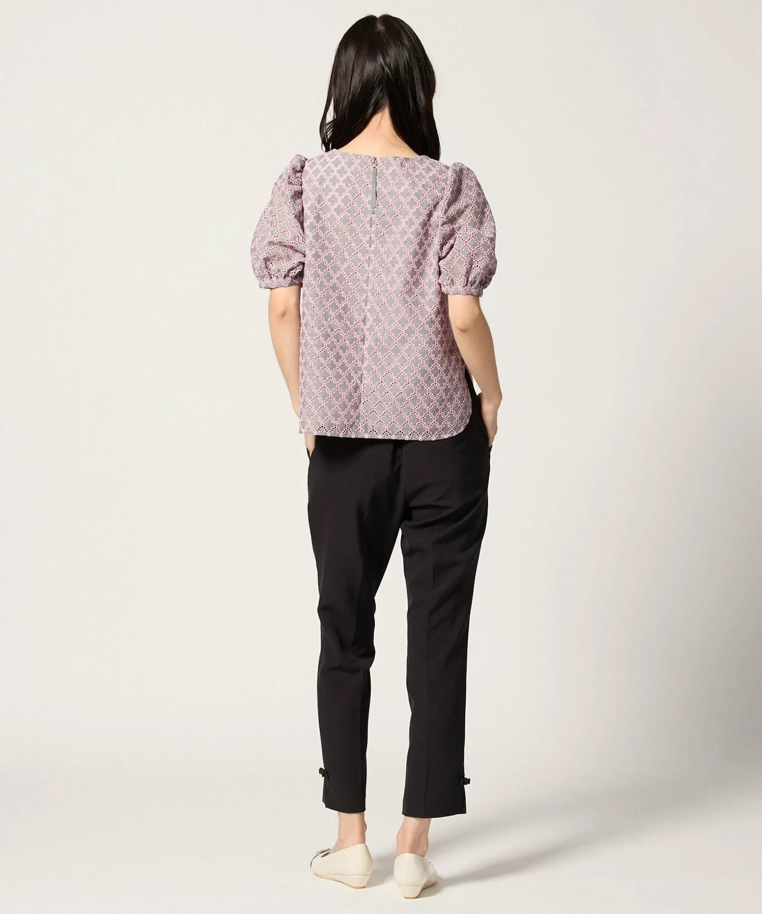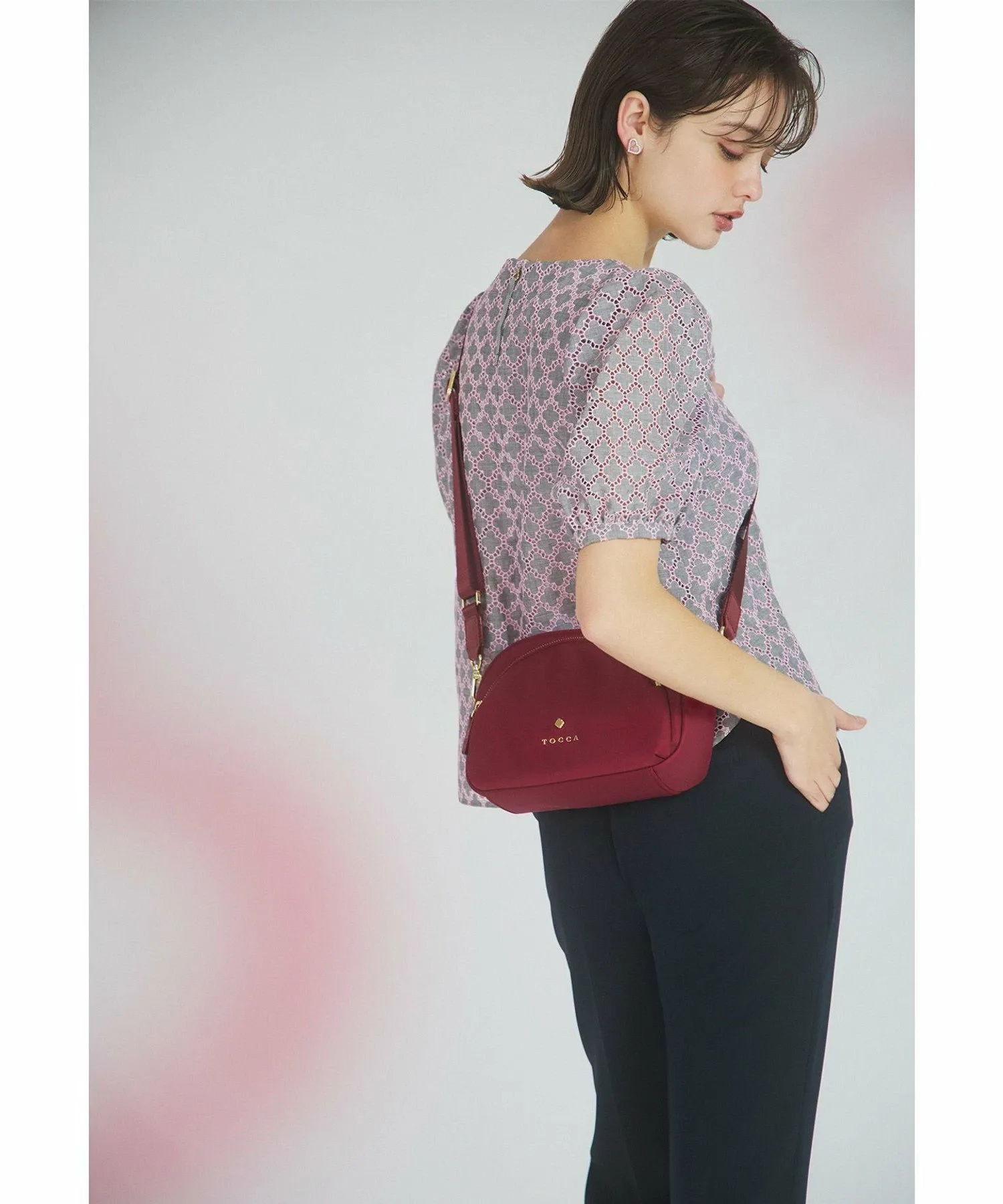 Эта блузка украшена вышивкой в виде клевера от TOCCA. Изящная вышивка на легкой ткани создает трехмерную текстуру, что придает изделию роскошный и элегантный вид. Розовая вышивка на сером фоне придает ей женственный, достойный вид, не делая ее слишком серьезной. Компактный размер гарантирует, что объемные рукава не будут визуально расширять плечи, создавая женственное впечатление. Размер позволяет легко сочетать ее с брюками или юбками. Также доступно платье из того же материала.