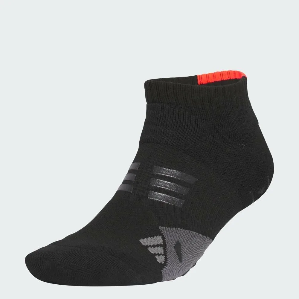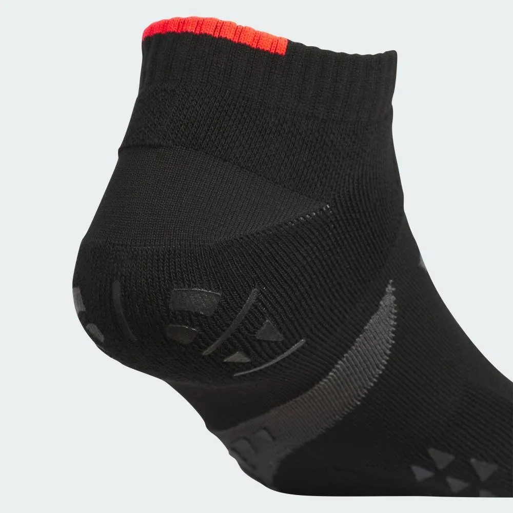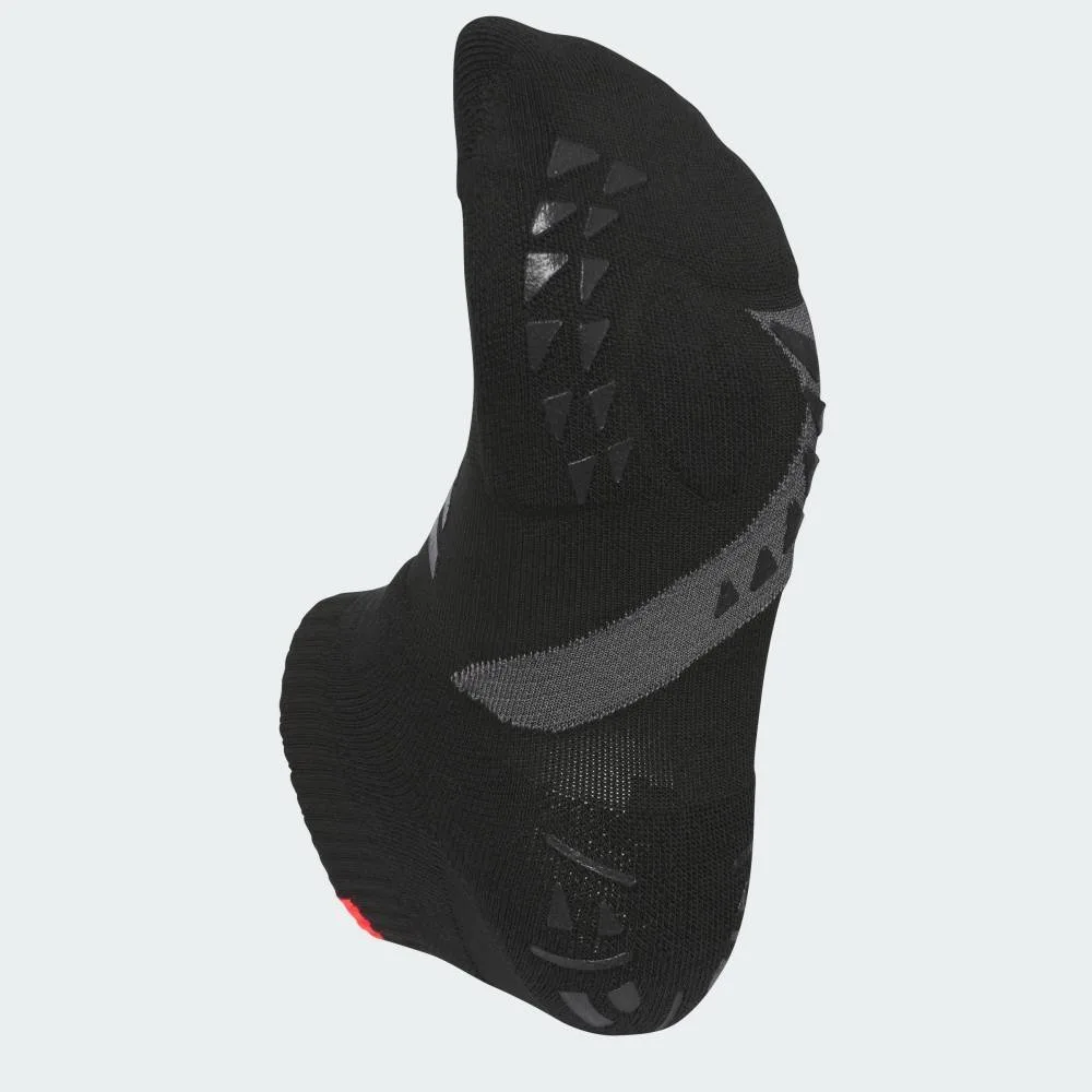 Основой носков Adipower до щиколотки является силиконовая вставка на подъеме стопы. Ее уникальная конструкция надежно фиксирует подъем стопы во время каждого движения, от замаха до ходьбы, усиливая ощущение единства с обувью. Эта вставка, не встречающаяся в обычных носках, является ключевой технологией для уменьшения движения стопы и поддержки мощного замаха. Подошва также имеет силиконовое покрытие с высоким сцеплением. От замаха до завершения удара она предотвращает скольжение внутри обуви, обеспечивая непрерывный поток энергии и стабилизируя контакт с землей. Две вставки на подъеме и подошве фиксируют стопу сверху и снизу, поддерживая взрывные замахи. Боковые части имеют вязаную структуру, которая поддерживает зоны концентрации нагрузки для дополнительной прочности. Мягкий ворс вокруг щиколотки снижает нагрузку при затягивании BOA или Power Band. Поддержка свода стопы повышает точность, а мягкая амортизация от носка до пятки обеспечивает комфорт при каждом шаге. Кроме того, сетчатая конструкция на подъеме стопы позволяет влаге выходить изнутри обуви, а плоский носок обеспечивает гладкую и удобную посадку.