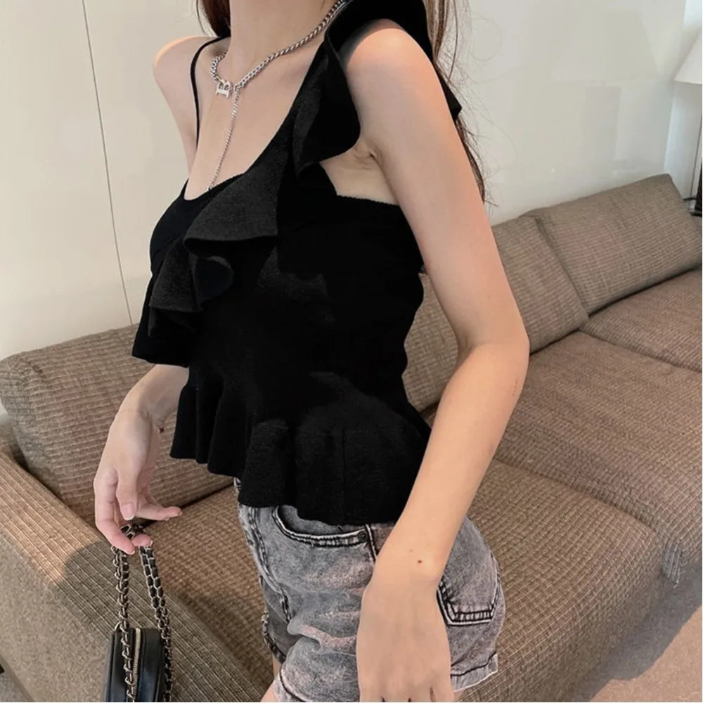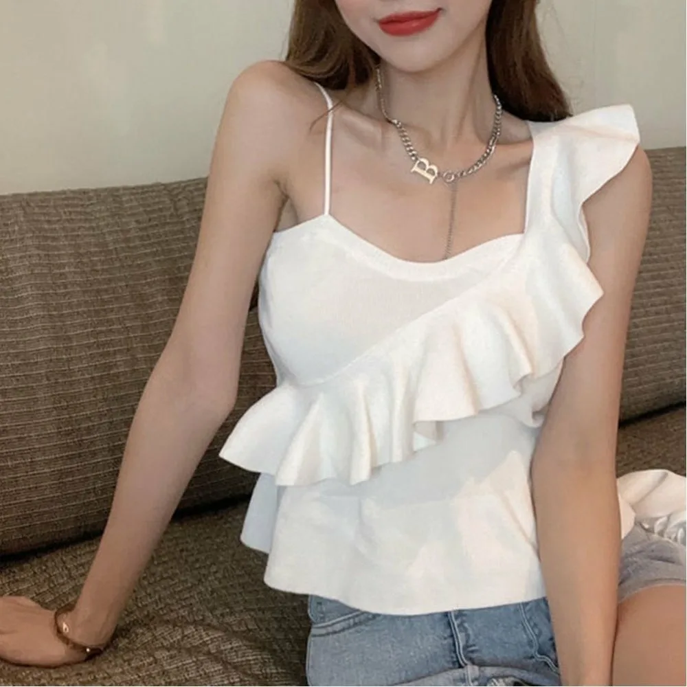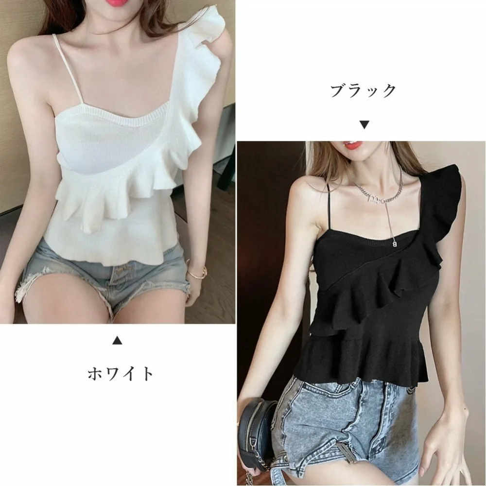 Женский трикотажный топ без рукавов с открытыми плечами, асимметричный летний трикотаж