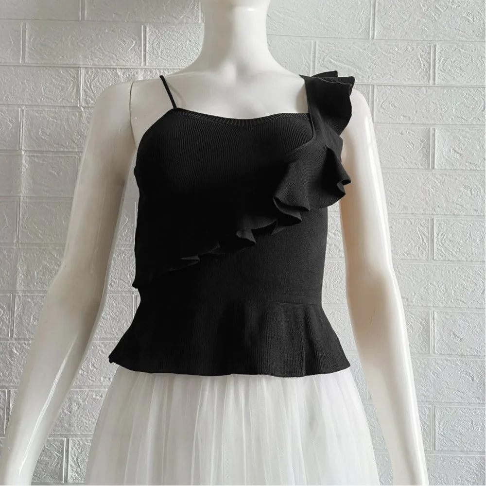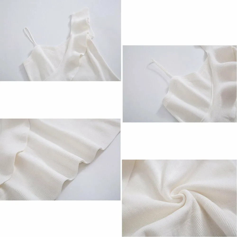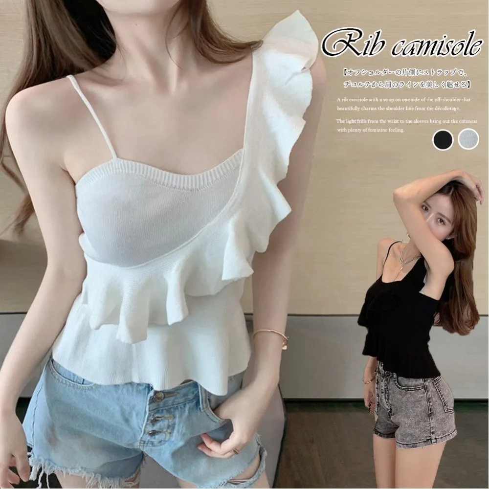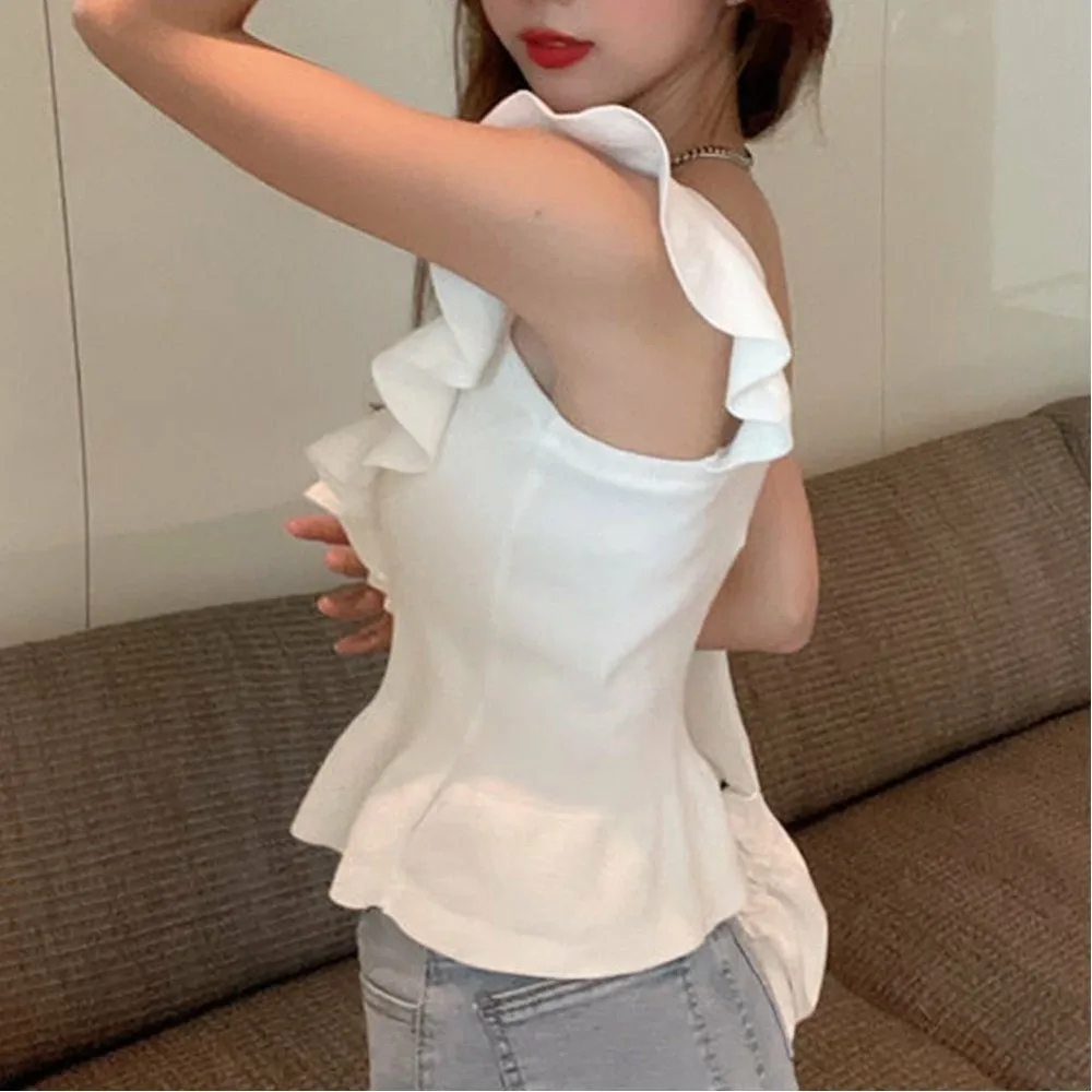 Женский трикотажный топ без рукавов с открытыми плечами, асимметричный летний трикотаж