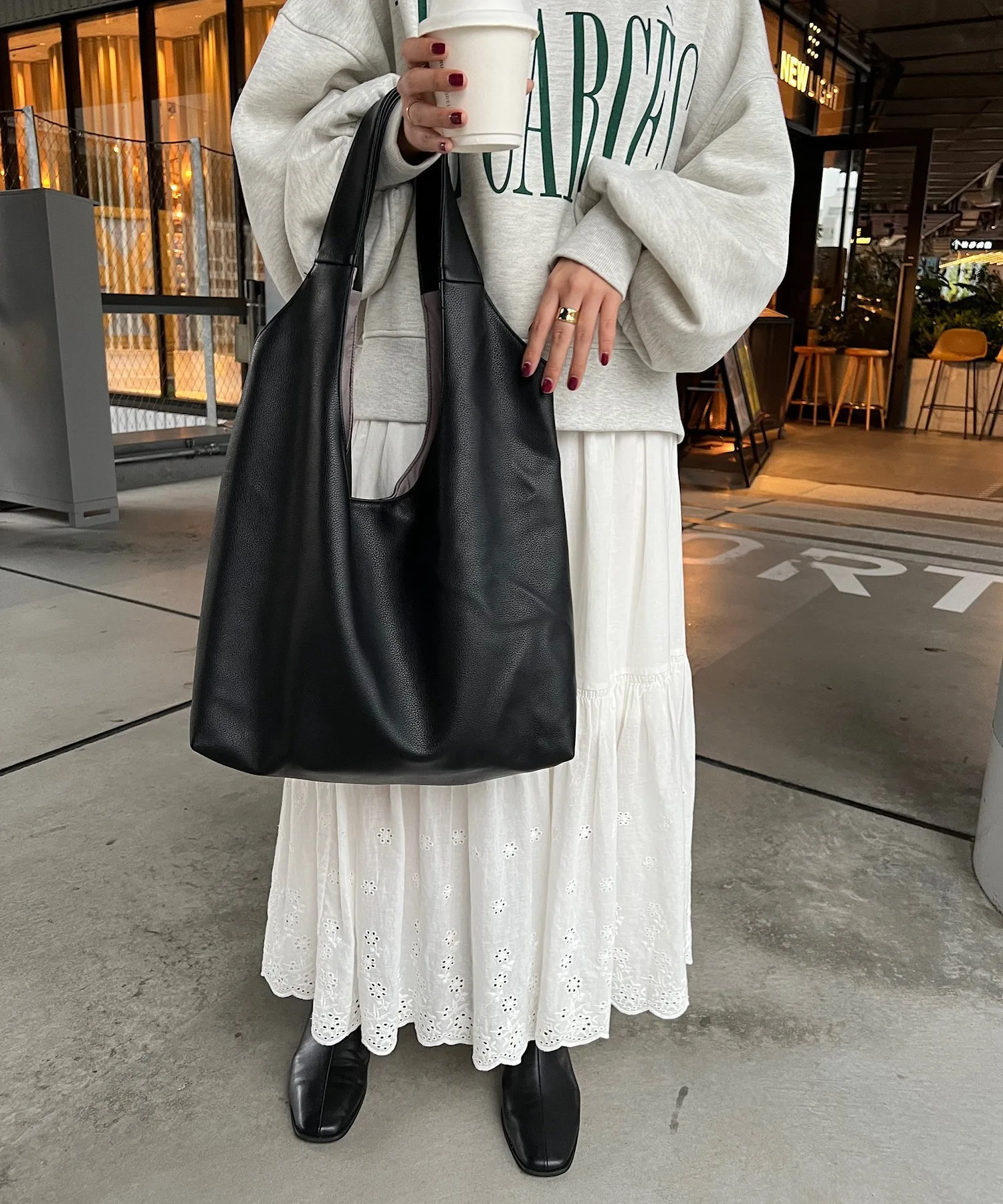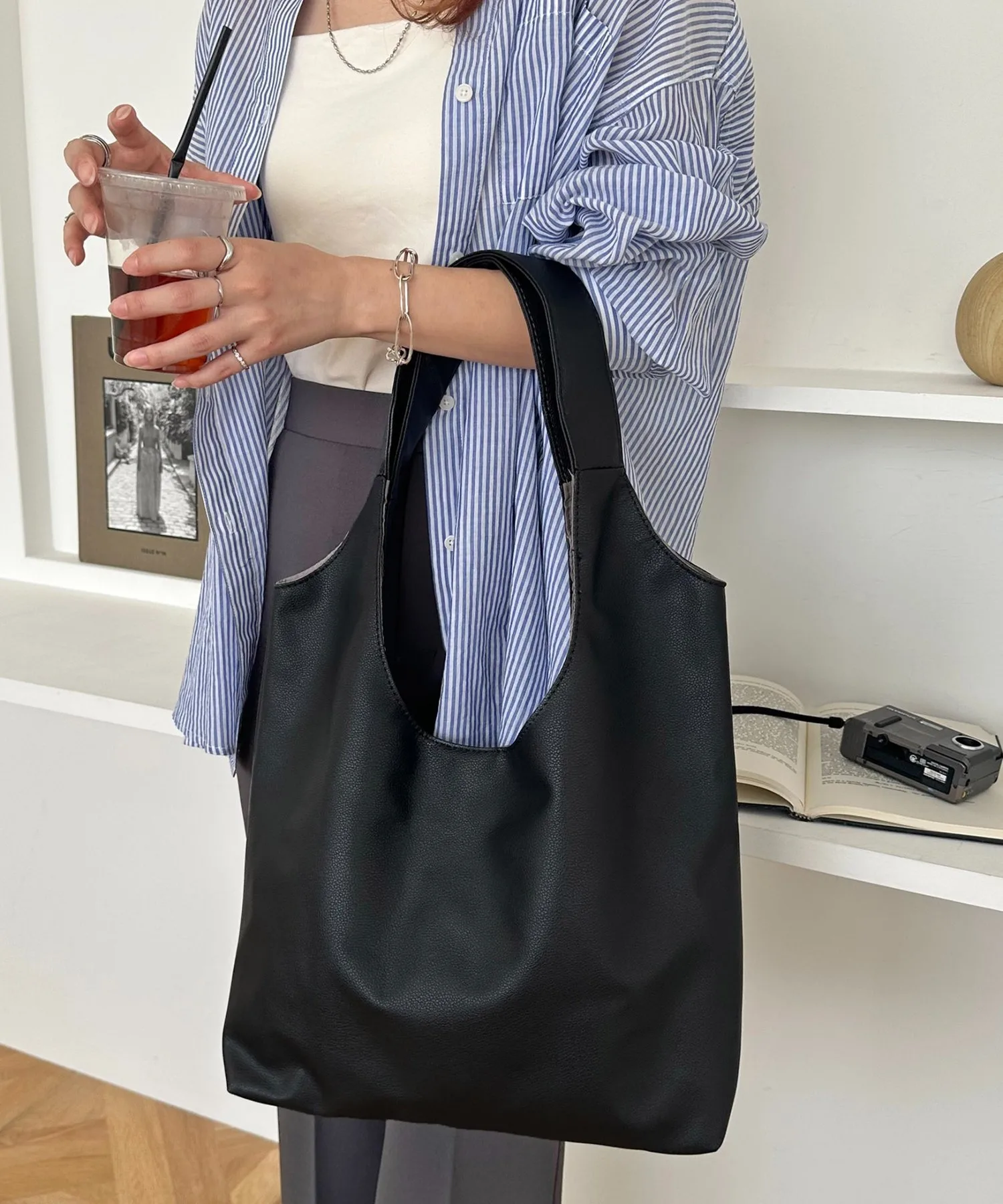 Сумка-тоут изготовлена из мягкого, приятного на ощупь материала. Её привлекательность заключается в большом, вместительном объёме и простом, вневременном дизайне. Закруглённое отверстие позволяет легко просунуть руки, добавляя мягкий, женственный штрих♪ Благодаря внутренним карманам с обеих сторон, это очень функциональный предмет. Доступен в широком ассортименте цветов, от базовых моделей до акцентных цветов для вашего наряда.