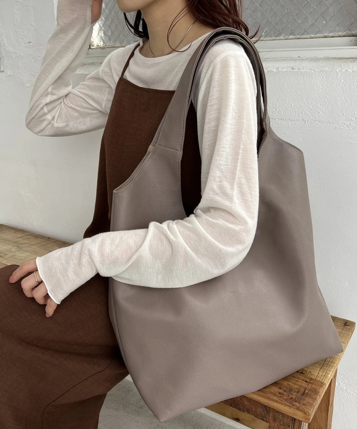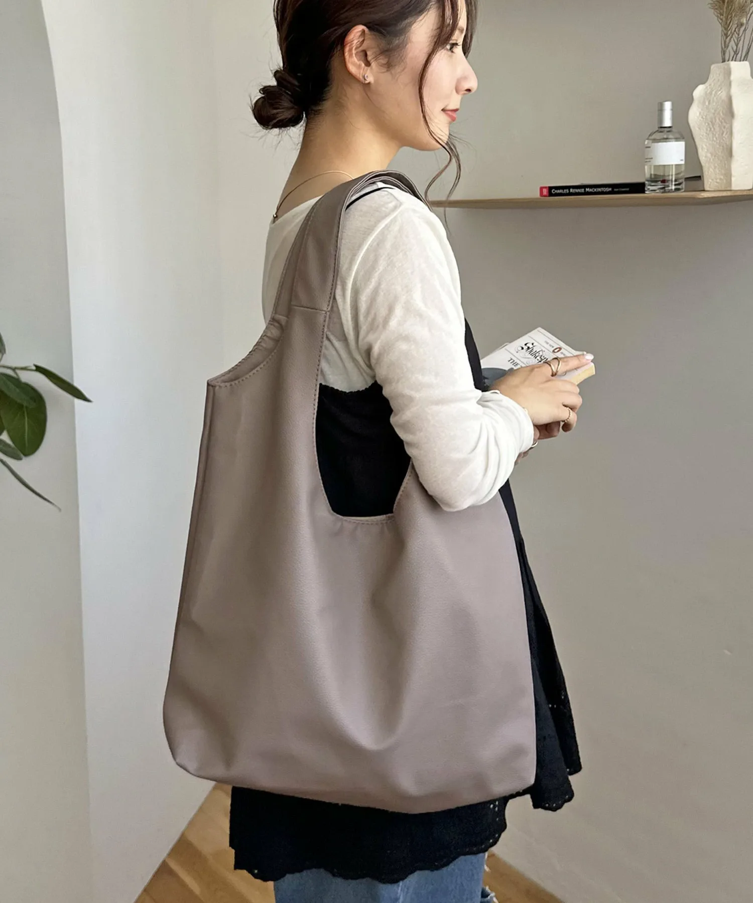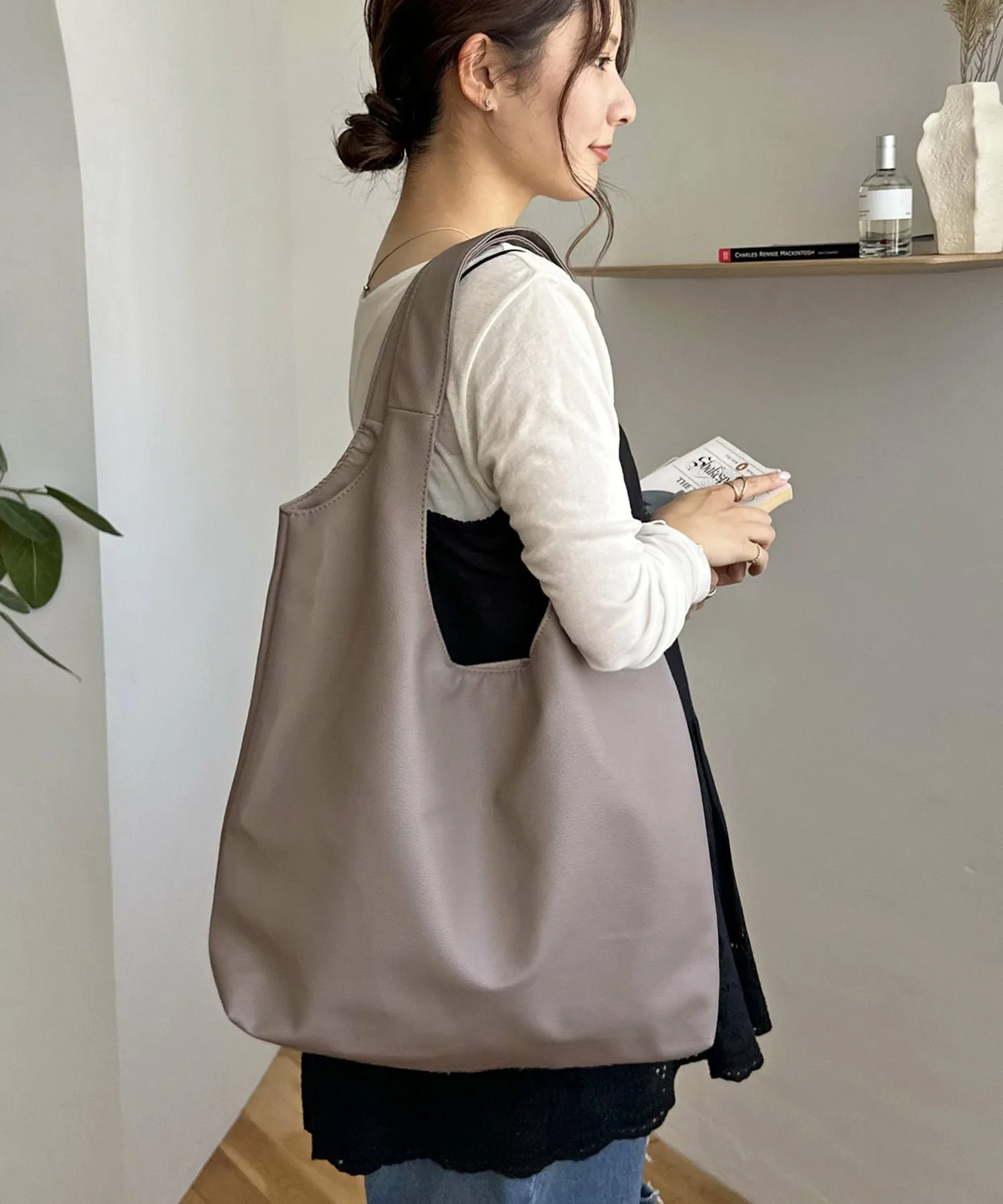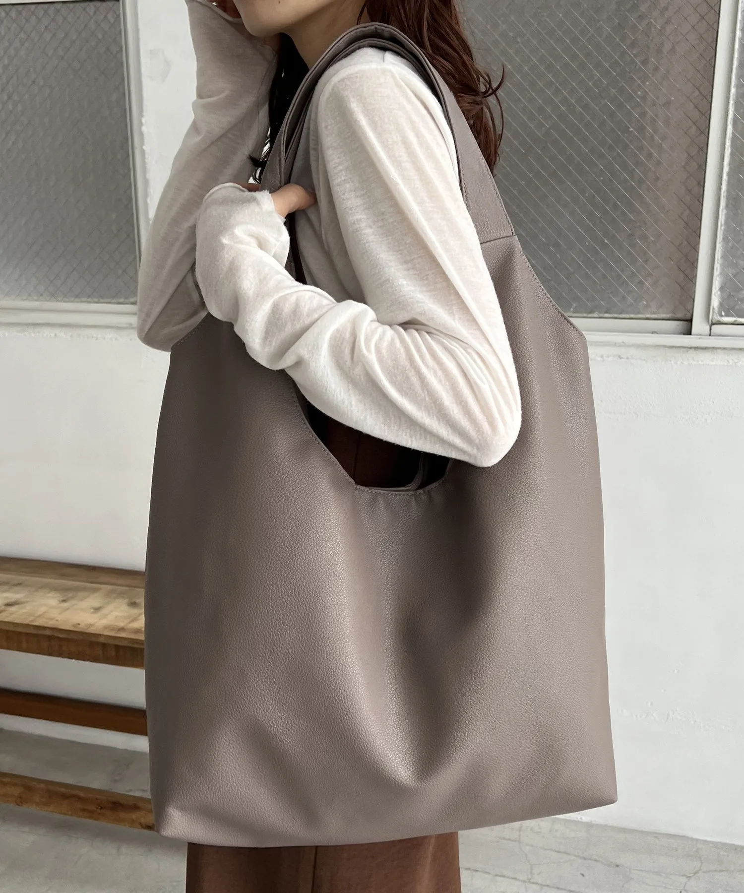 Сумка-тоут изготовлена из мягкого, приятного на ощупь материала. Её привлекательность заключается в большом, вместительном объёме и простом, вневременном дизайне. Закруглённое отверстие позволяет легко просунуть руки, добавляя мягкий, женственный штрих♪ Благодаря внутренним карманам с обеих сторон, это очень функциональный предмет. Доступен в широком ассортименте цветов, от базовых моделей до акцентных цветов для вашего наряда.