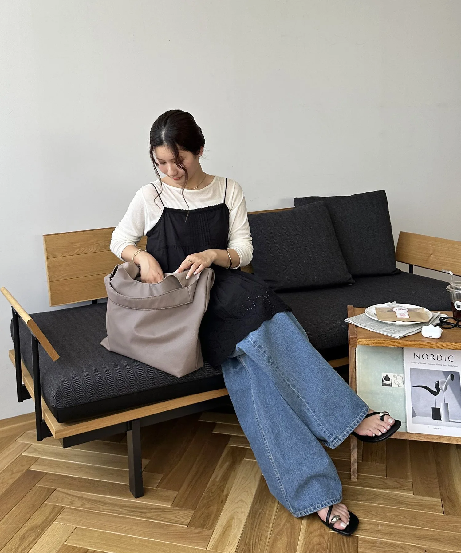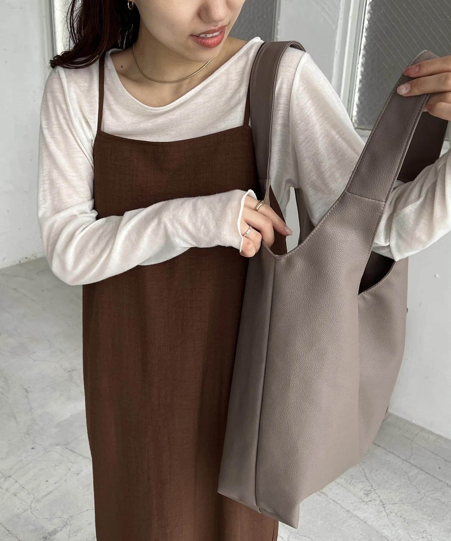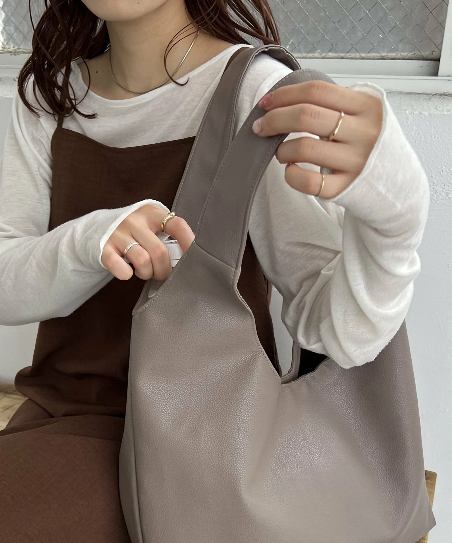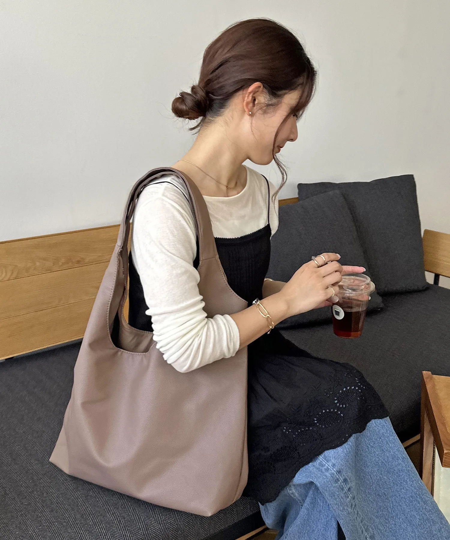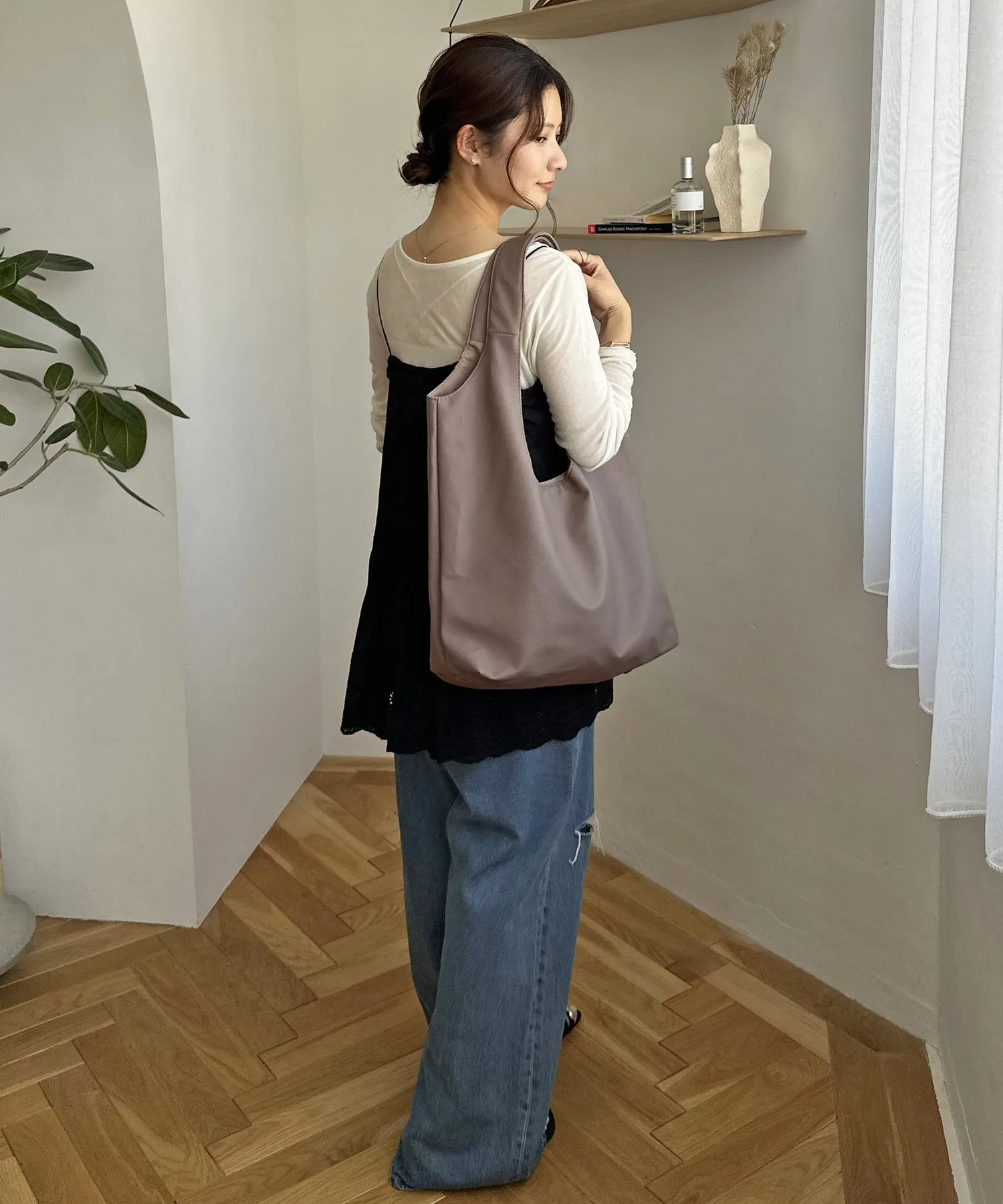 Сумка-тоут изготовлена из мягкого, приятного на ощупь материала. Её привлекательность заключается в большом, вместительном объёме и простом, вневременном дизайне. Закруглённое отверстие позволяет легко просунуть руки, добавляя мягкий, женственный штрих♪ Благодаря внутренним карманам с обеих сторон, это очень функциональный предмет. Доступен в широком ассортименте цветов, от базовых моделей до акцентных цветов для вашего наряда.