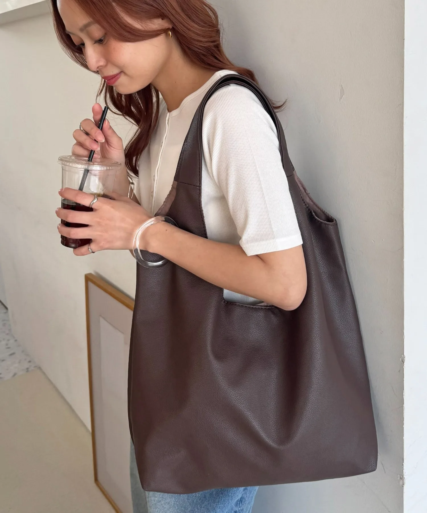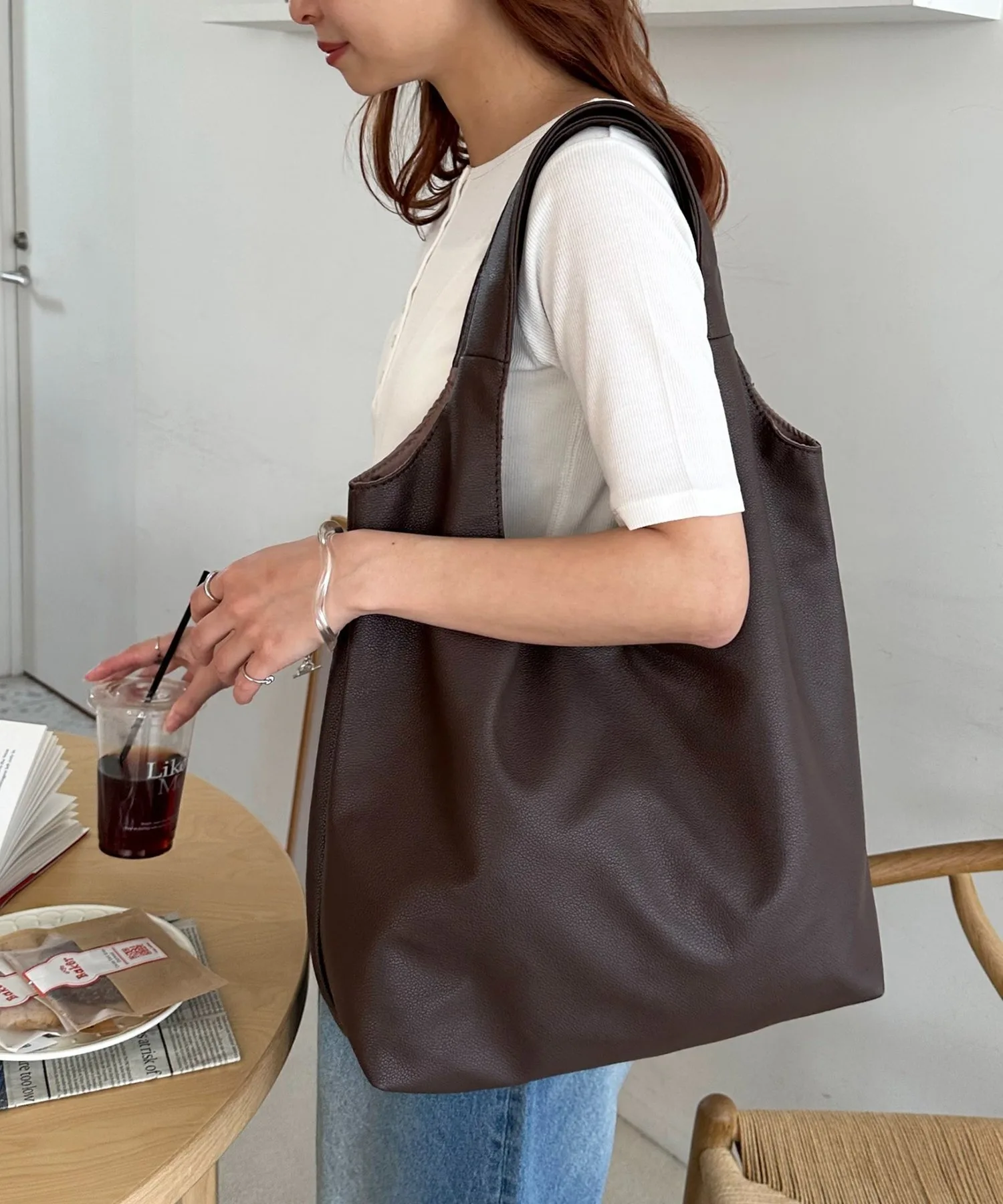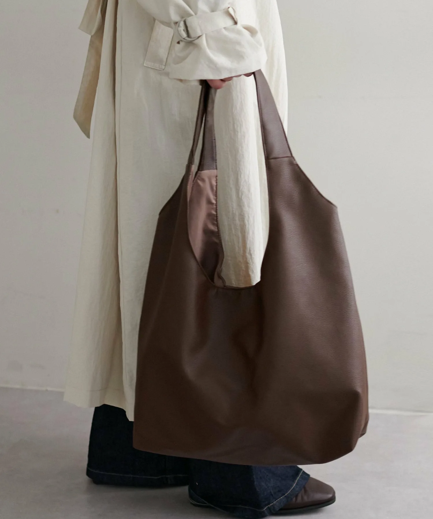 Сумка-тоут изготовлена из мягкого, приятного на ощупь материала. Её привлекательность заключается в большом, вместительном объёме и простом, вневременном дизайне. Закруглённое отверстие позволяет легко просунуть руки, добавляя мягкий, женственный штрих♪ Благодаря внутренним карманам с обеих сторон, это очень функциональный предмет. Доступен в широком ассортименте цветов, от базовых моделей до акцентных цветов для вашего наряда.