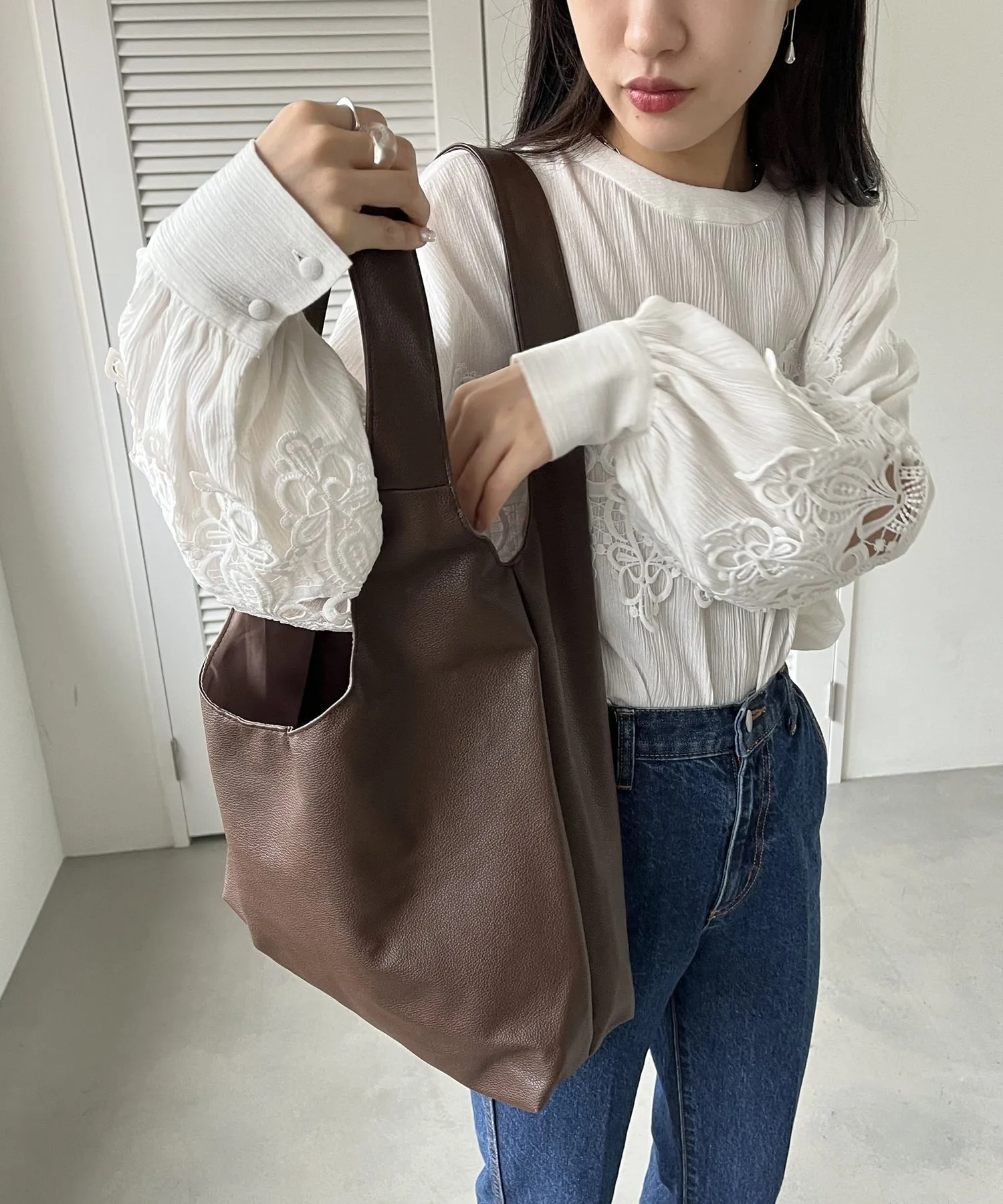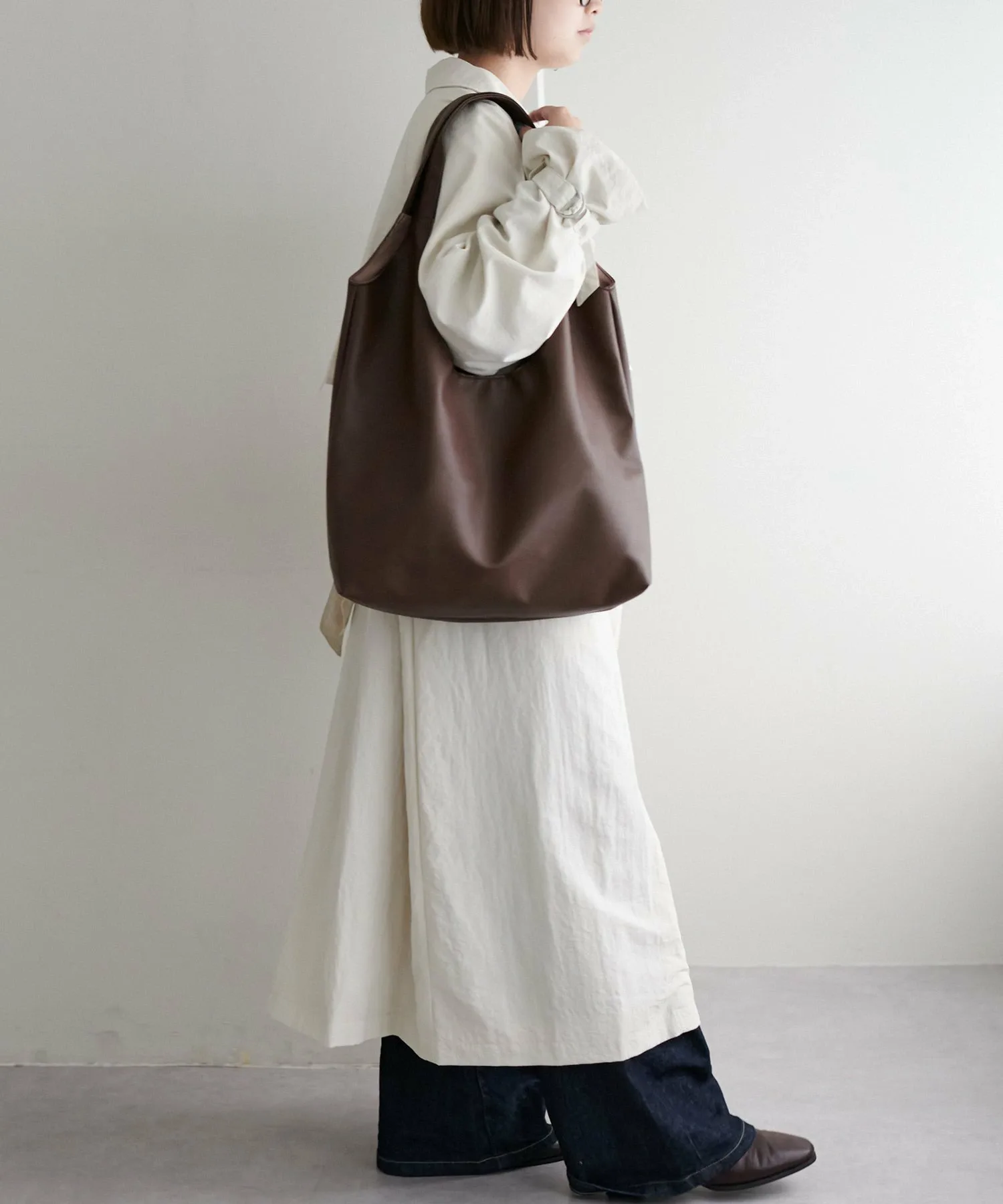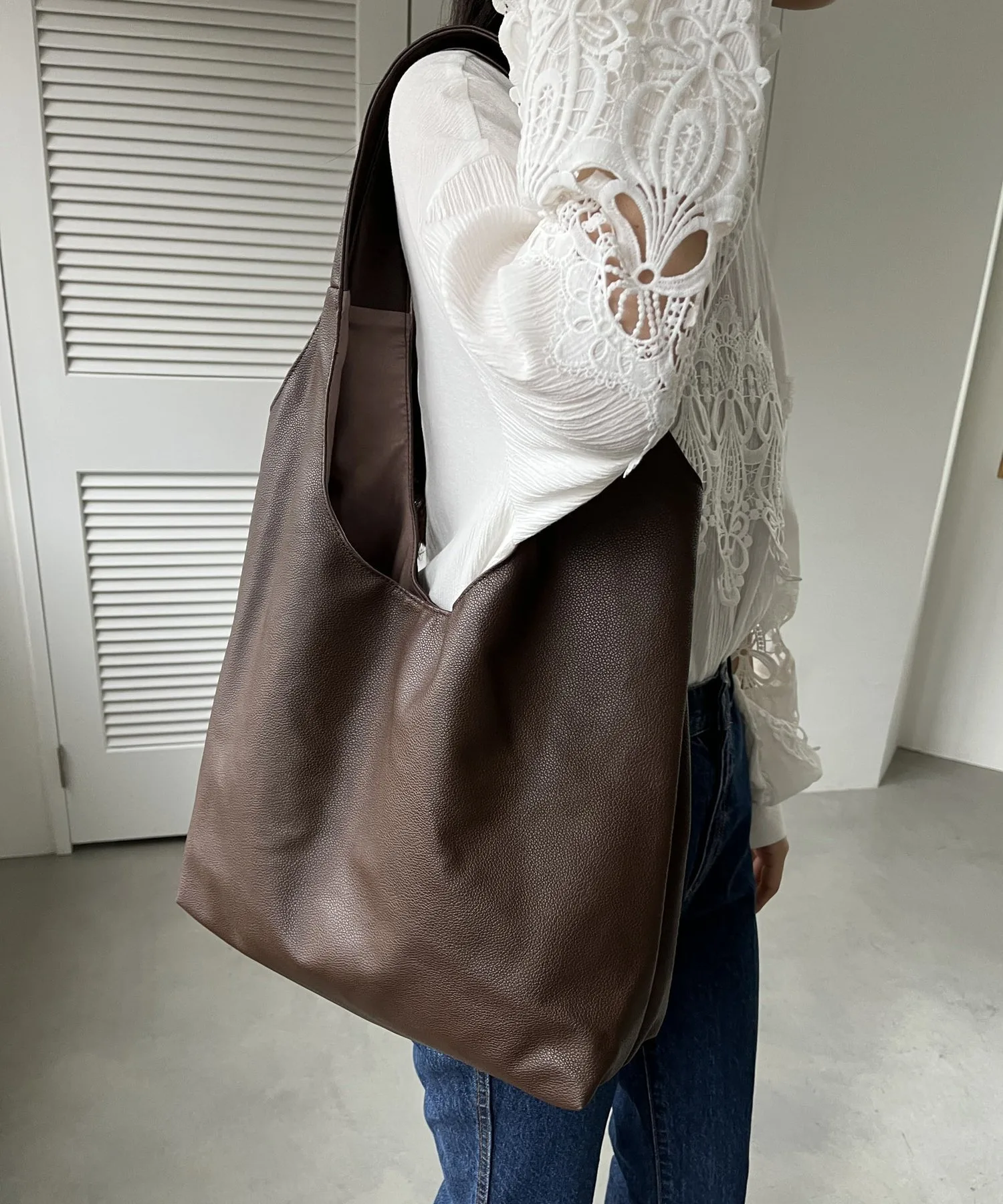 Сумка-тоут изготовлена из мягкого, приятного на ощупь материала. Её привлекательность заключается в большом, вместительном объёме и простом, вневременном дизайне. Закруглённое отверстие позволяет легко просунуть руки, добавляя мягкий, женственный штрих♪ Благодаря внутренним карманам с обеих сторон, это очень функциональный предмет. Доступен в широком ассортименте цветов, от базовых моделей до акцентных цветов для вашего наряда.