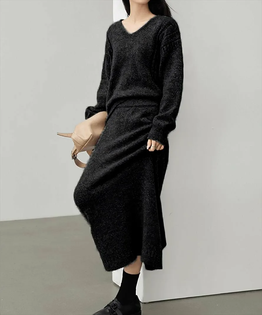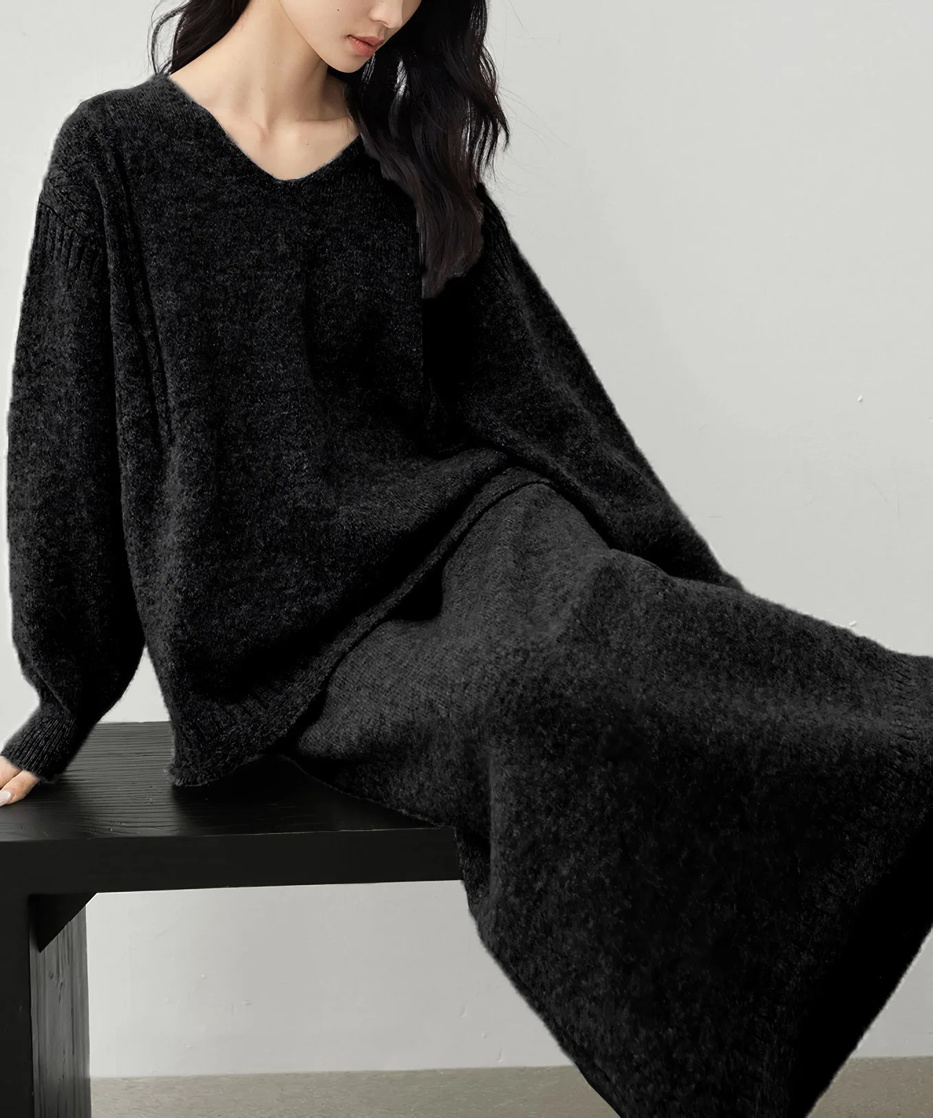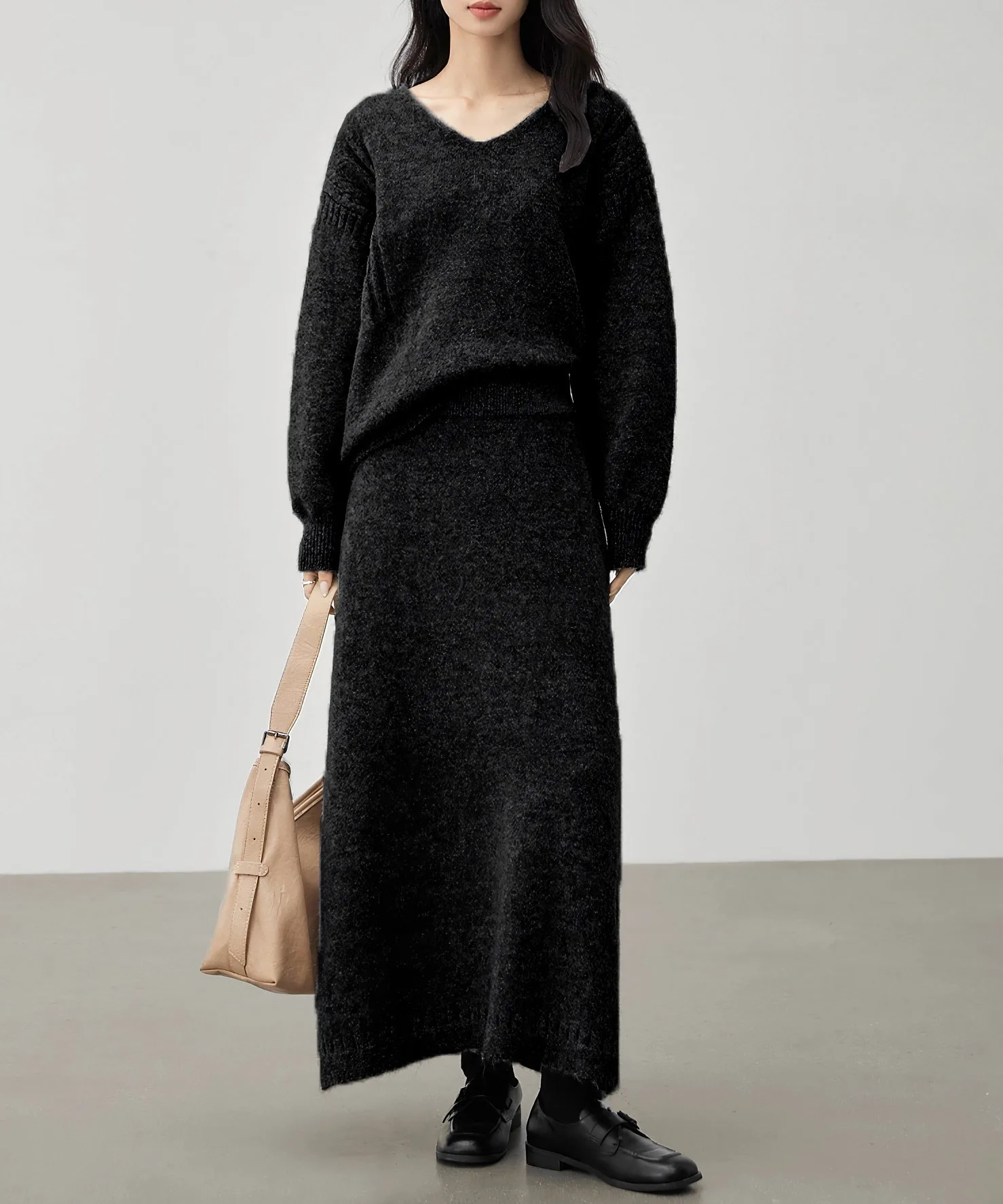 Свободный силуэт и V-образный вырез в сочетании со стильным узором «косичка» создают утонченный и элегантный образ.