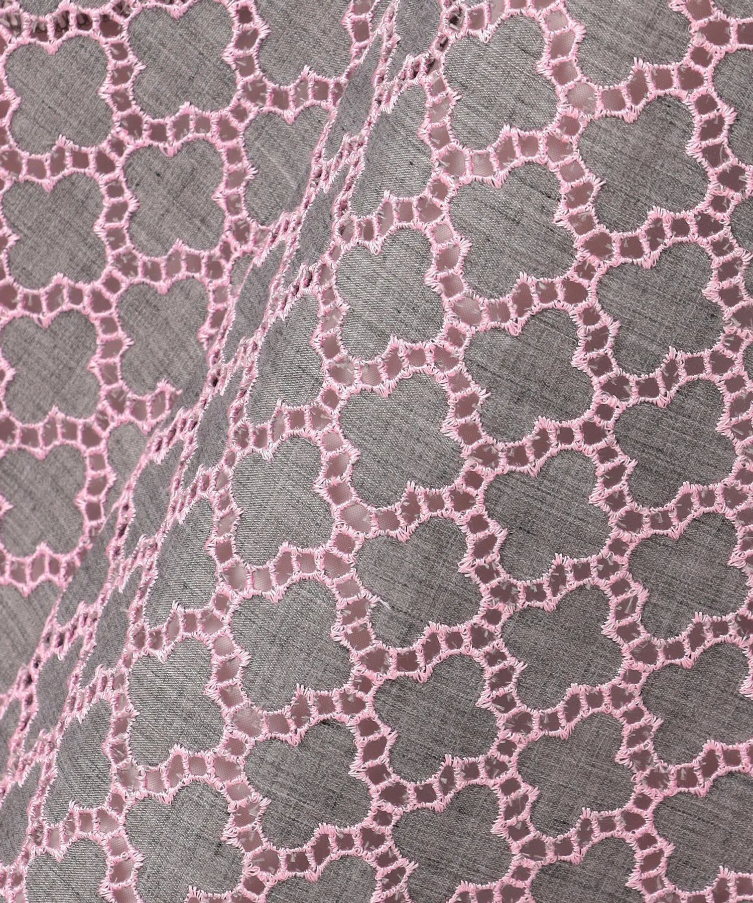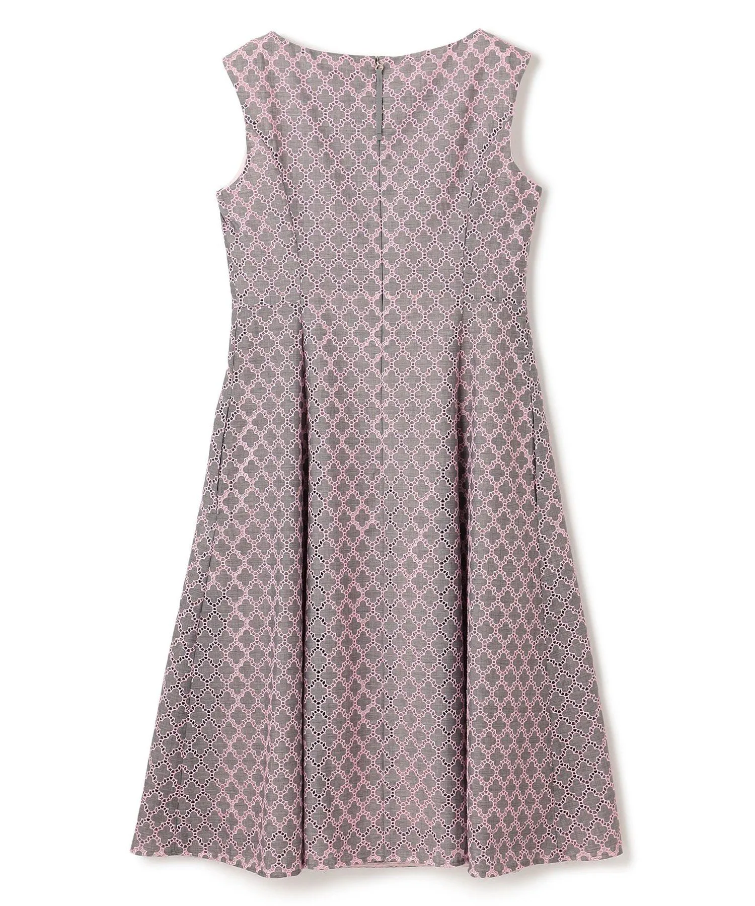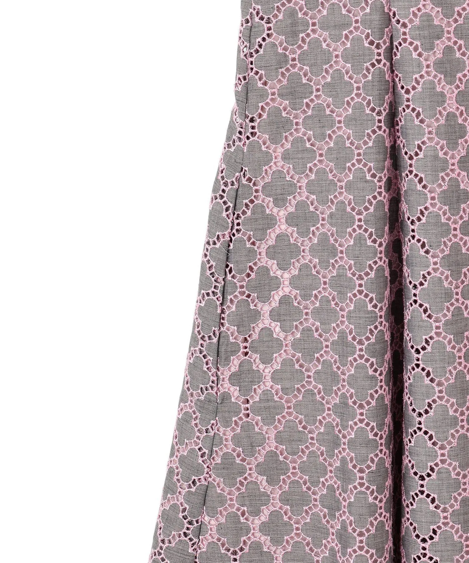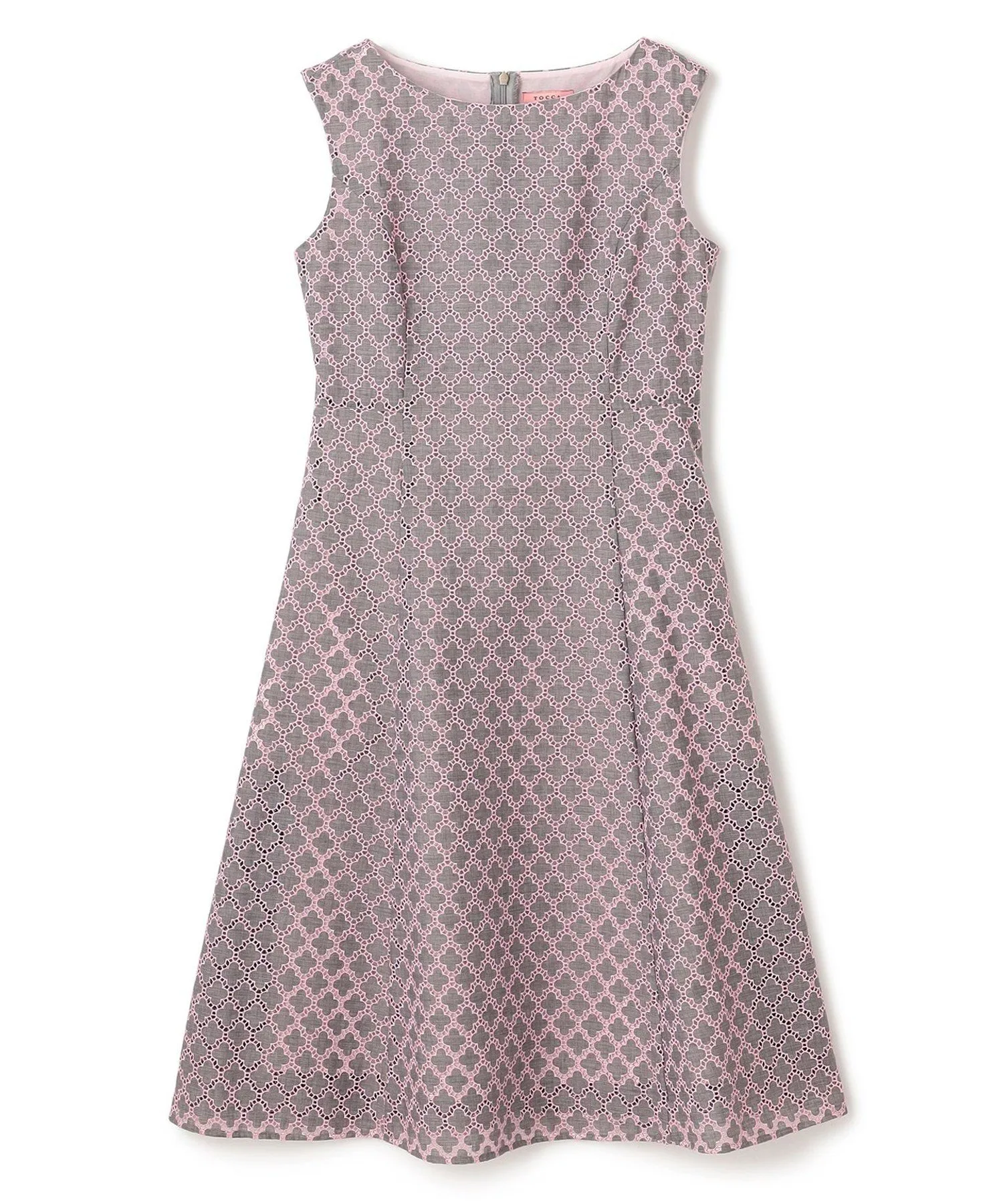Это простое и элегантное платье украшено вышивкой в виде клевера TOCCA. Изящная вышивка на легкой ткани создает трехмерную текстуру, в результате чего получается роскошный и элегантный дизайн. Розовая вышивка на сером фоне не выглядит слишком серьезной и выражает женское достоинство. Также доступна блузка из того же материала.