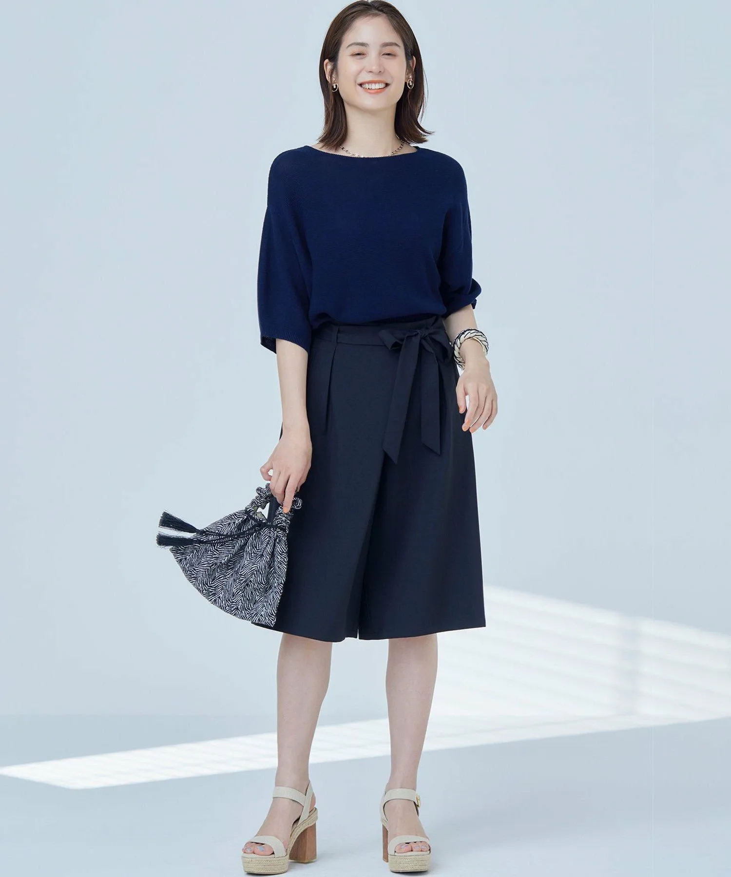 Материал: Натуральное хлопковое волокно придает ему гладкость, свежесть и хорошо пропускает воздух, делая его комфортным и приятным в носке даже в жаркое лето. Его плотность создает расслабленную, но мягкую текстуру, формируя изящную форму. Роскошный материал создает ощущение глубины, подчеркивая четкую текстуру трикотажа.