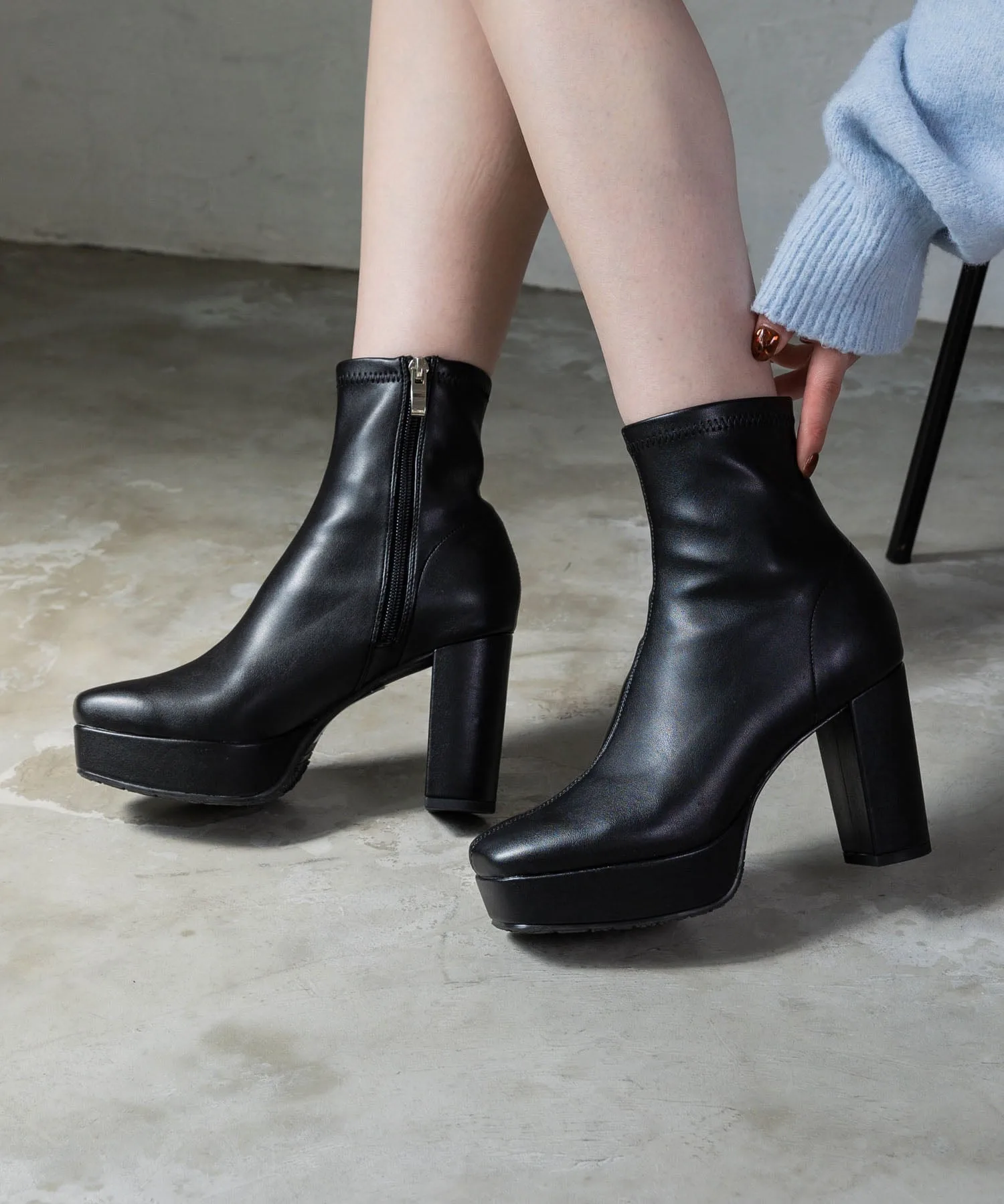 Комментарий: Высота каблука 9,5 см, но передняя часть примерно 3 см толщиной, поэтому кажется, что высота около 7,5 см. Размер S подошел мне идеально, но длина эластичная, поэтому думаю, что они будут удобны для тех, кто беспокоится о своих лодыжках.