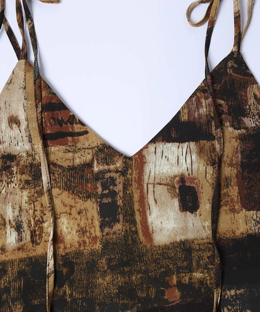 Привлекательное платье-комбинация с изысканным принтом.