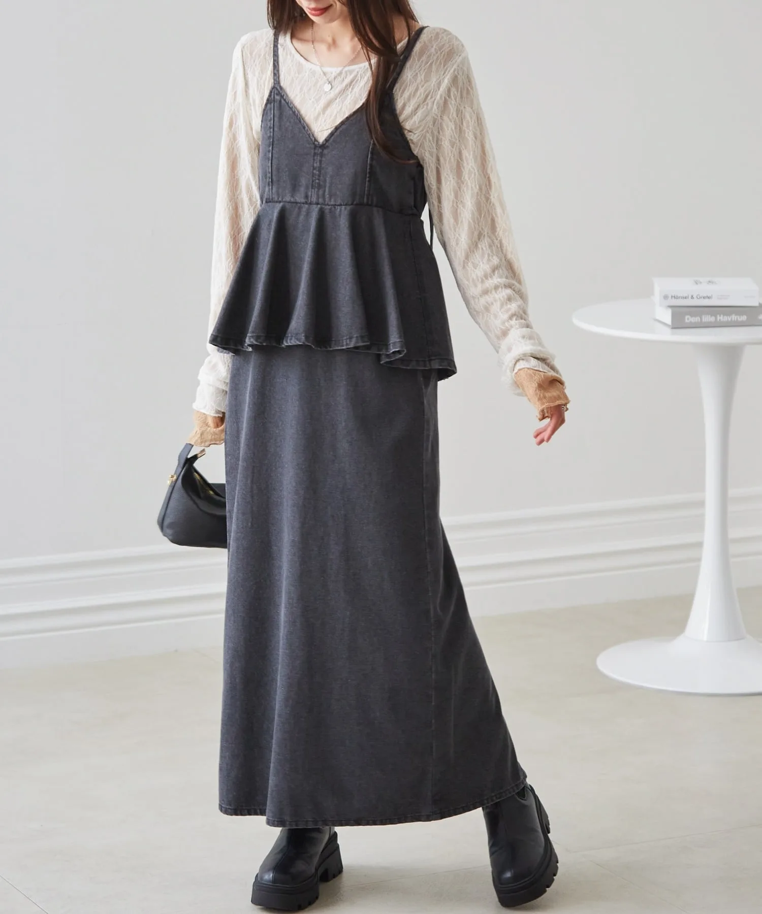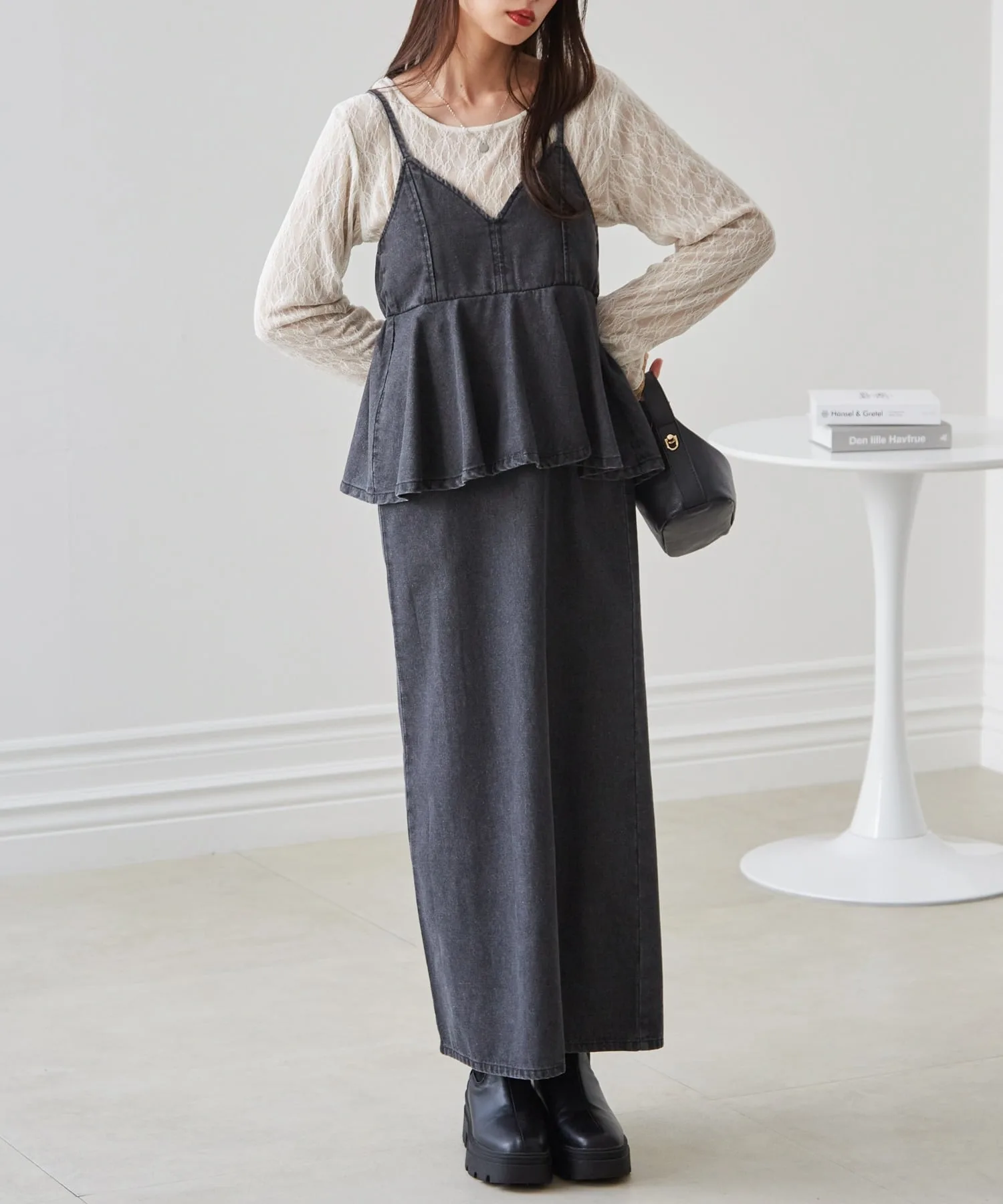 ・Джинсовое платье с баской, которое сейчас в тренде.