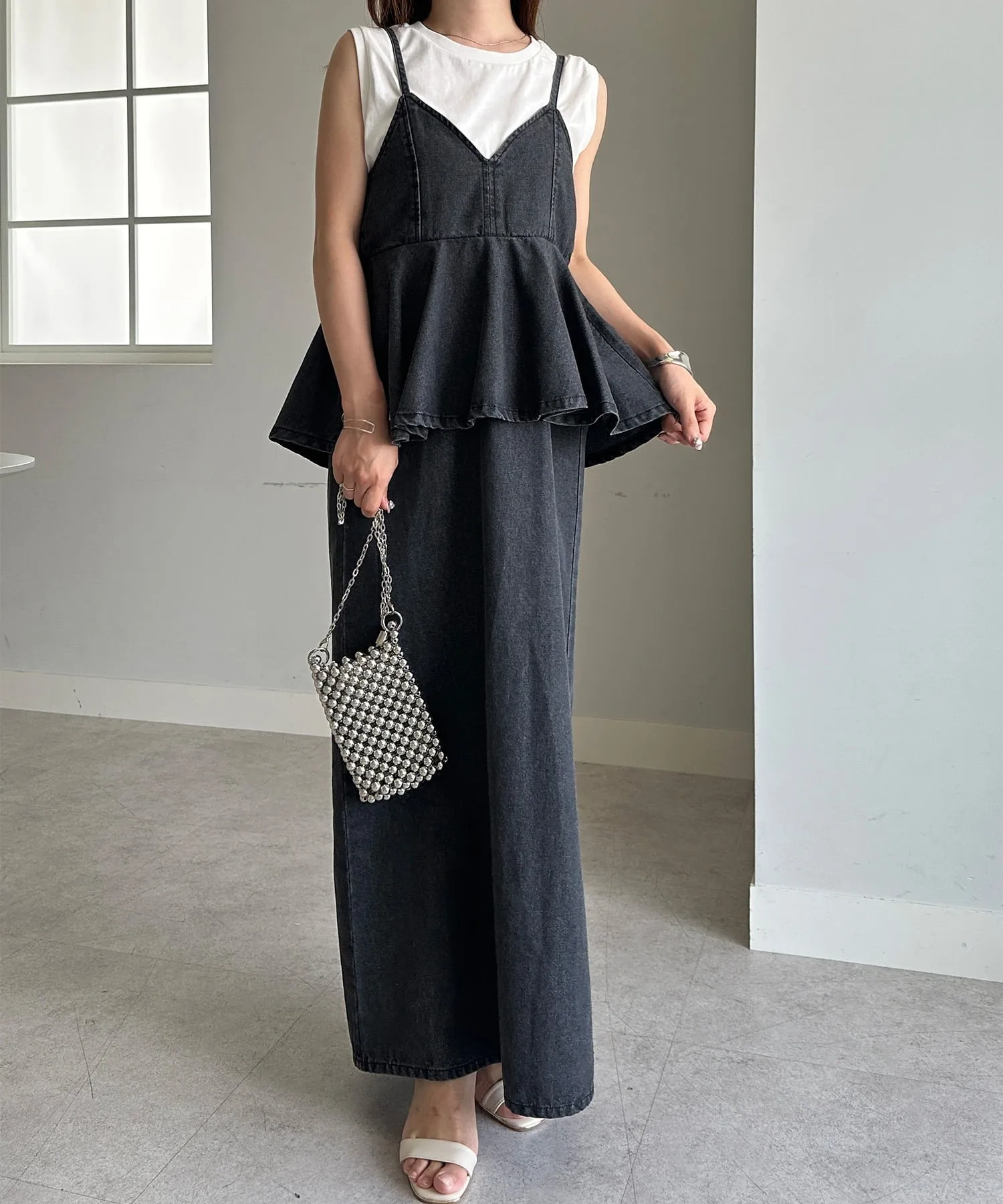 Джинсовое платье-комбинация с приталенным силуэтом, которое сейчас в тренде.