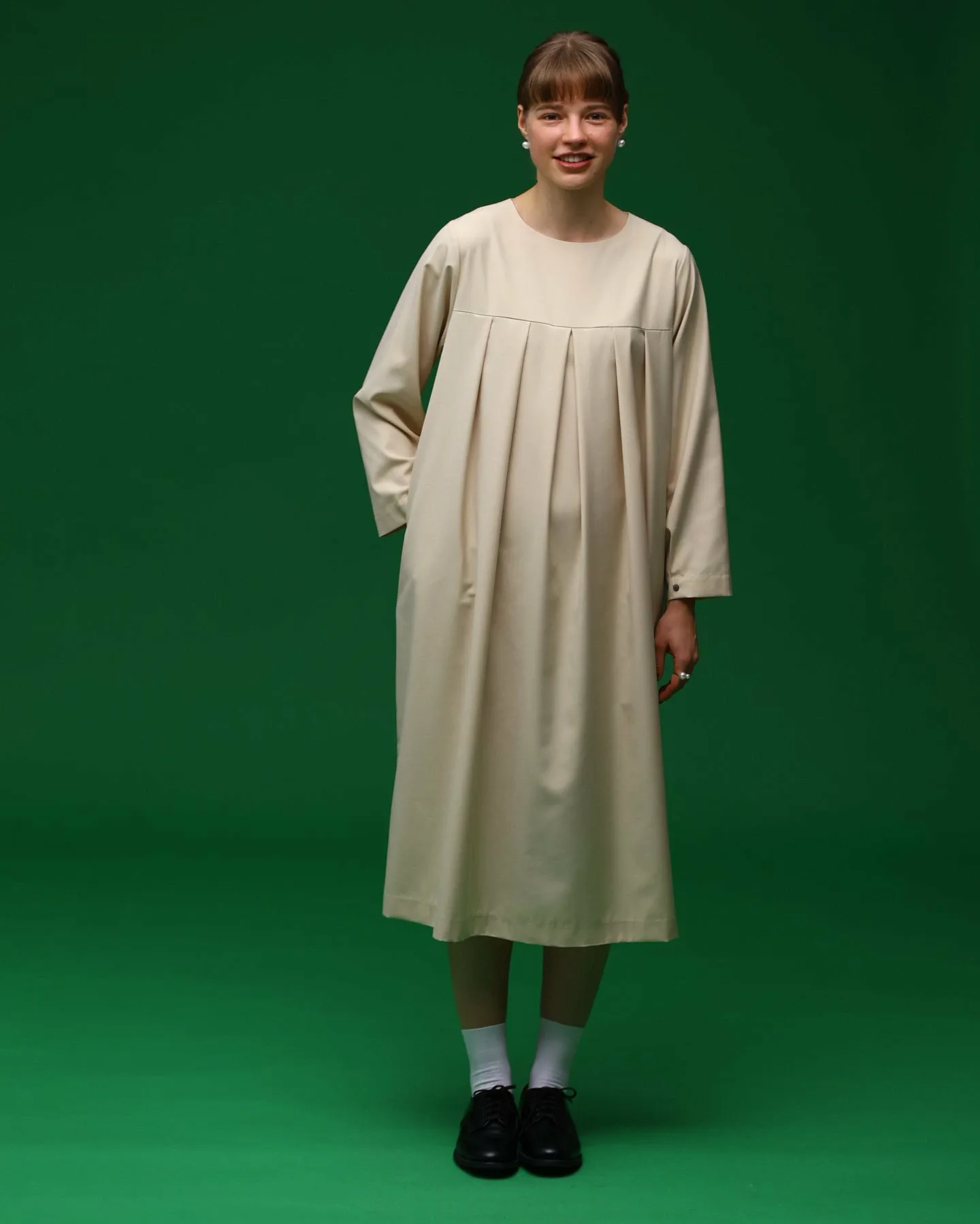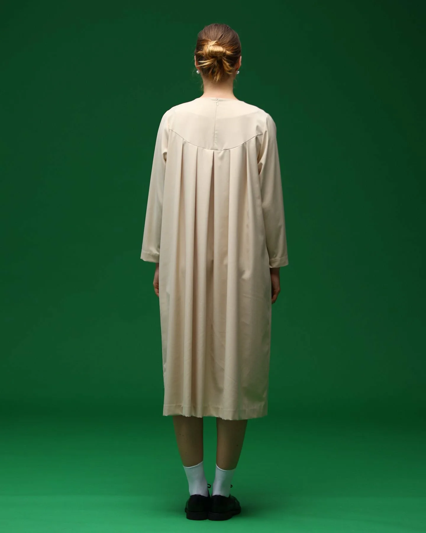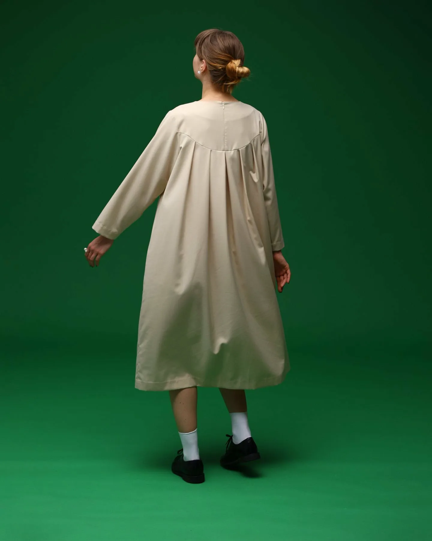 Изюминкой являются складки спереди и пуговицы на манжетах.