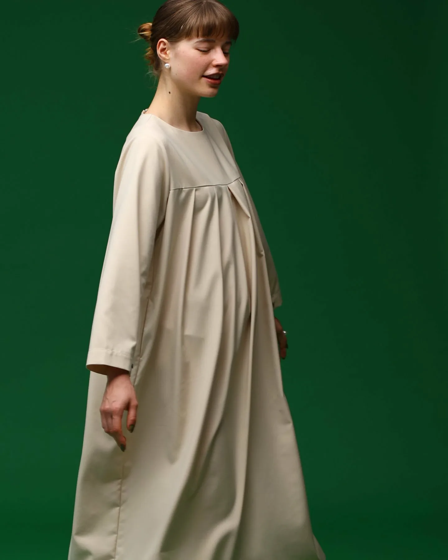 Глубокие драпировки под грудью создают красивую драпировку, напоминающую складки.