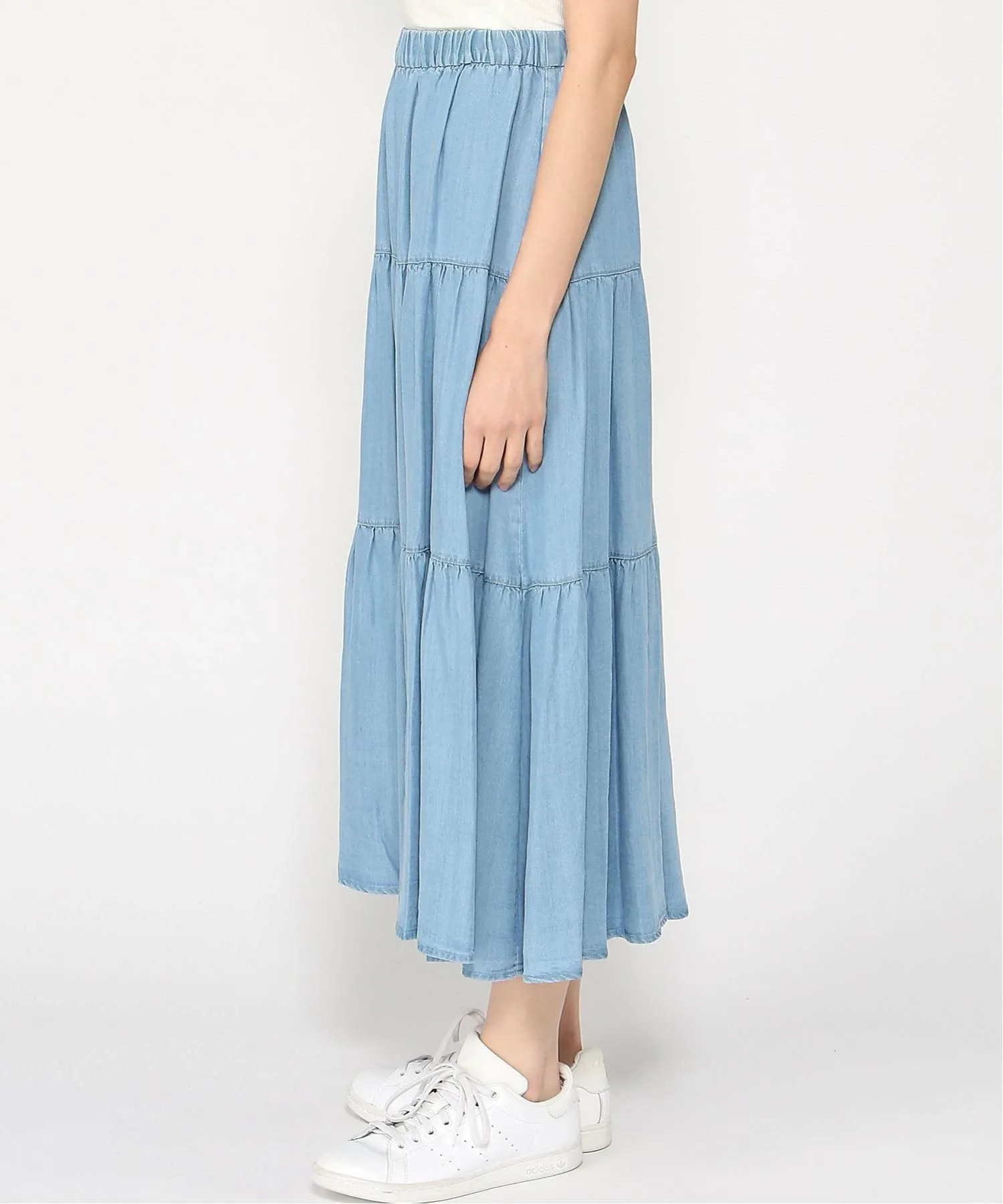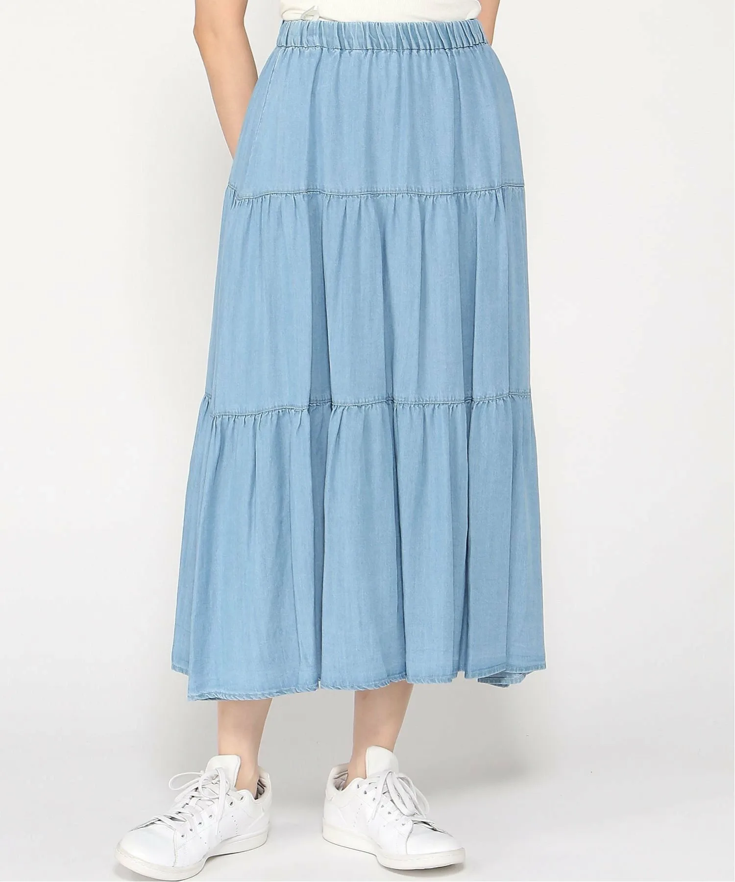Легкая многоярусная конструкция этой юбки изящно колышется при каждом движении, создавая расслабленную атмосферу.