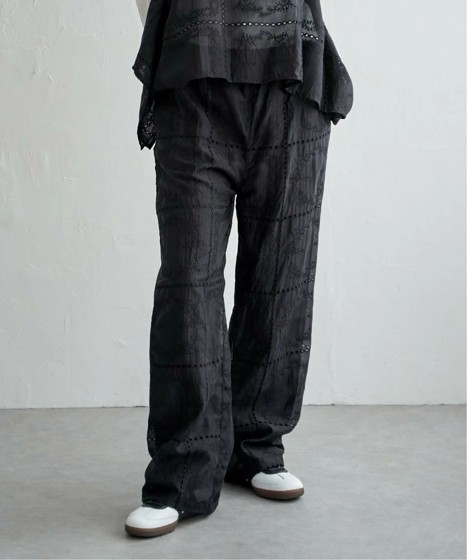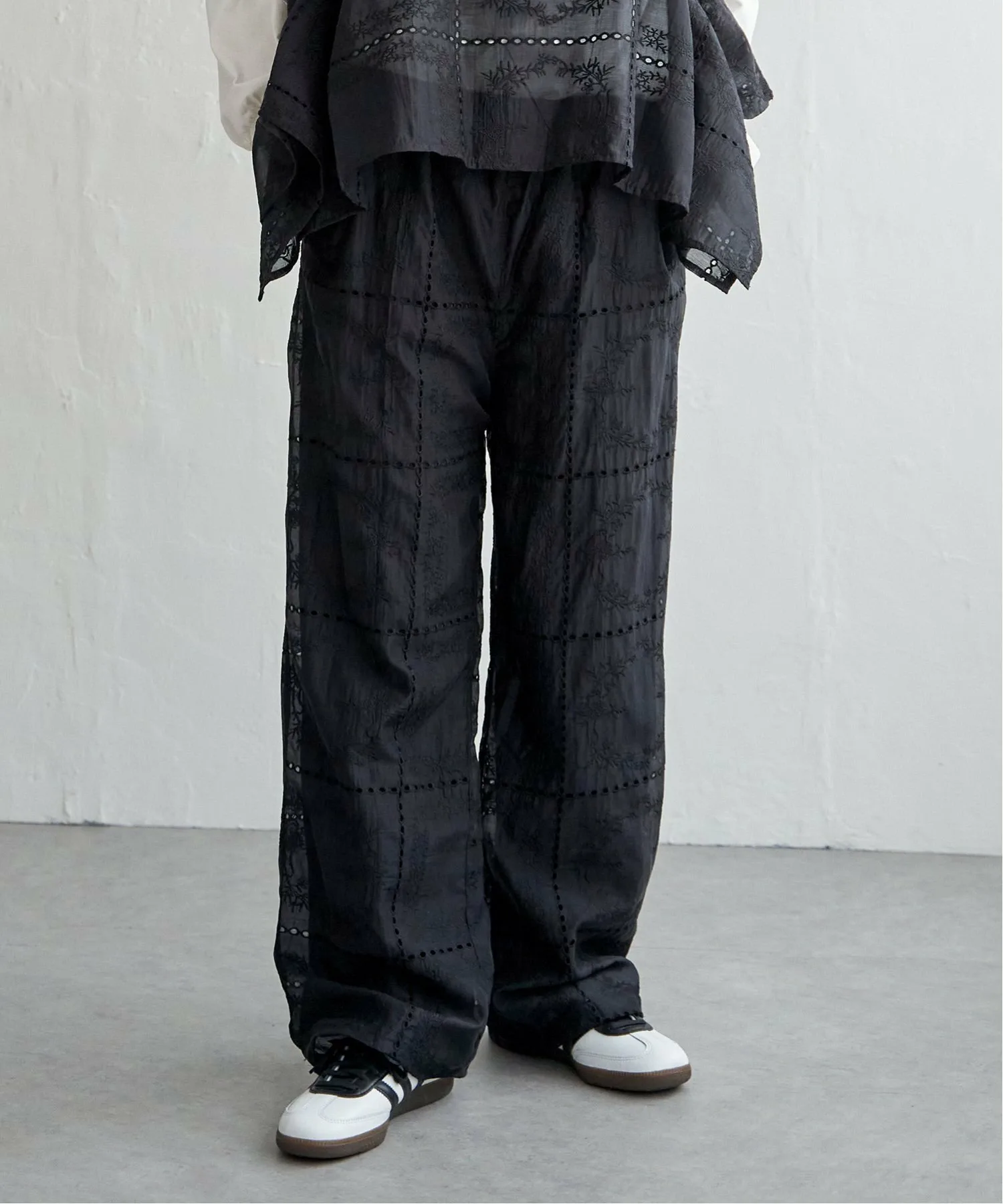 Широкие брюки с эффектной замысловатой вышивкой и квадратными вставками.