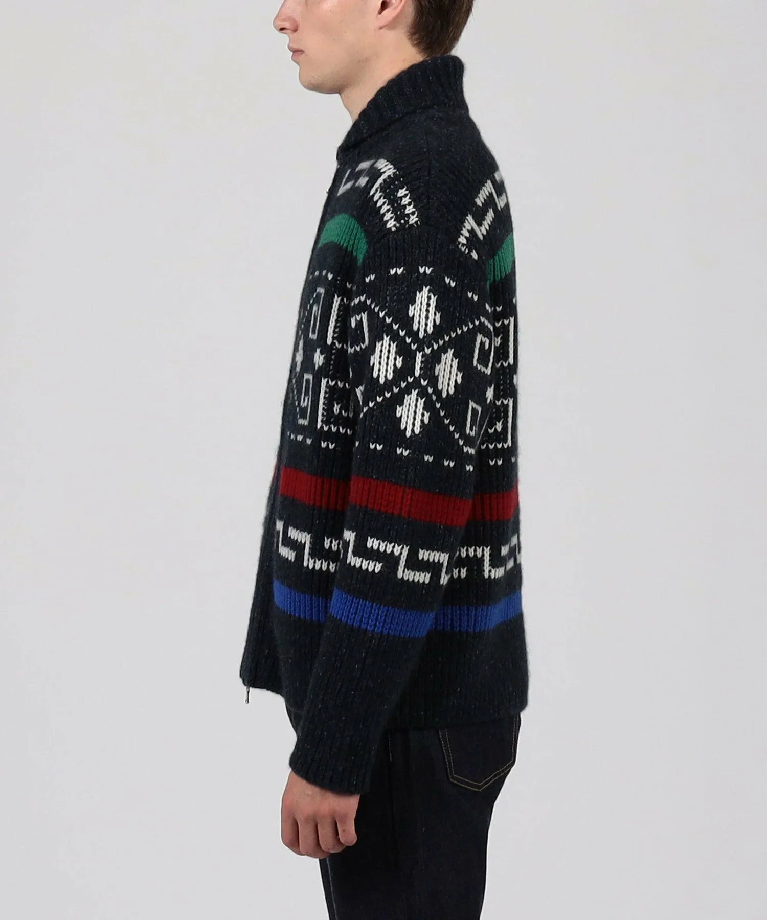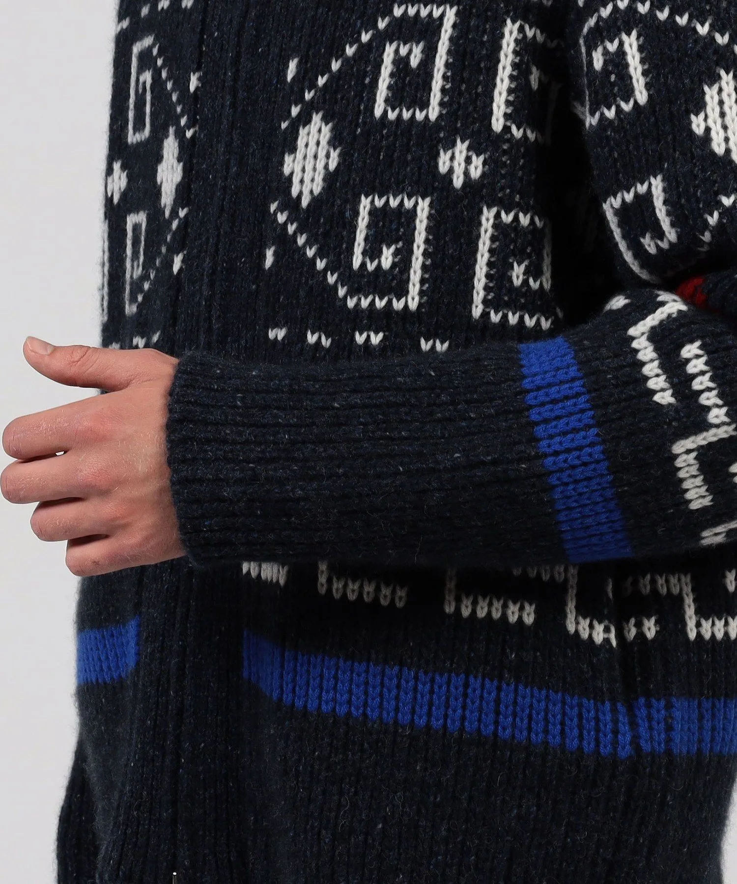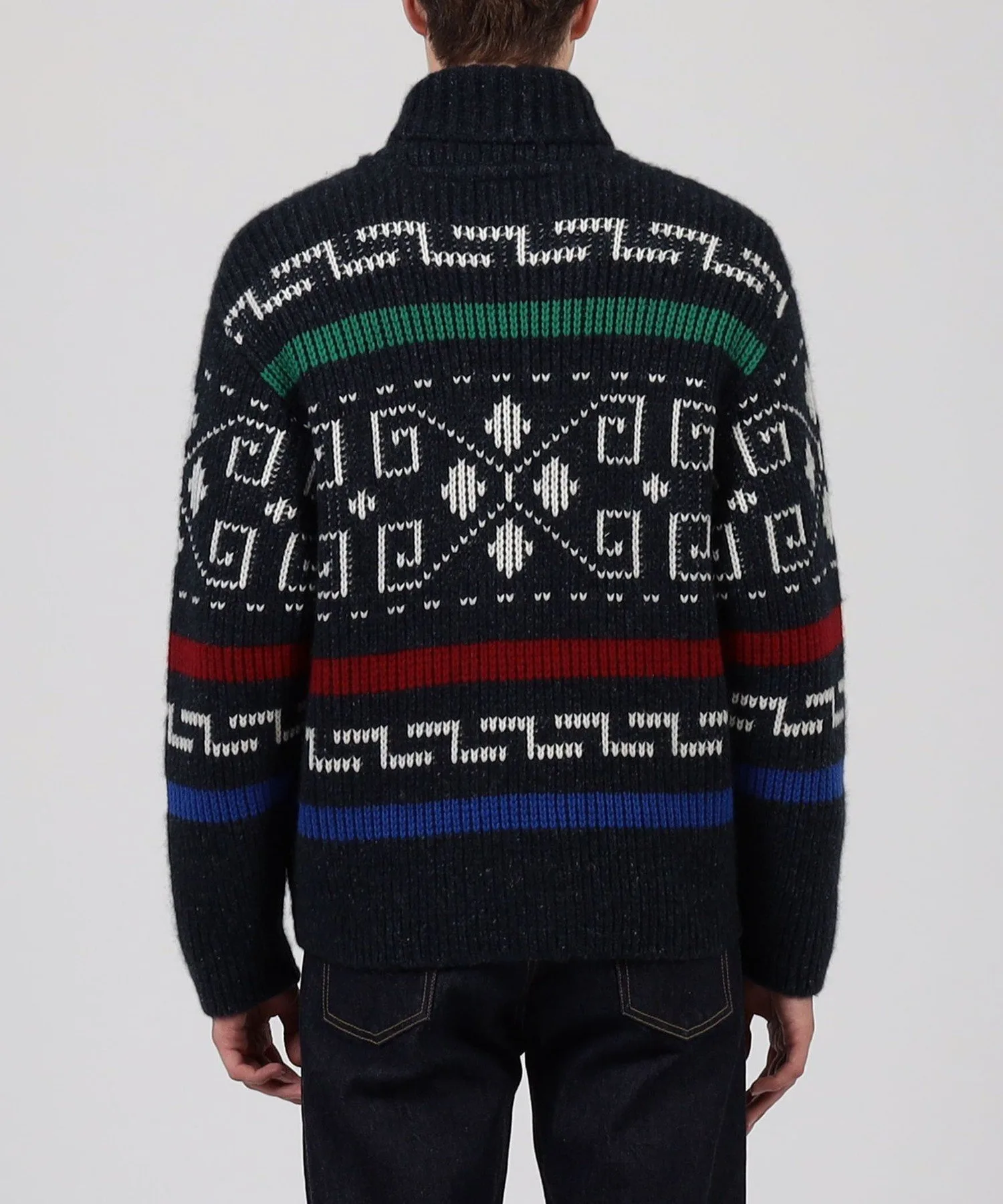 Вдохновленный свитером Cowichan, продававшимся с 1974 по 1980-е годы, дизайн включает в себя греческий орнамент.