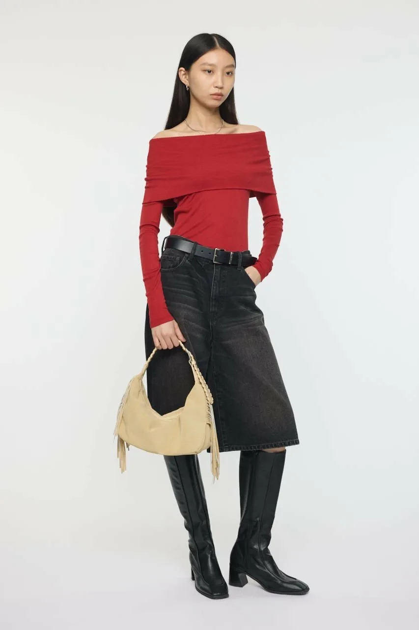 Мягкий, облегающий силуэт подчеркивает женственность, а дизайн открывает плечи, создавая здоровый, расслабленный образ.