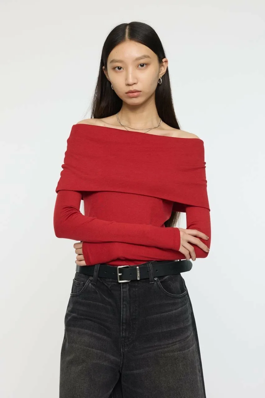 Этот топ с открытыми плечами изготовлен из легкого ребристого материала.