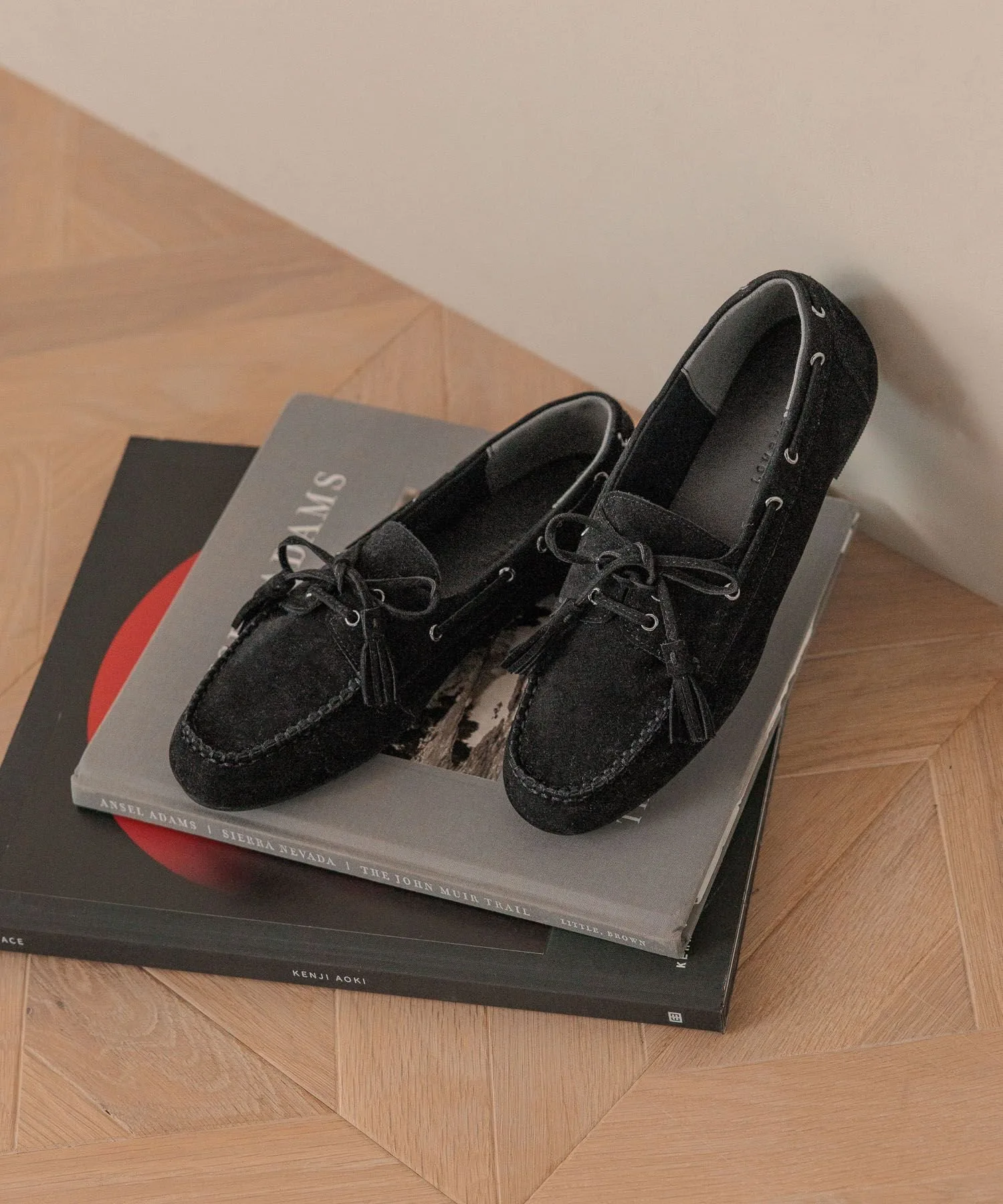 Эти мокасины украшены лентой с бахромой.