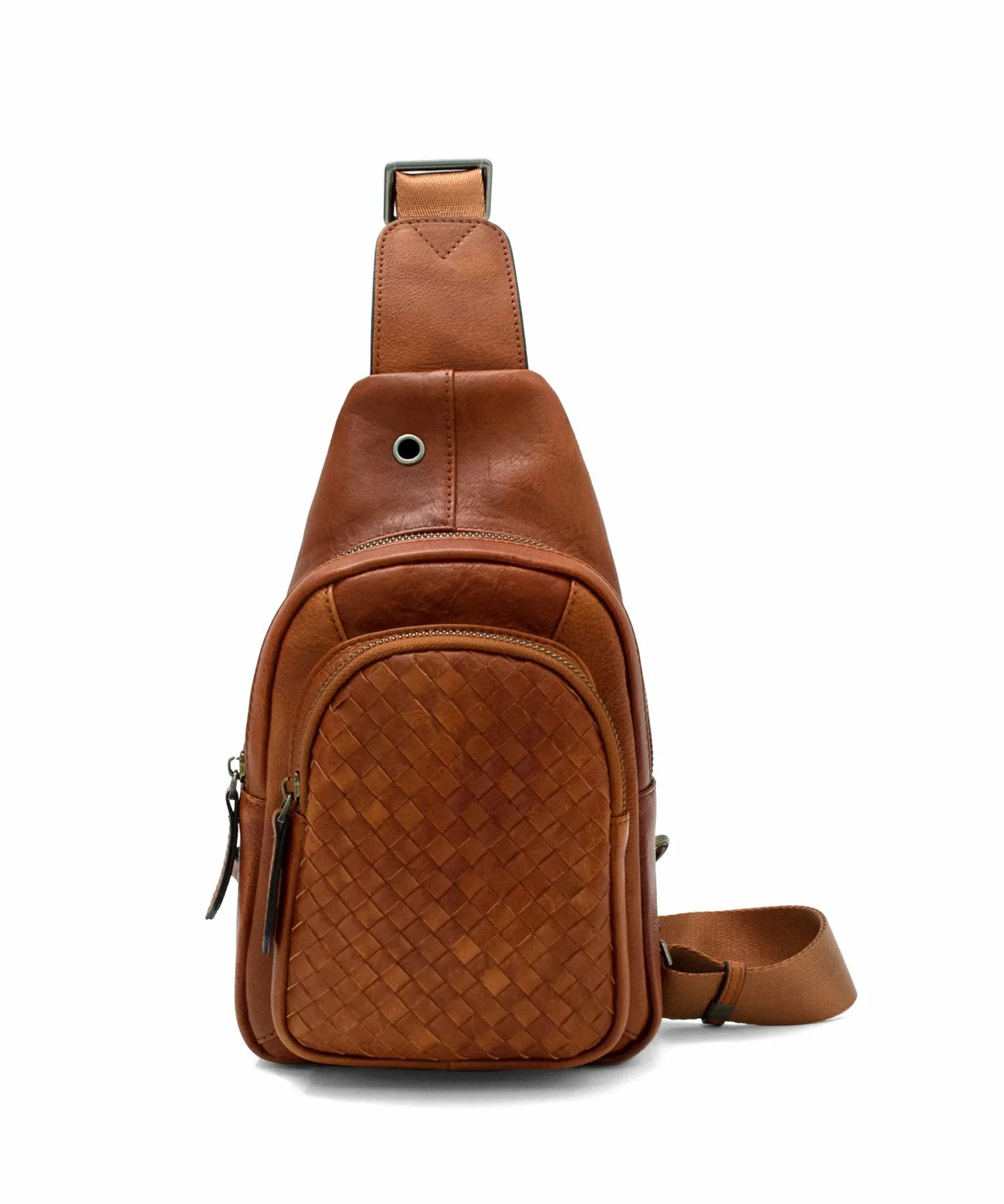 Сетчатая сумка через плечо из бангладешской кожи, созданная с акцентом на практичность и форму.