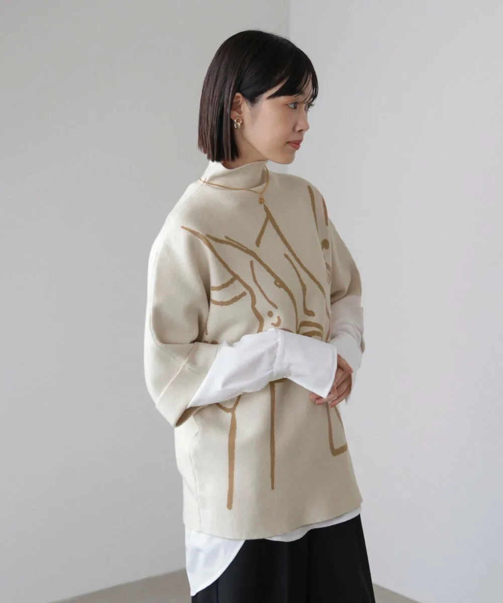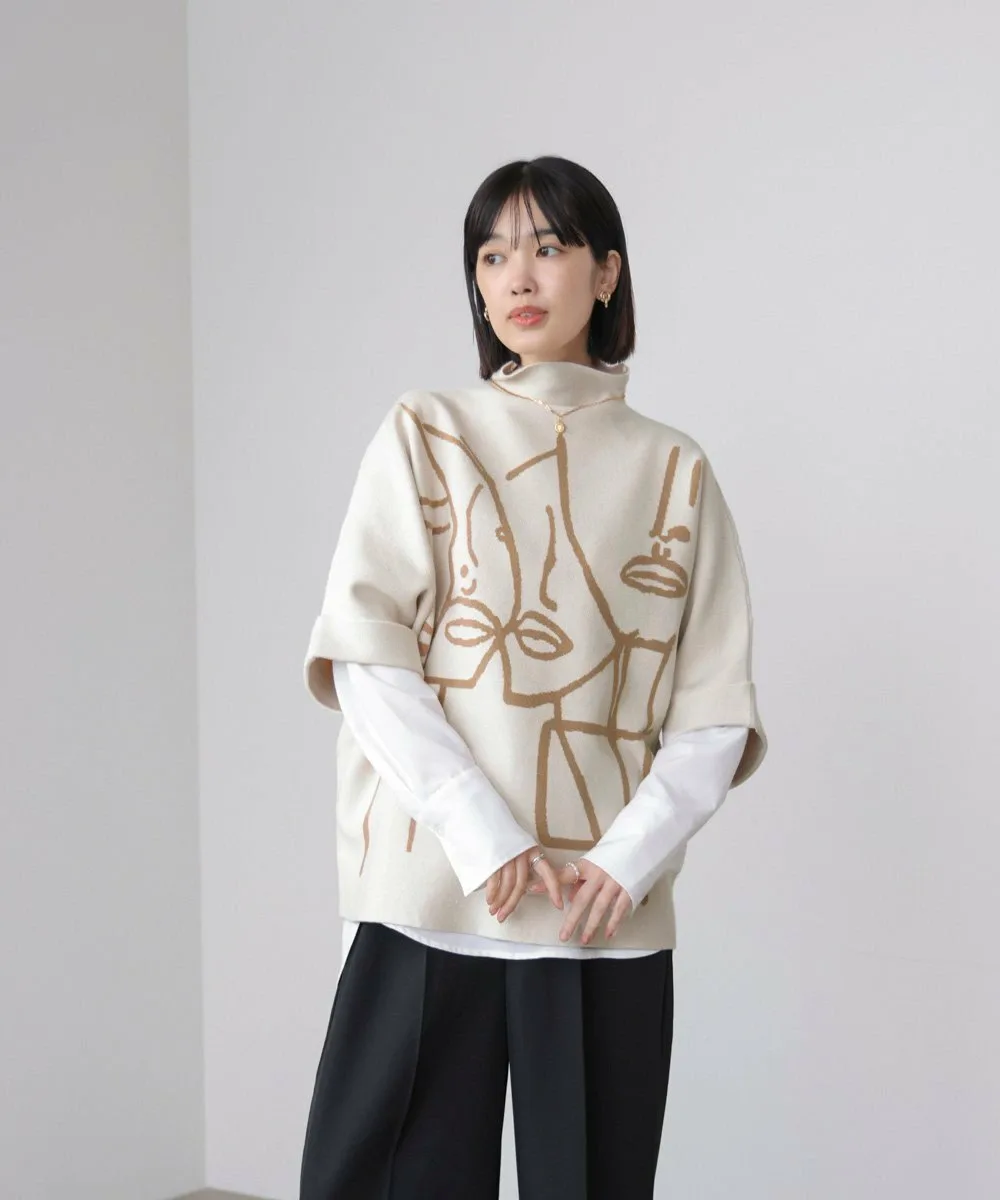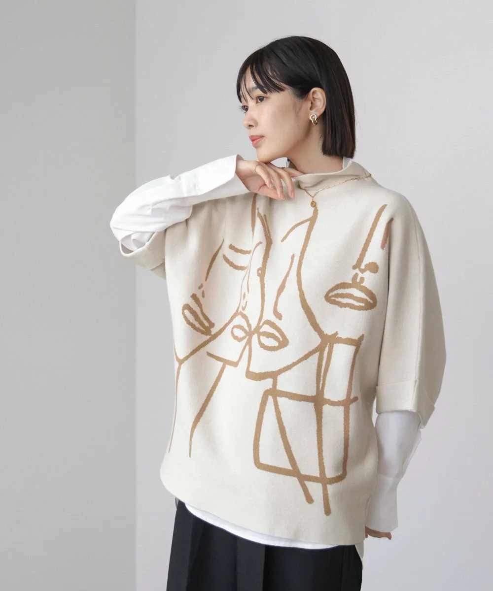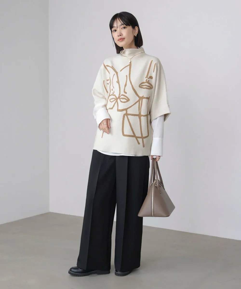 POINTТрикотажный пуловер с высоким воротником и смелым линейным рисунком, который привлекает внимание. Абстрактный рисунок лица создает современную атмосферу, добавляя индивидуальности даже простым нарядам. Просторный силуэт, характерный для рукавов «летучая мышь», обеспечивает как поддержку фигуры, так и ощущение расслабленности. Мягкий, струящийся трикотажный материал создает непринужденный, взрослый стиль.