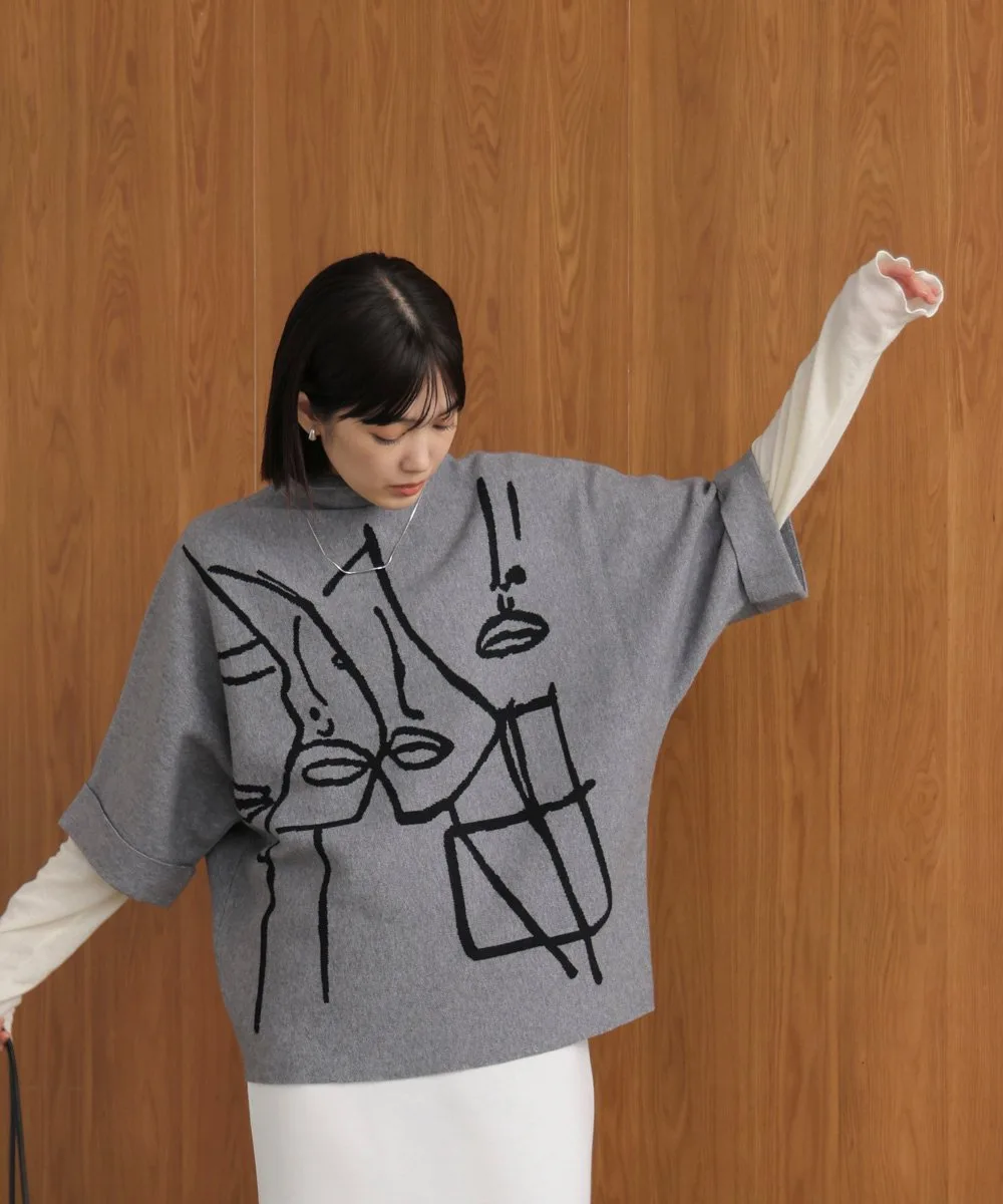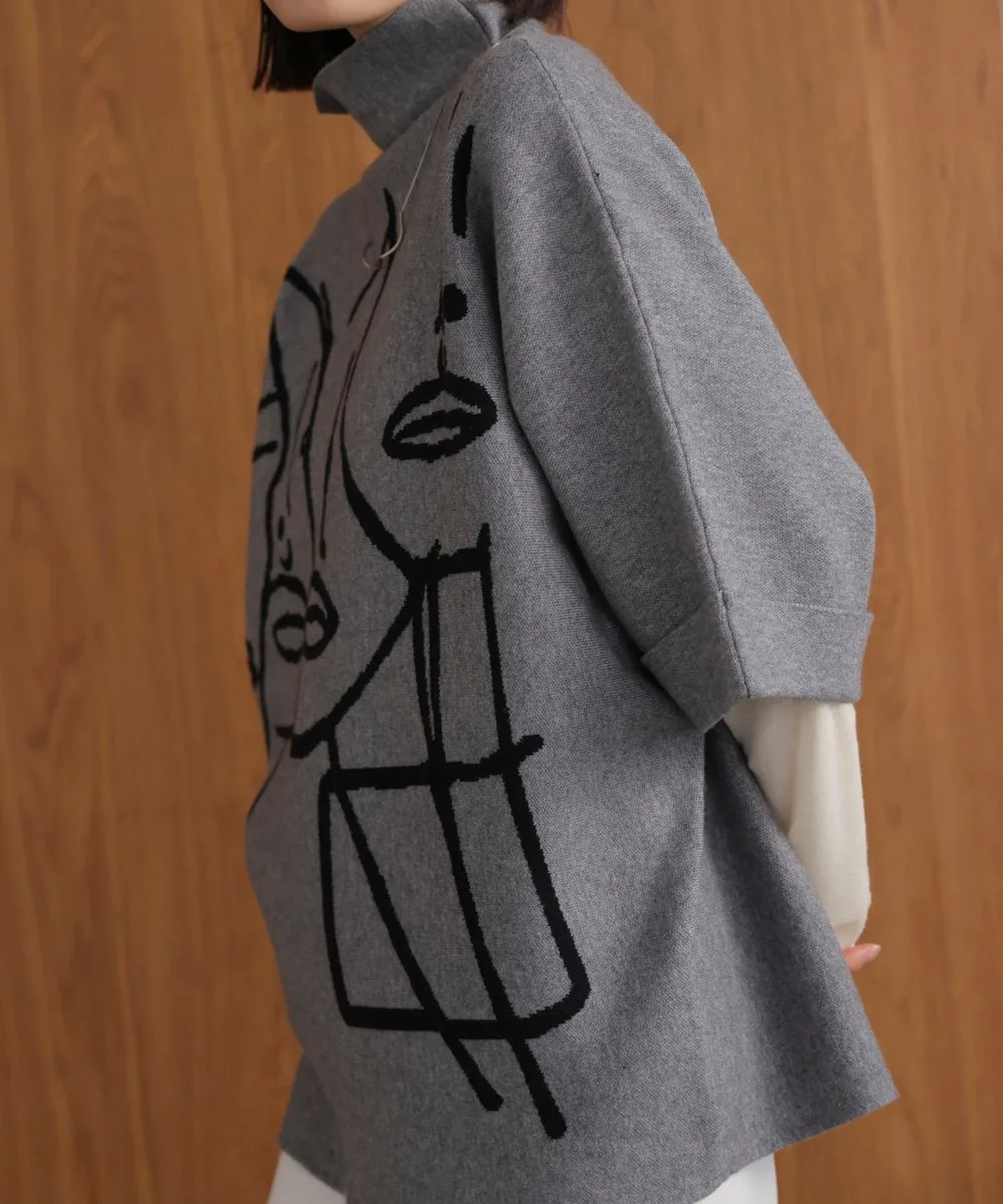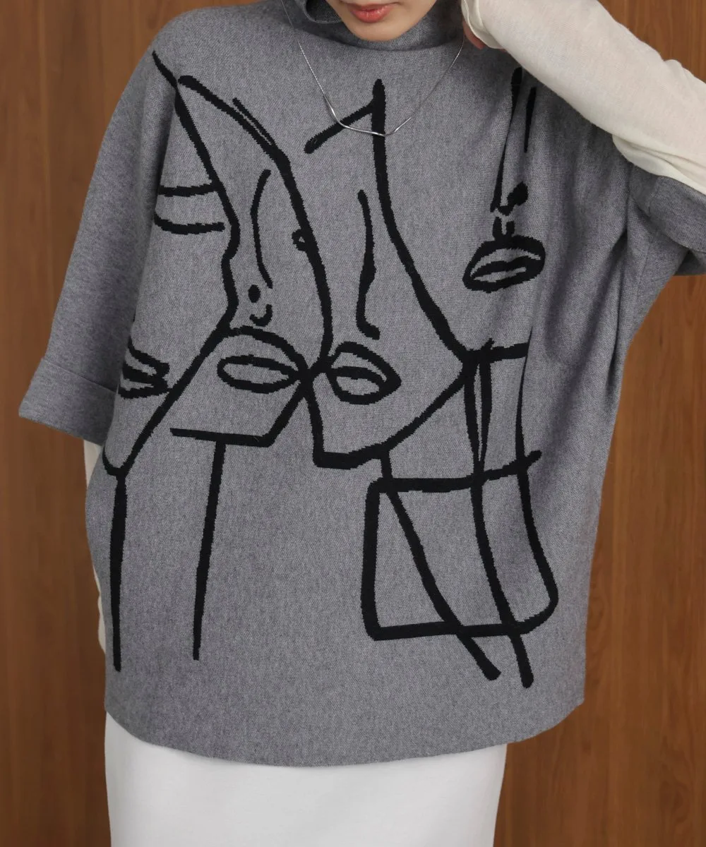 POINTТрикотажный пуловер с высоким воротником и смелым линейным рисунком, который привлекает внимание. Абстрактный рисунок лица создает современную атмосферу, добавляя индивидуальности даже простым нарядам. Просторный силуэт, характерный для рукавов «летучая мышь», обеспечивает как поддержку фигуры, так и ощущение расслабленности. Мягкий, струящийся трикотажный материал создает непринужденный, взрослый стиль.
