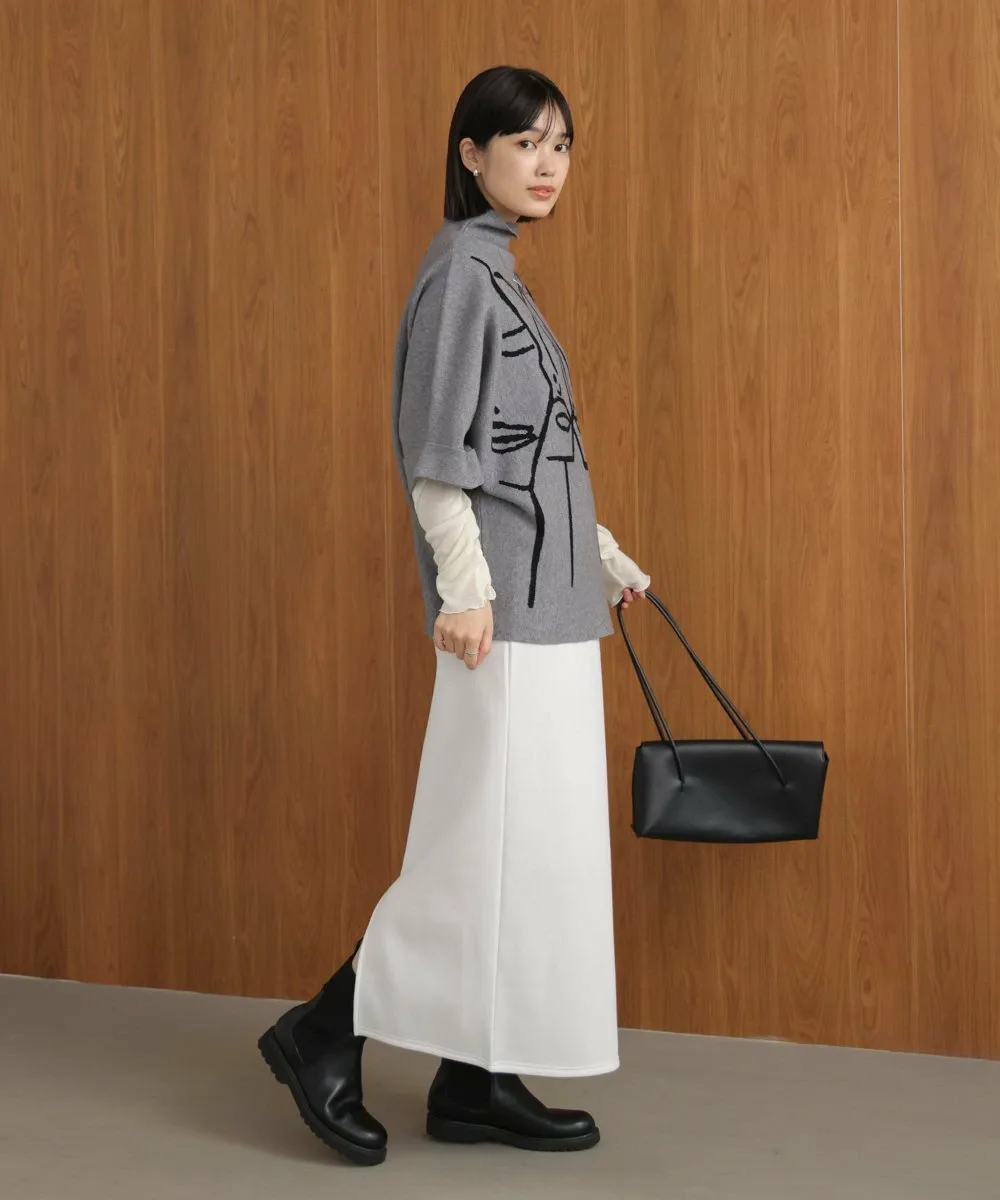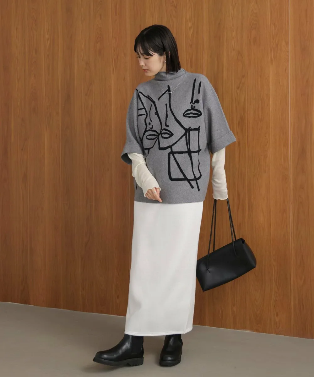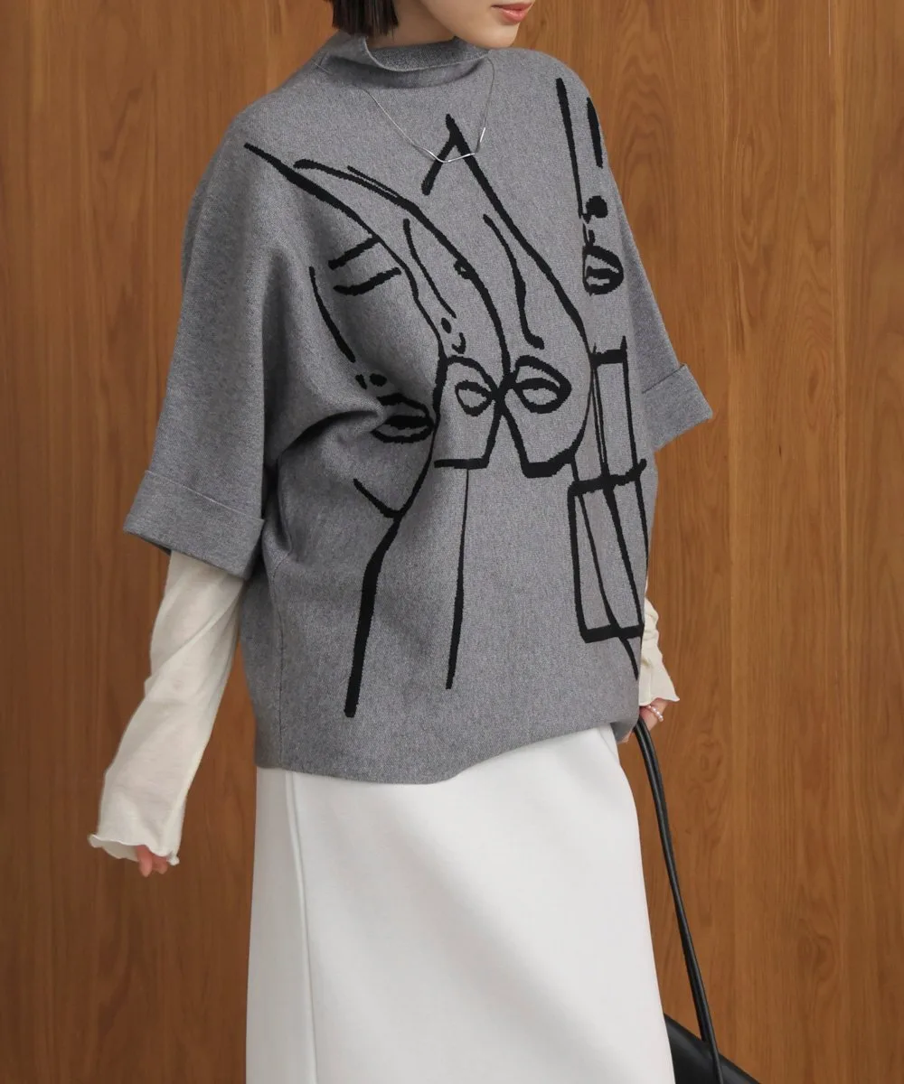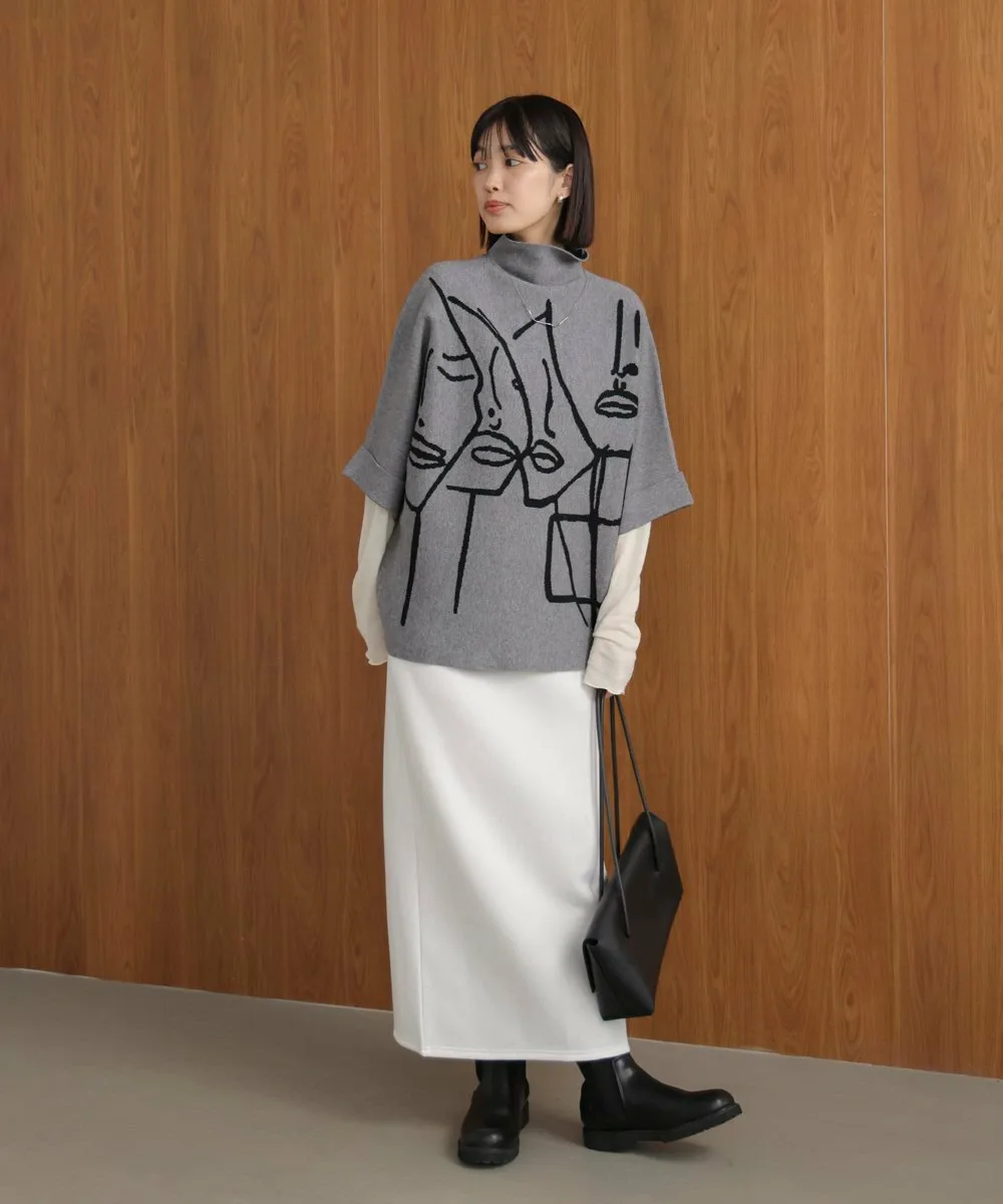 POINTТрикотажный пуловер с высоким воротником и смелым линейным рисунком, который привлекает внимание. Абстрактный рисунок лица создает современную атмосферу, добавляя индивидуальности даже простым нарядам. Просторный силуэт, характерный для рукавов «летучая мышь», обеспечивает как поддержку фигуры, так и ощущение расслабленности. Мягкий, струящийся трикотажный материал создает непринужденный, взрослый стиль.