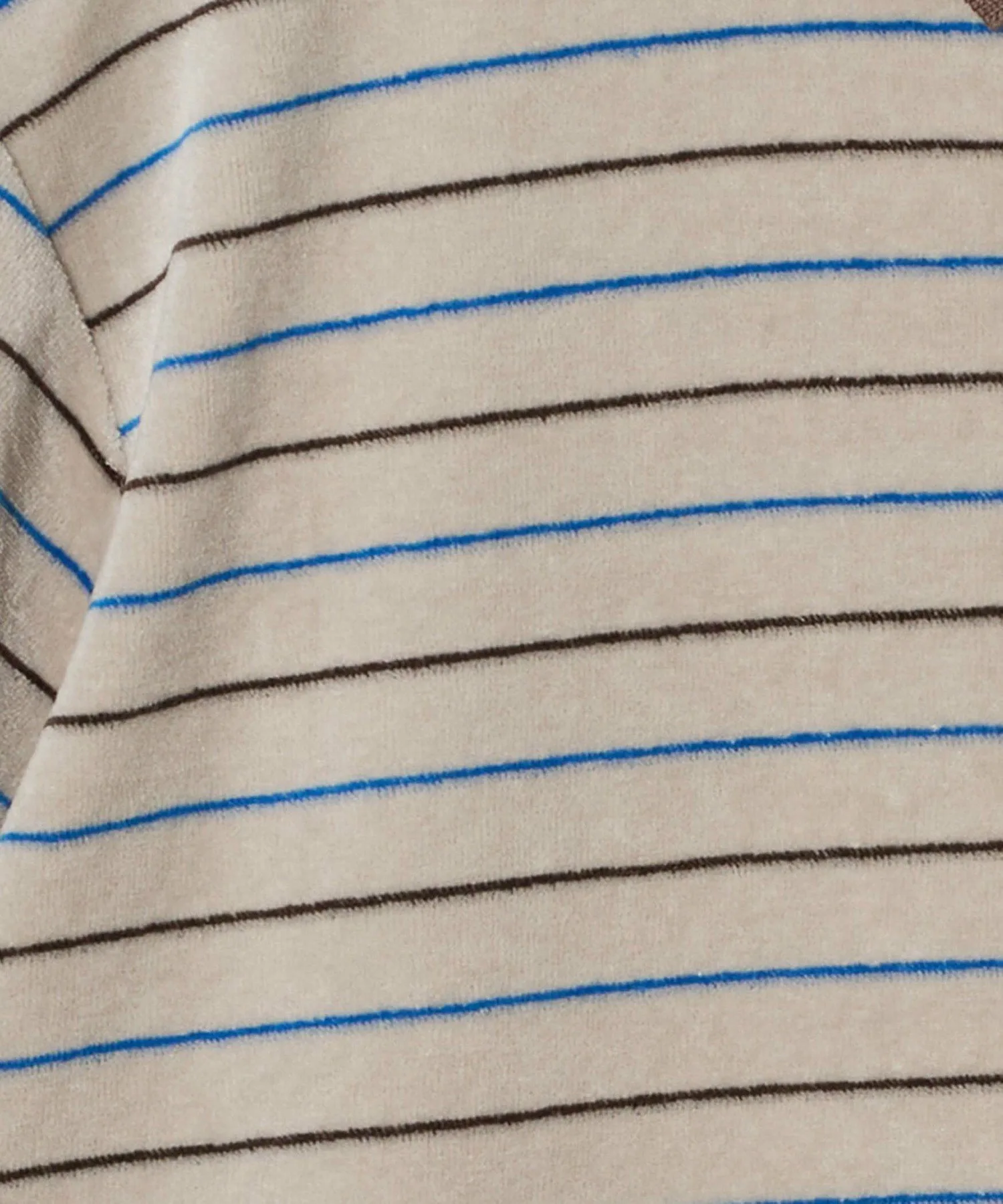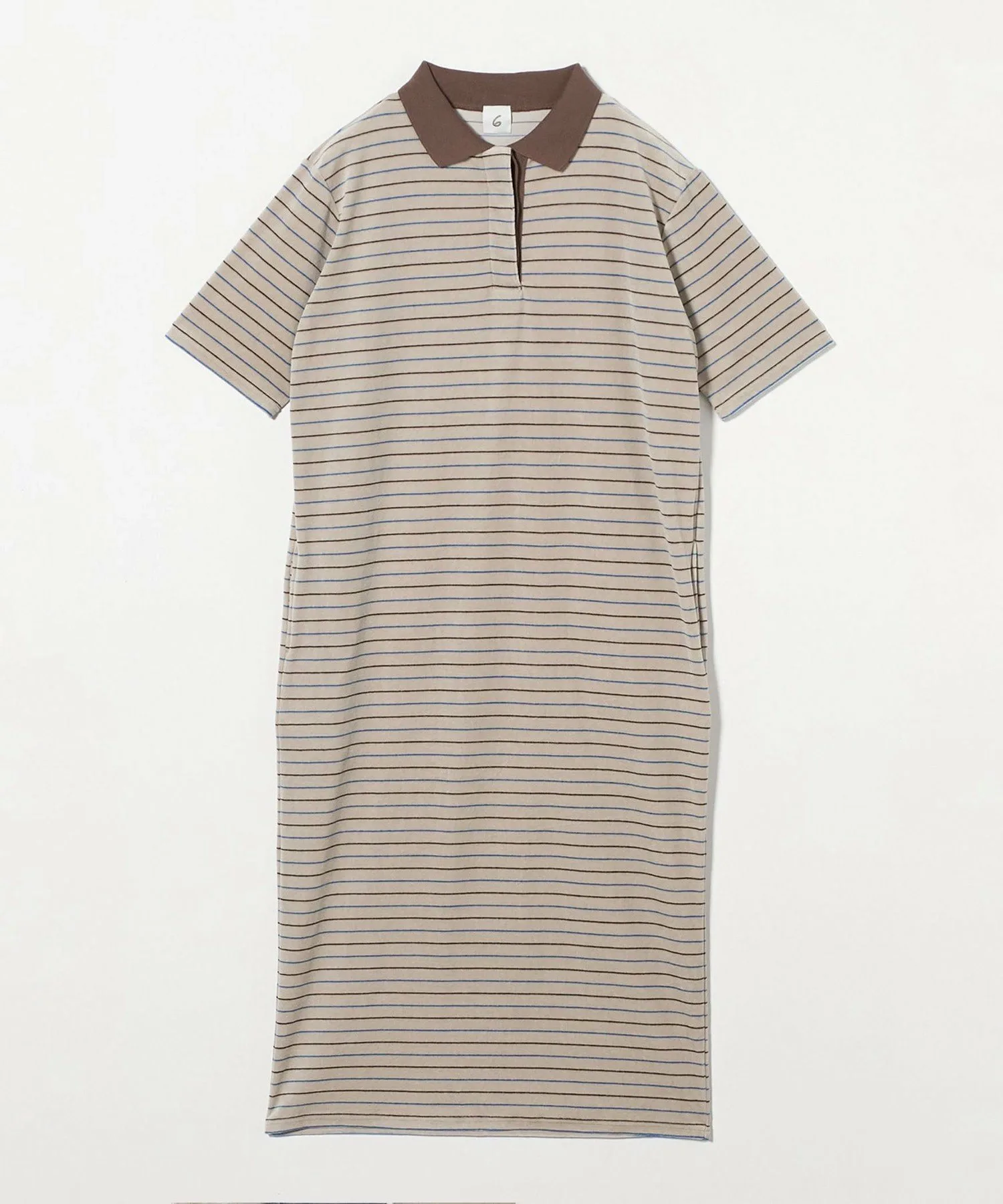 Полосатое платье-поло из гладкой, слегка блестящей велюровой ткани.