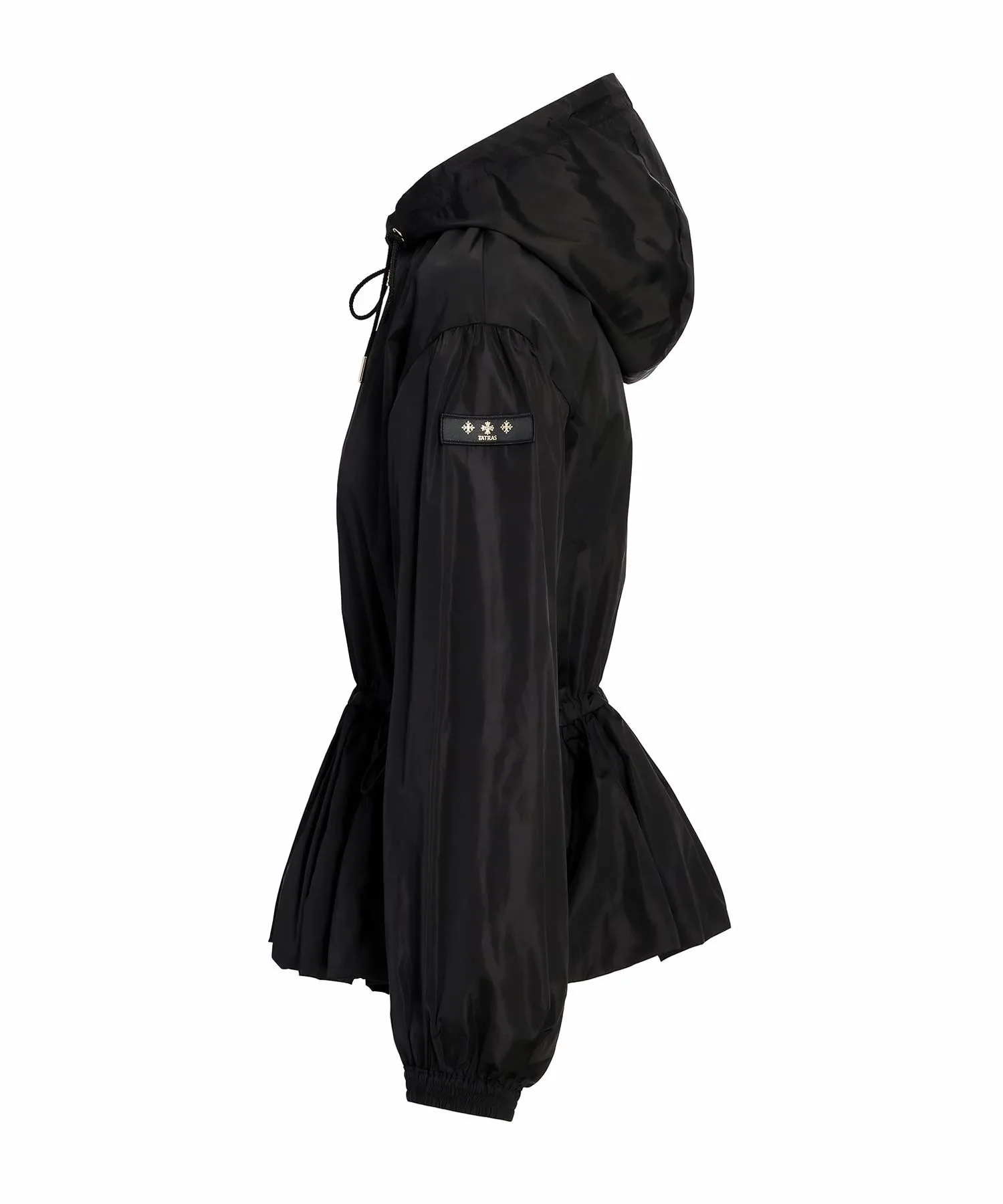 TATRAS ENZI — повседневная куртка со встроенным капюшоном и вшитым корпусом. Ткань — высокоплотная нейлоновая тафта, легкая и водоотталкивающая. Ее красивые тени и блеск создают элегантный образ. Шнурок на талии позволяет регулировать посадку. Металлические детали на концах шнурка, молнии и фиксаторе шнурка добавляют нотку роскоши. Просто наденьте ее для создания изысканного образа. [Примечание] Изображения товара являются образцами и могут отличаться от реального продукта. Таблица размеров основана на измерениях выкройки и может отличаться от реального продукта. В комплект входит только вешалка TATRAS.
