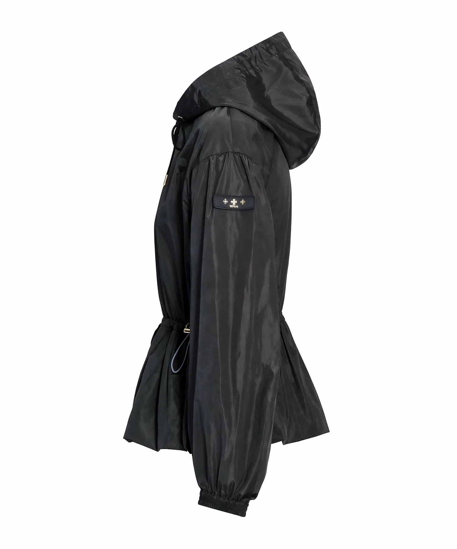 TATRAS ENZI — повседневная куртка со встроенным капюшоном и вшитым корпусом. Ткань — высокоплотная нейлоновая тафта, легкая и водоотталкивающая. Ее красивые тени и блеск создают элегантный образ. Шнурок на талии позволяет регулировать посадку. Металлические детали на концах шнурка, молнии и фиксаторе шнурка добавляют нотку роскоши. Просто наденьте ее для создания изысканного образа. [Примечание] Изображения товара являются образцами и могут отличаться от реального продукта. Таблица размеров основана на измерениях выкройки и может отличаться от реального продукта. В комплект входит только вешалка TATRAS.