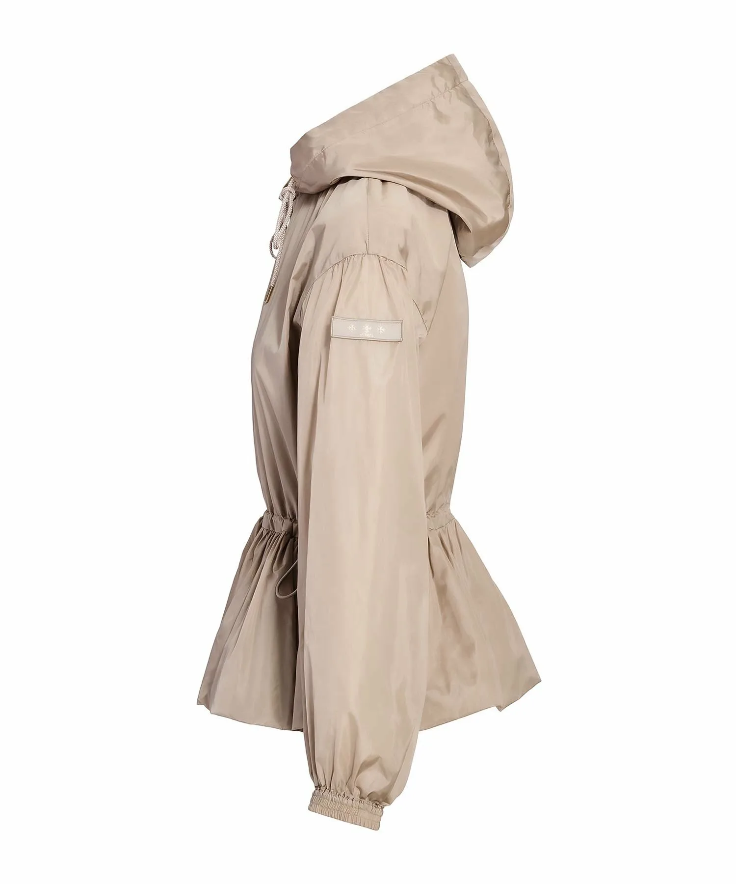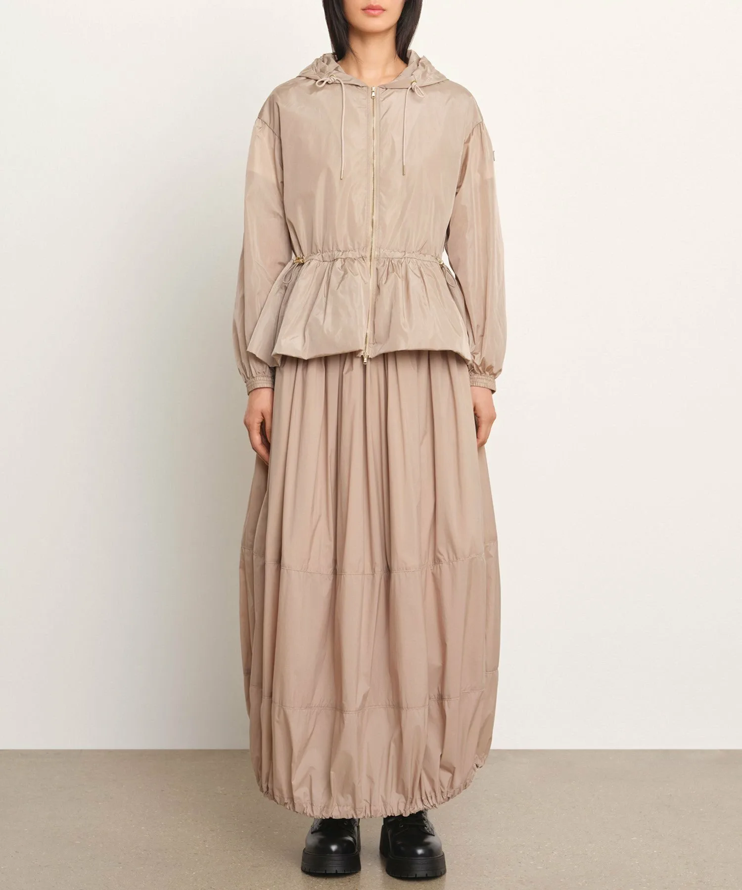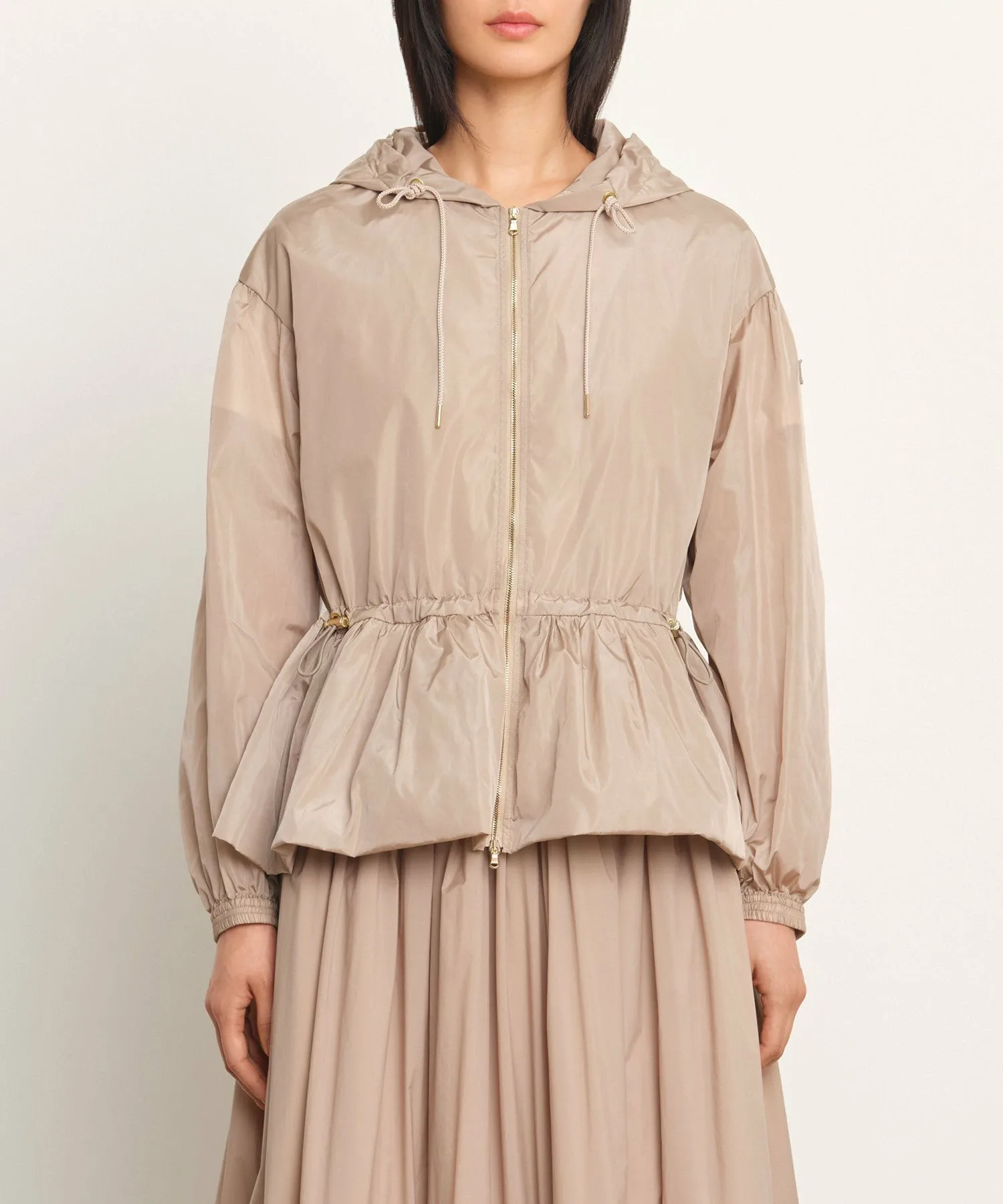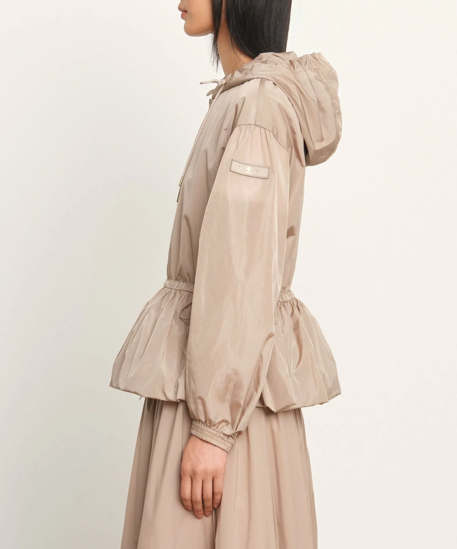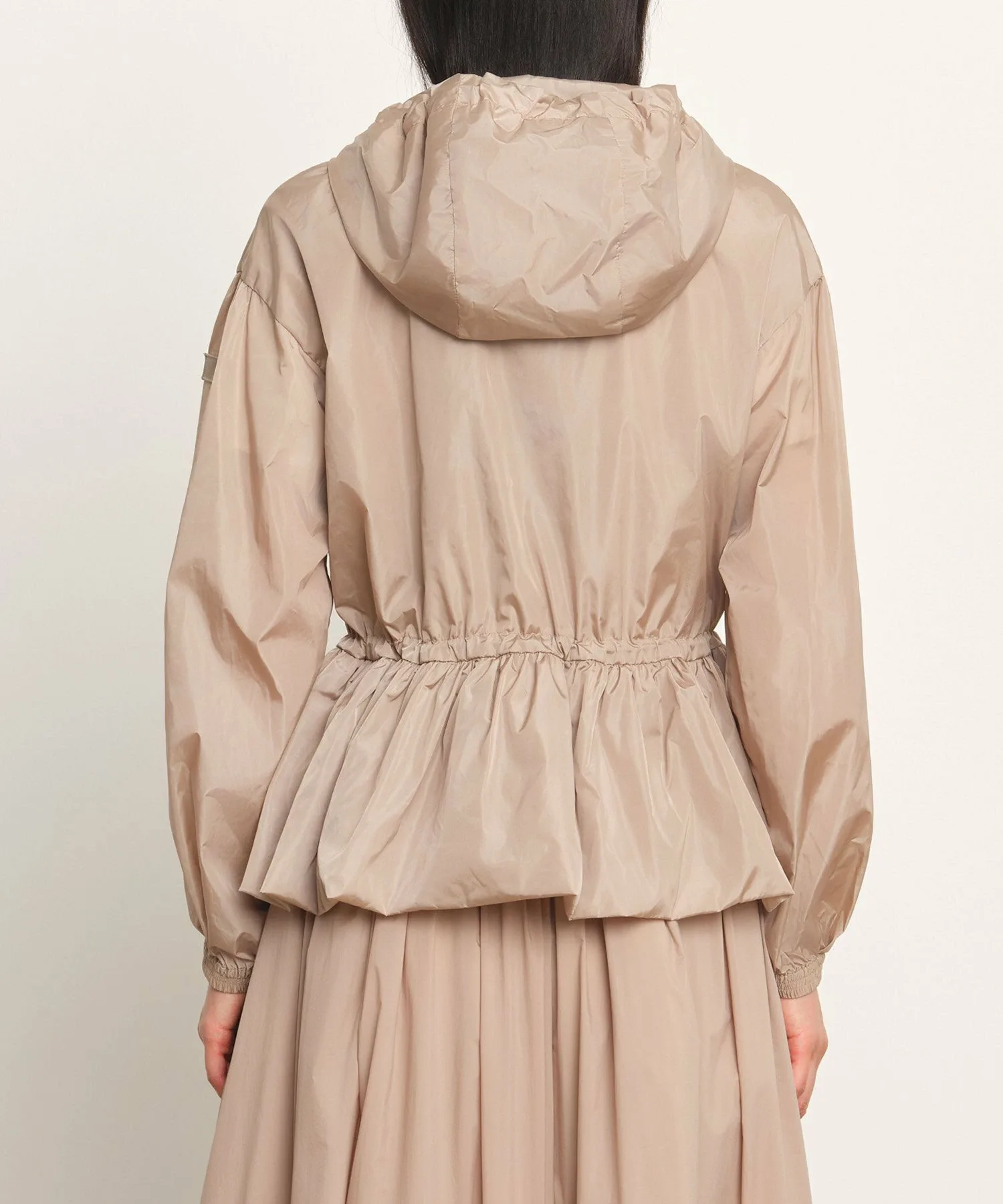 TATRAS ENZI — повседневная куртка со встроенным капюшоном и вшитым корпусом. Ткань — высокоплотная нейлоновая тафта, легкая и водоотталкивающая. Ее красивые тени и блеск создают элегантный образ. Шнурок на талии позволяет регулировать посадку. Металлические детали на концах шнурка, молнии и фиксаторе шнурка добавляют нотку роскоши. Просто наденьте ее для создания изысканного образа. [Примечание] Изображения товара являются образцами и могут отличаться от реального продукта. Таблица размеров основана на измерениях выкройки и может отличаться от реального продукта. В комплект входит только вешалка TATRAS.