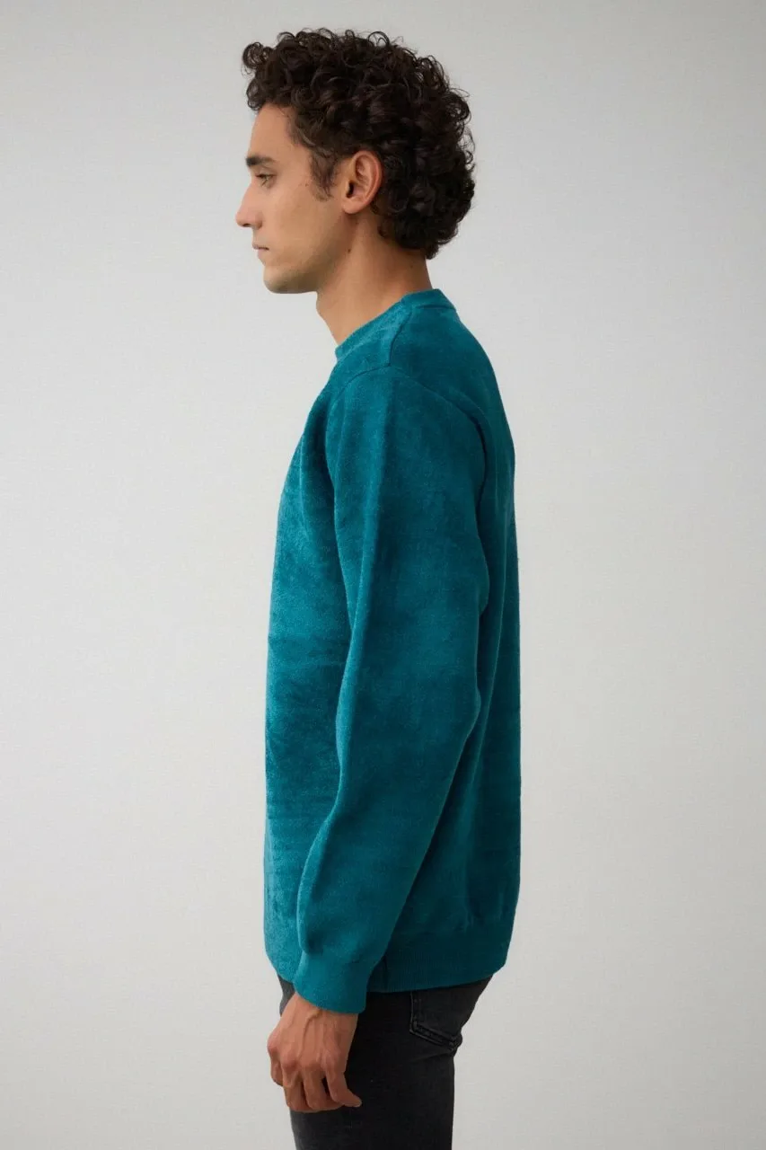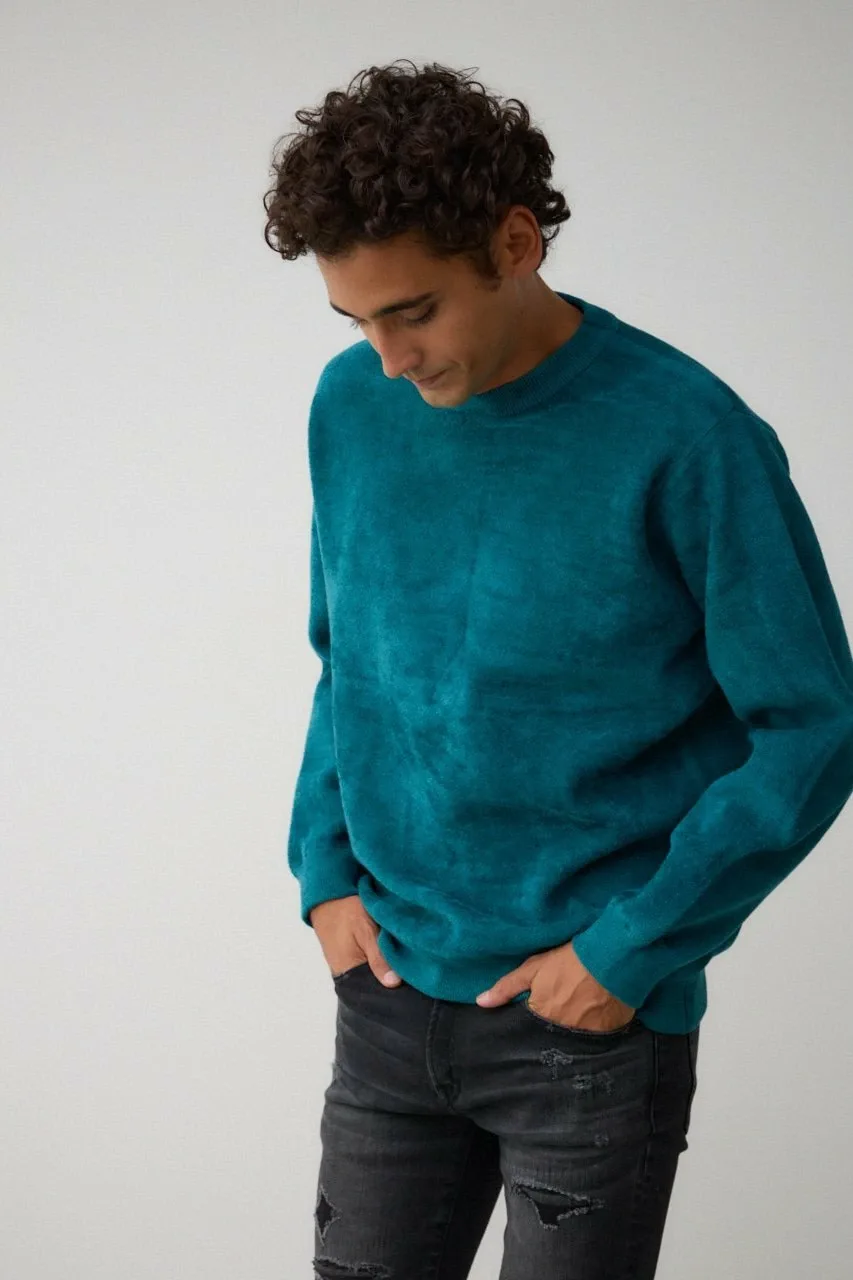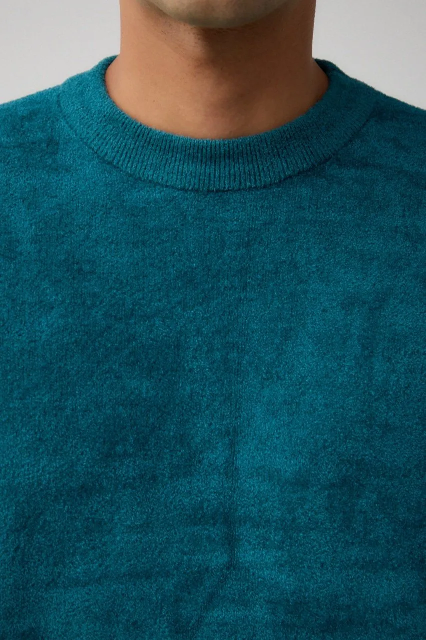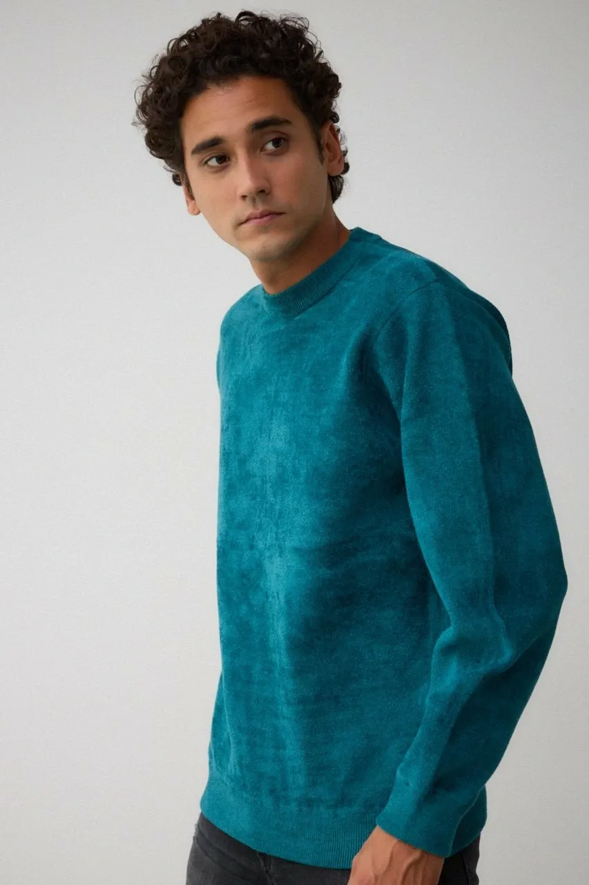 Двусторонний трикотаж из мохеровой пряжи, напоминающей замшу, и полиэстеровой саржевой пряжи.