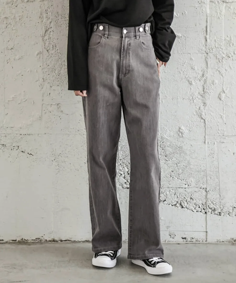 Застежка на талии регулируется в два этапа, что позволяет легко надевать брюки даже на узкую фигуру.