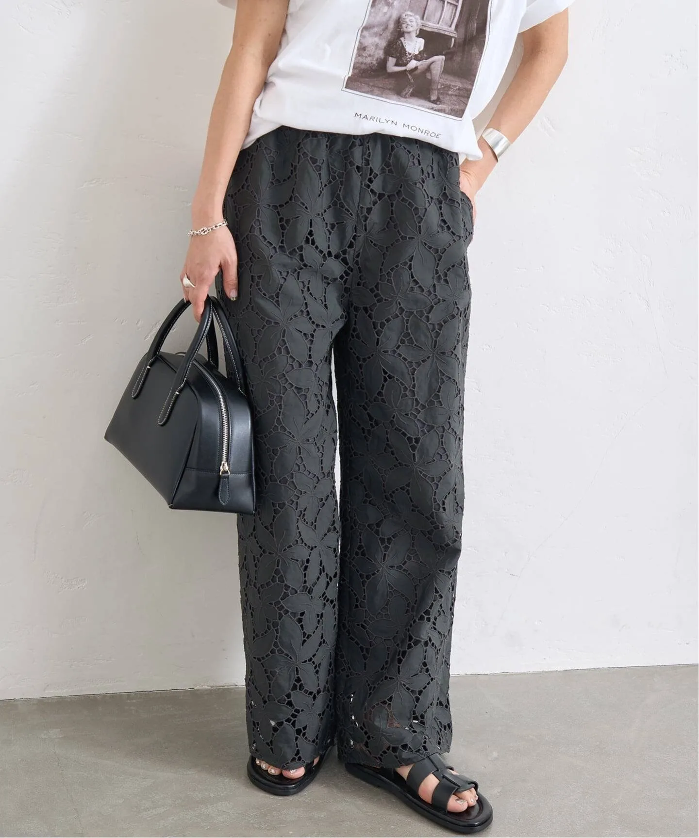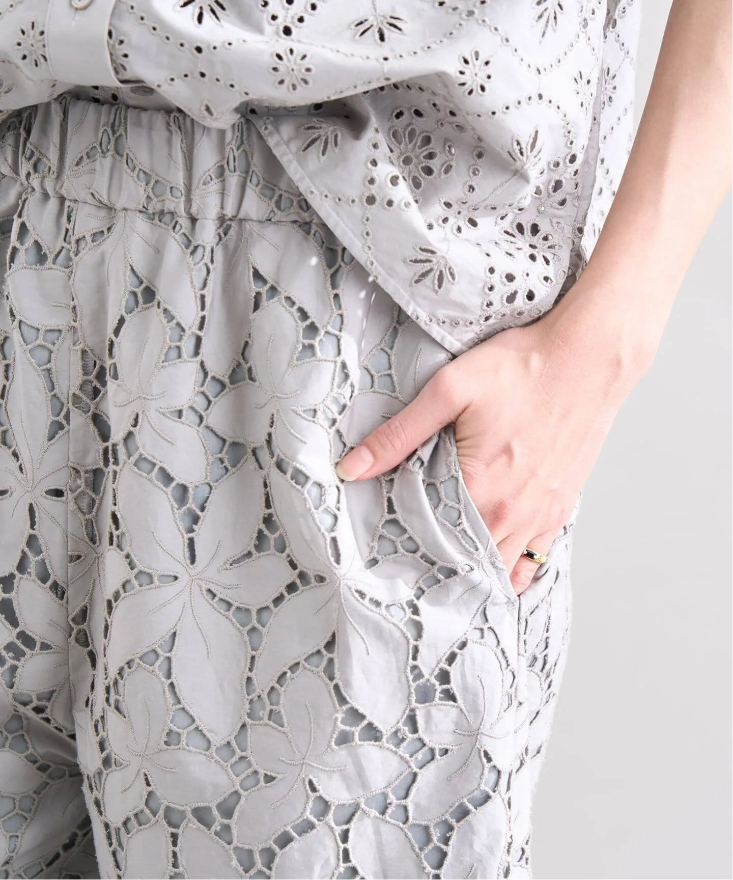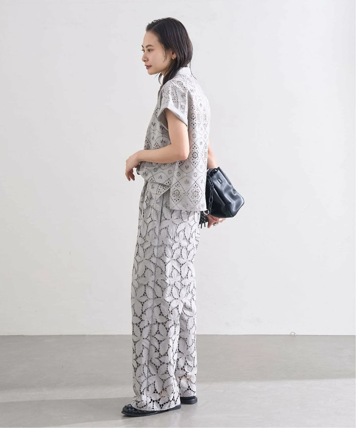 Эти брюки, полностью отделанные кружевом, изготовлены с использованием роскошного количества кружева. Лаконичный, минималистичный дизайн подчеркивает кружево, делая эти широкие брюки смелыми, элегантными и изящными, подходящими как для повседневной носки, так и для торжественных случаев. Оригинальное кружево вышивается и вырезается непосредственно на ткани в отечественном производственном центре и тщательно изготавливается с использованием навыков гордых японских мастеров.