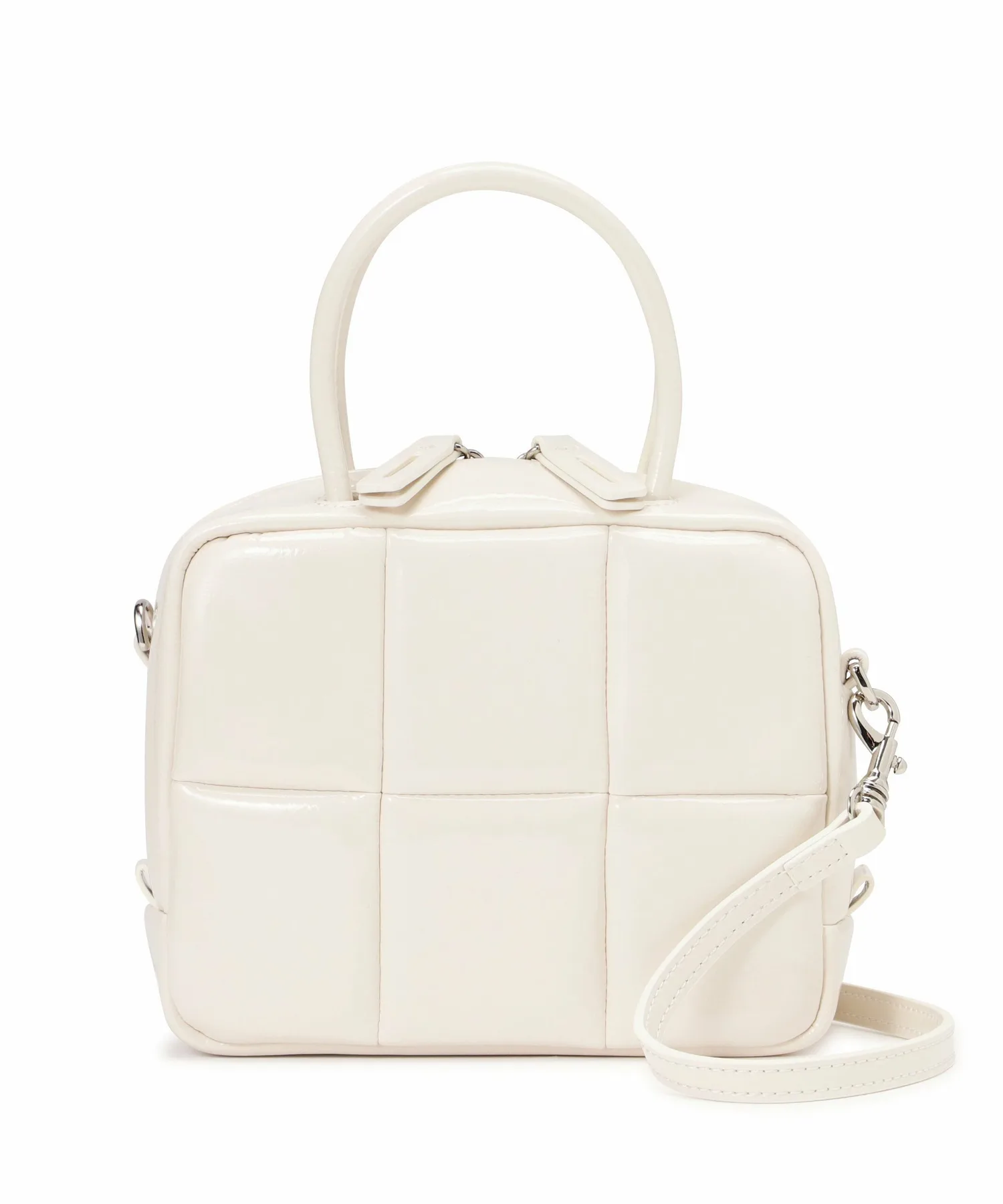 Материал — лакированная веганская кожа, придающая сумке блестящий, женственный вид.