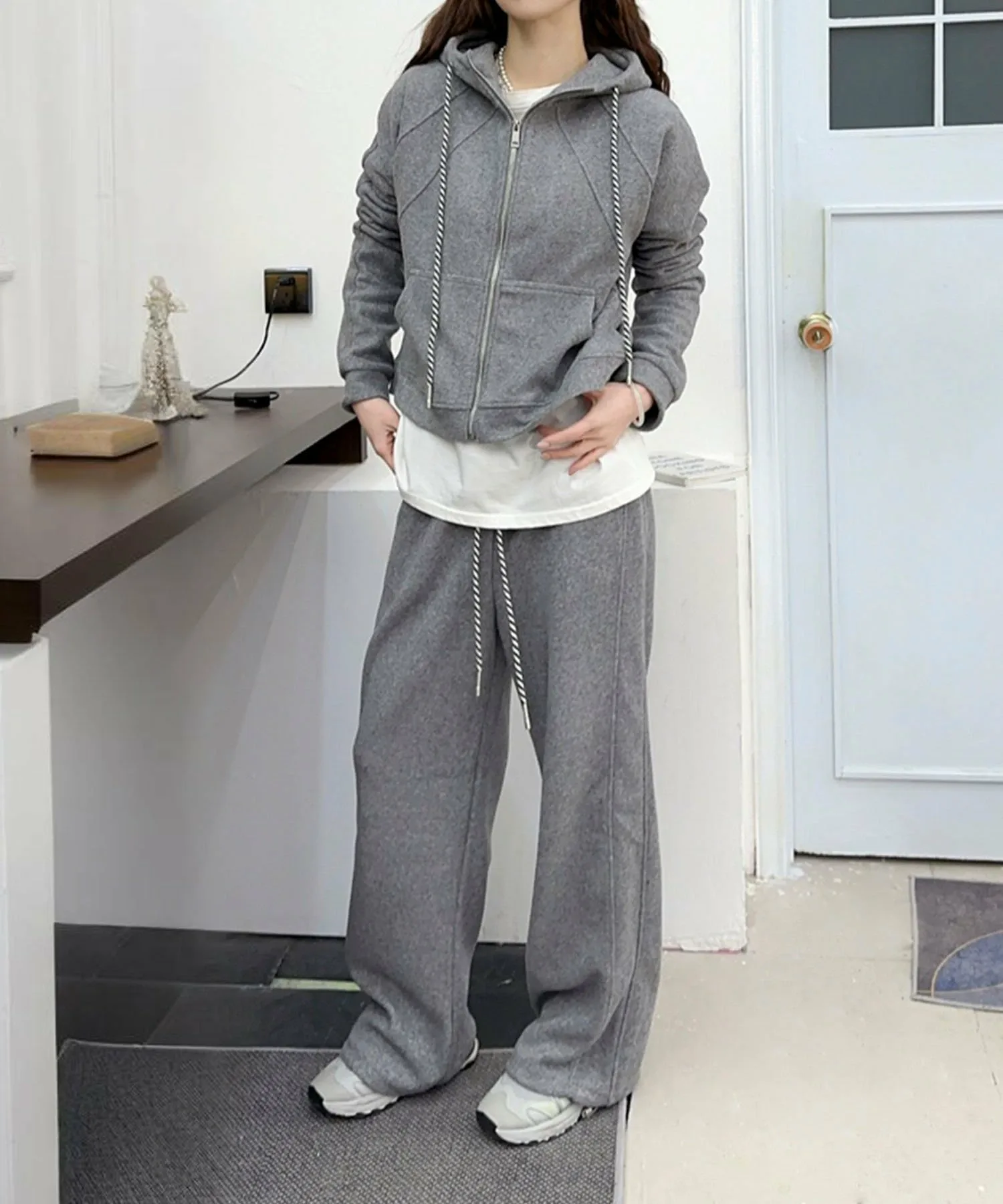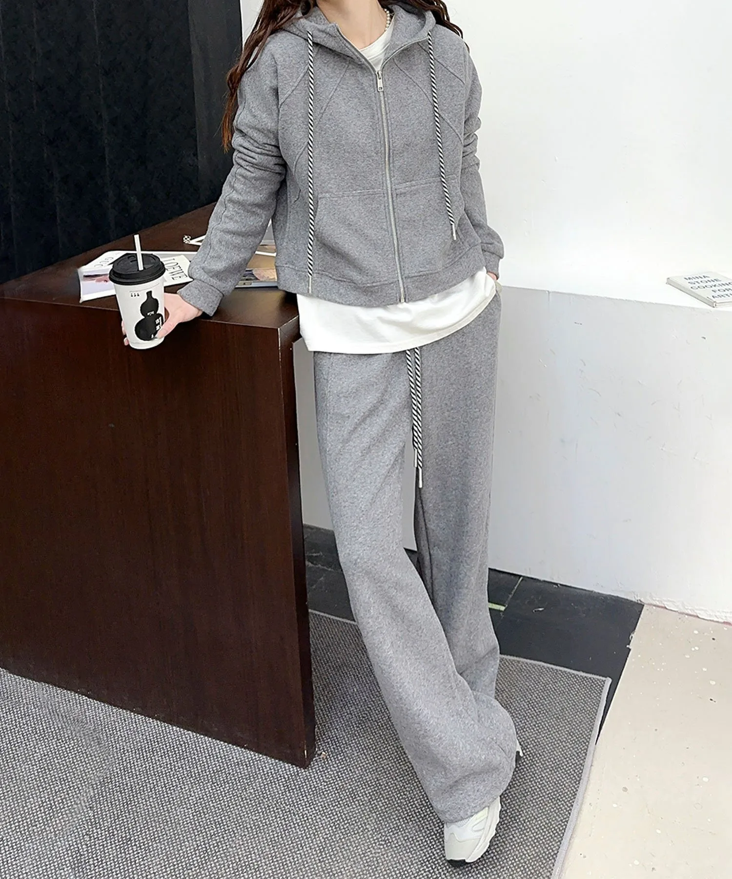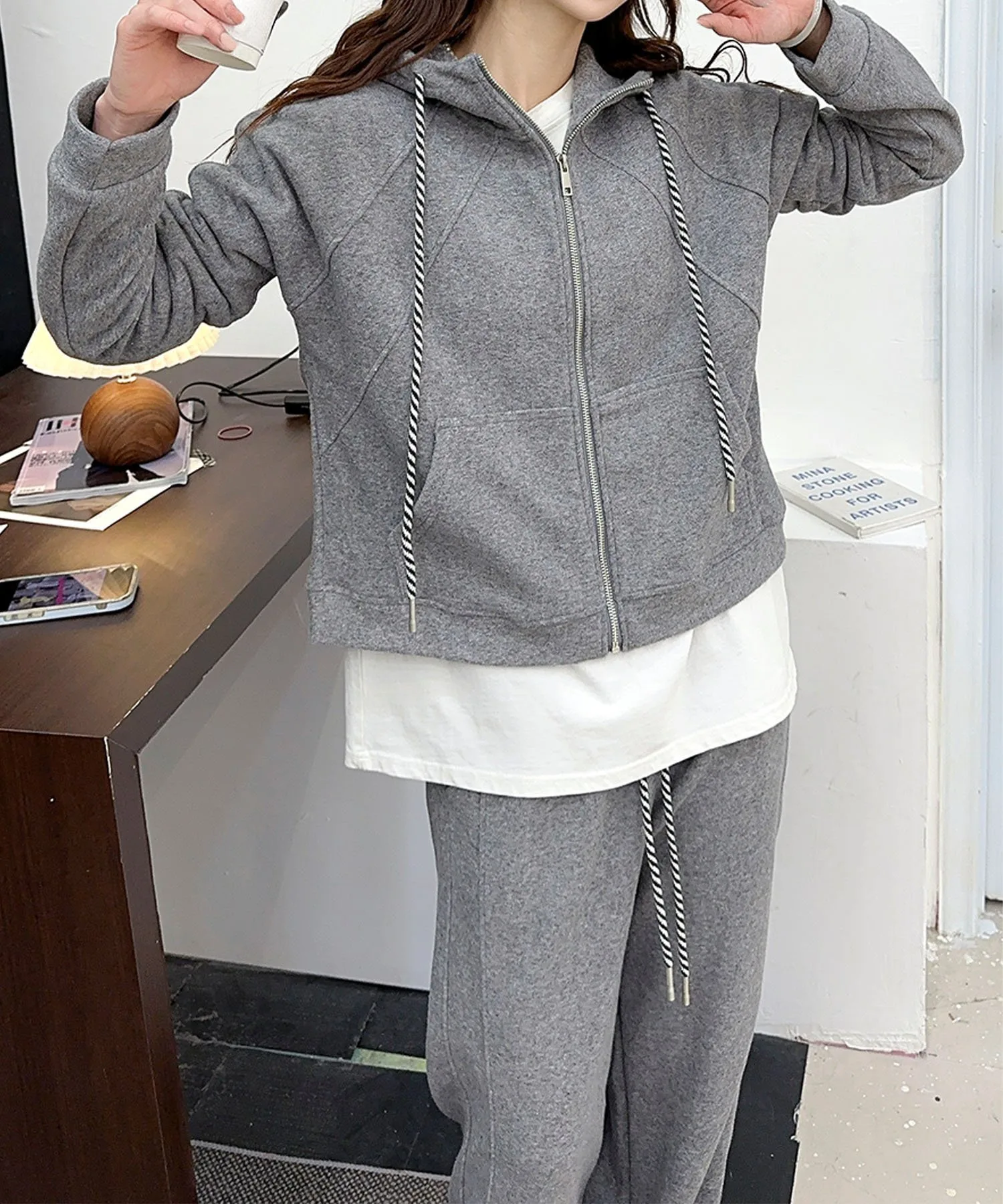 Простой, но стильный комплект с капюшоном. Ношение верха и низа как комплекта позволит легко создать стильный повседневный образ.