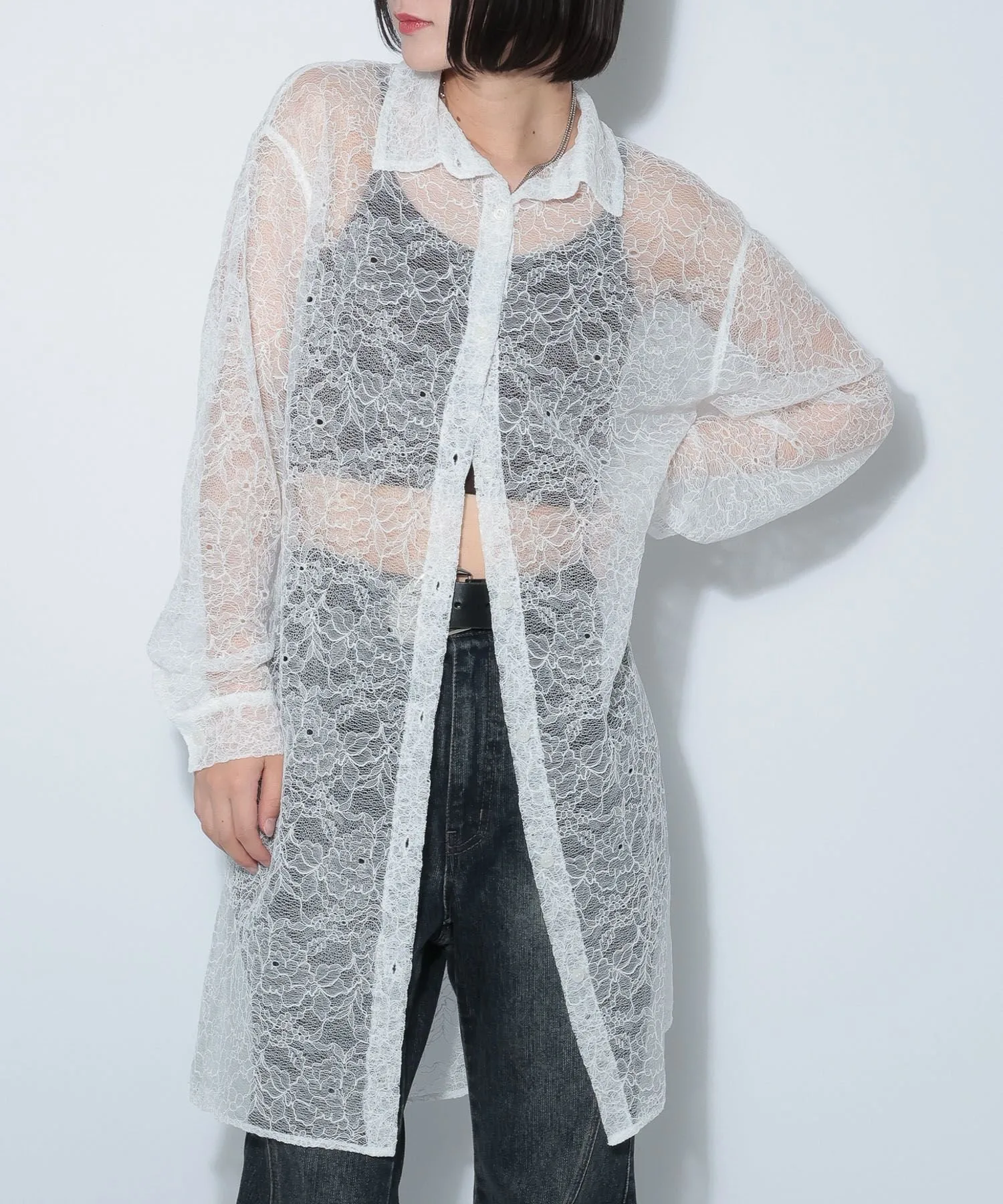 \Платье-рубашка из кружева с нежной прозрачностью/