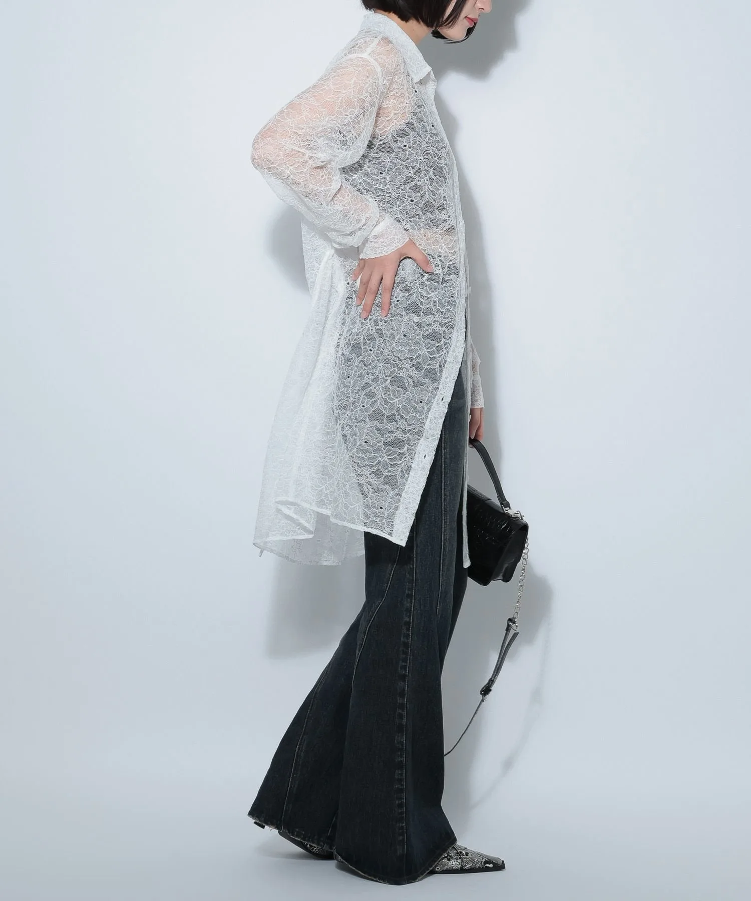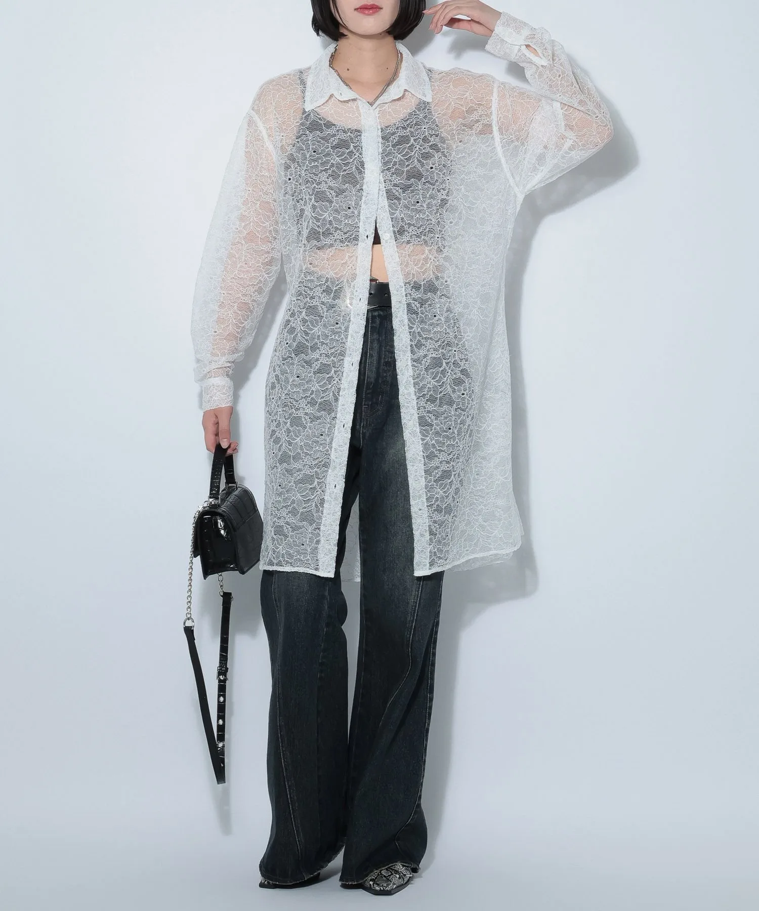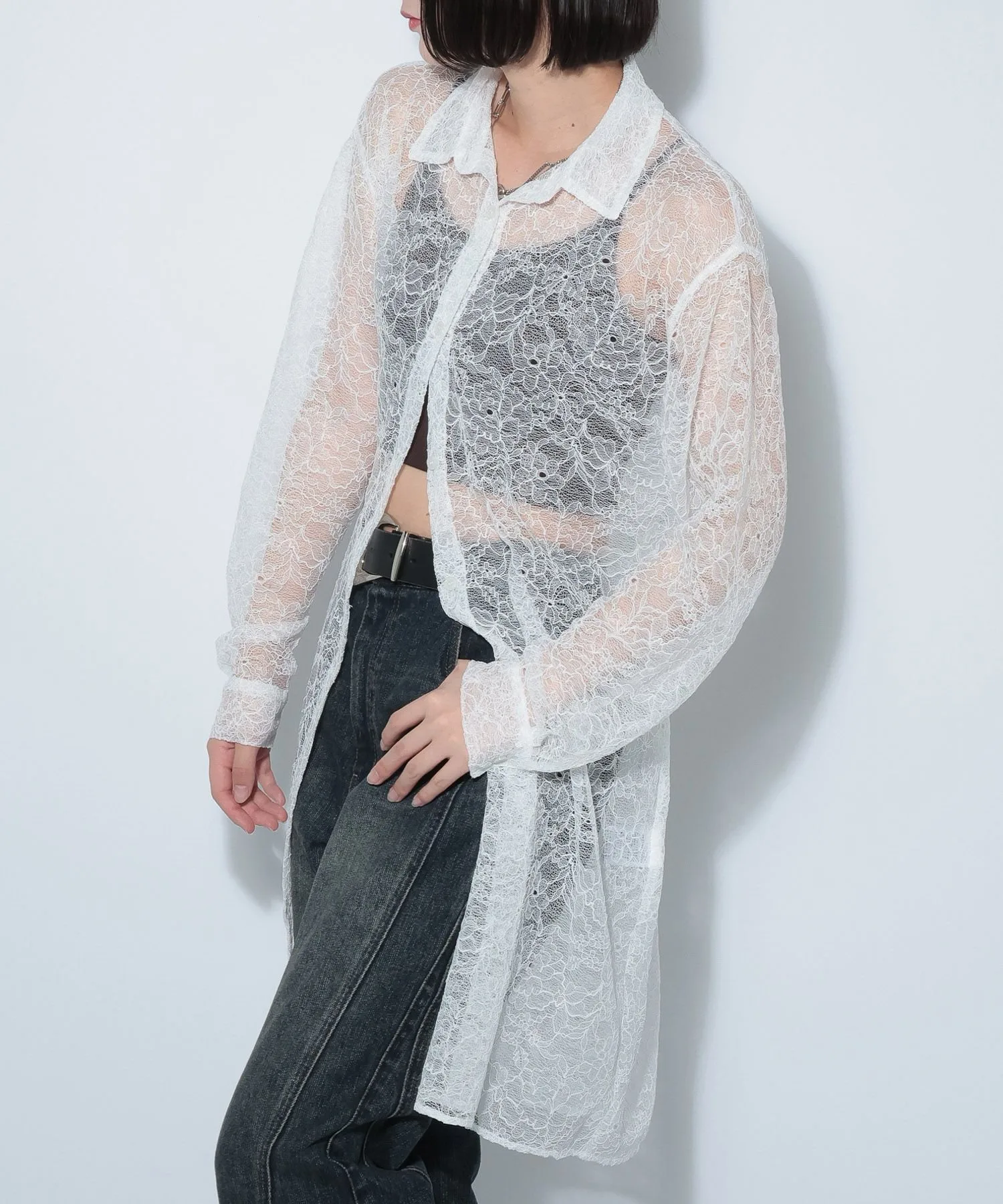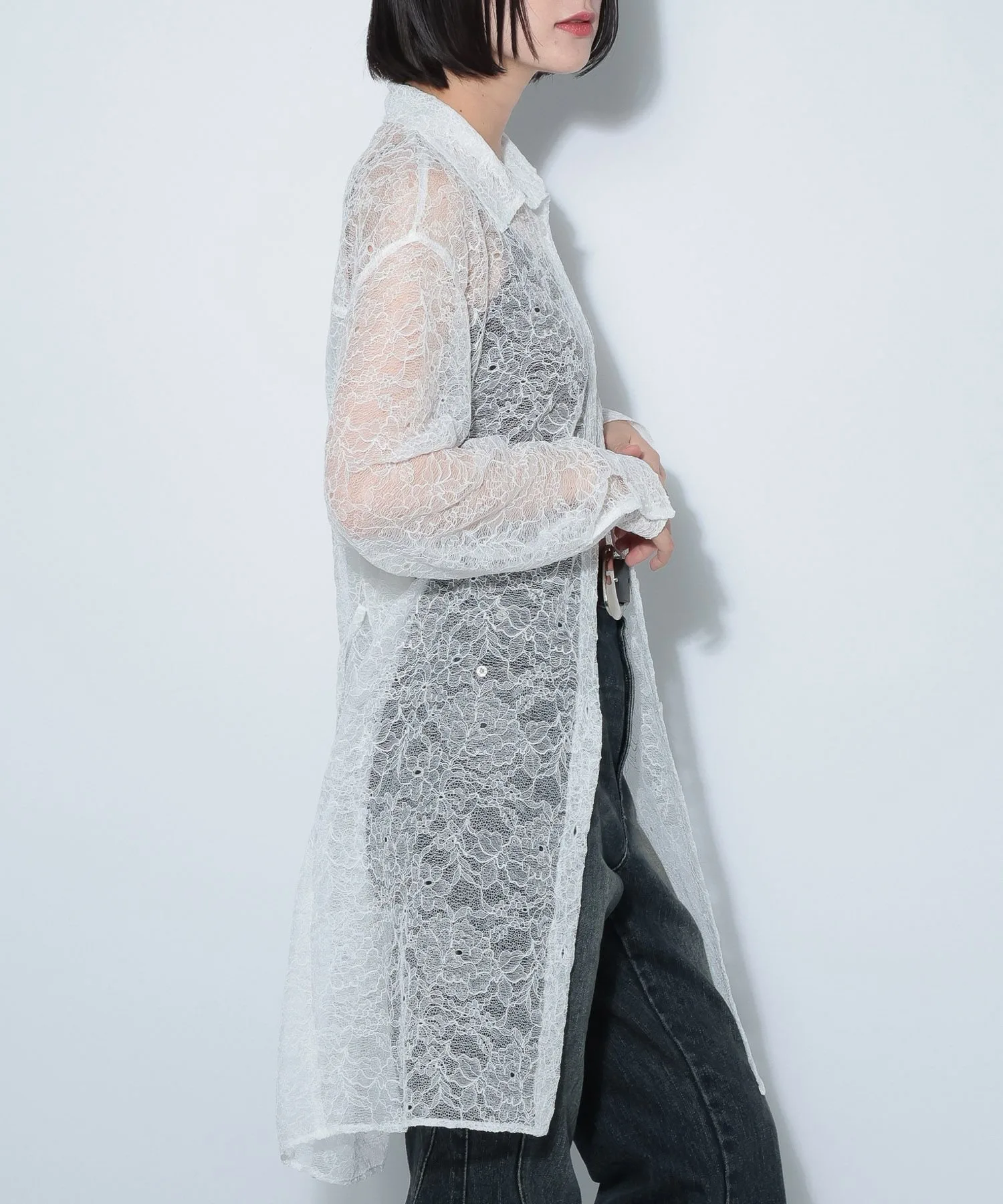 \Платье-рубашка из кружева с нежной прозрачностью/