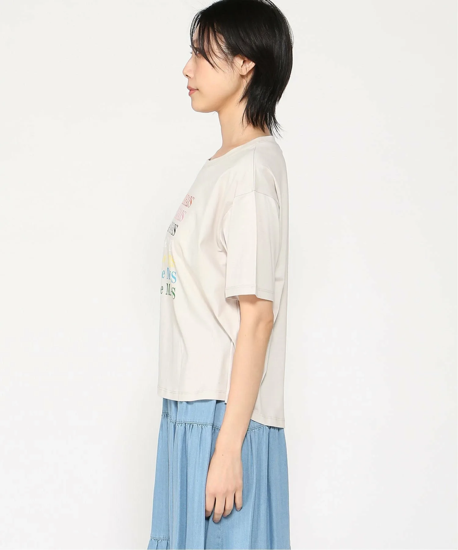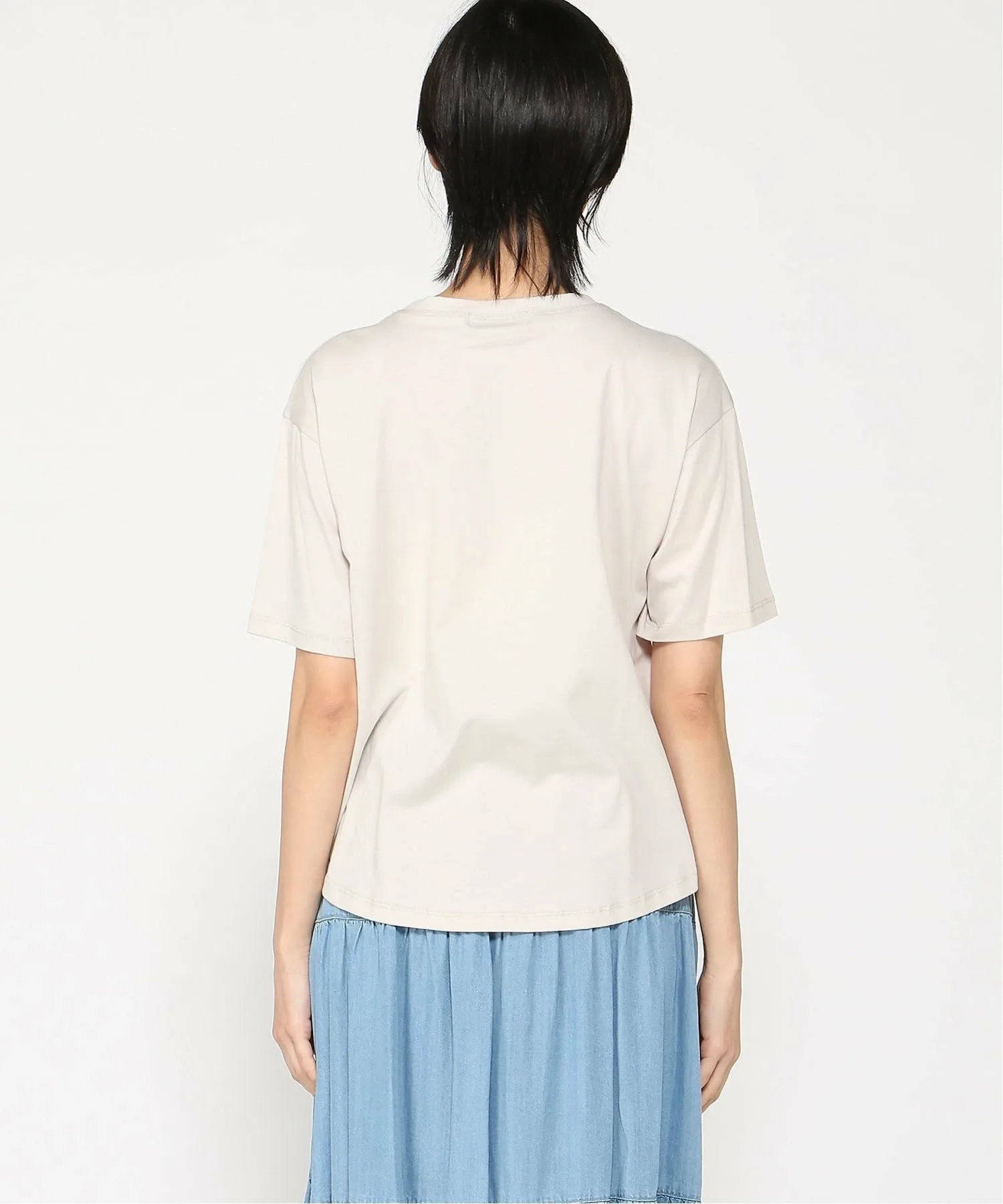 Футболка с коротким рукавом свободного кроя, в меру просторная, создающая непринужденный и легкий образ.