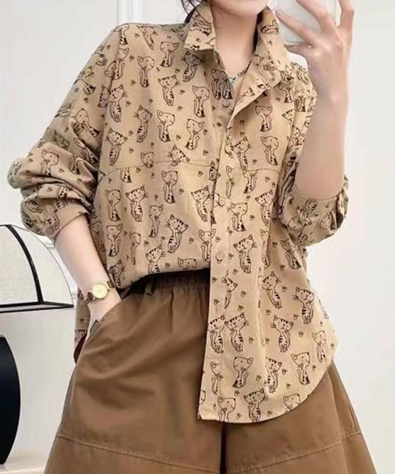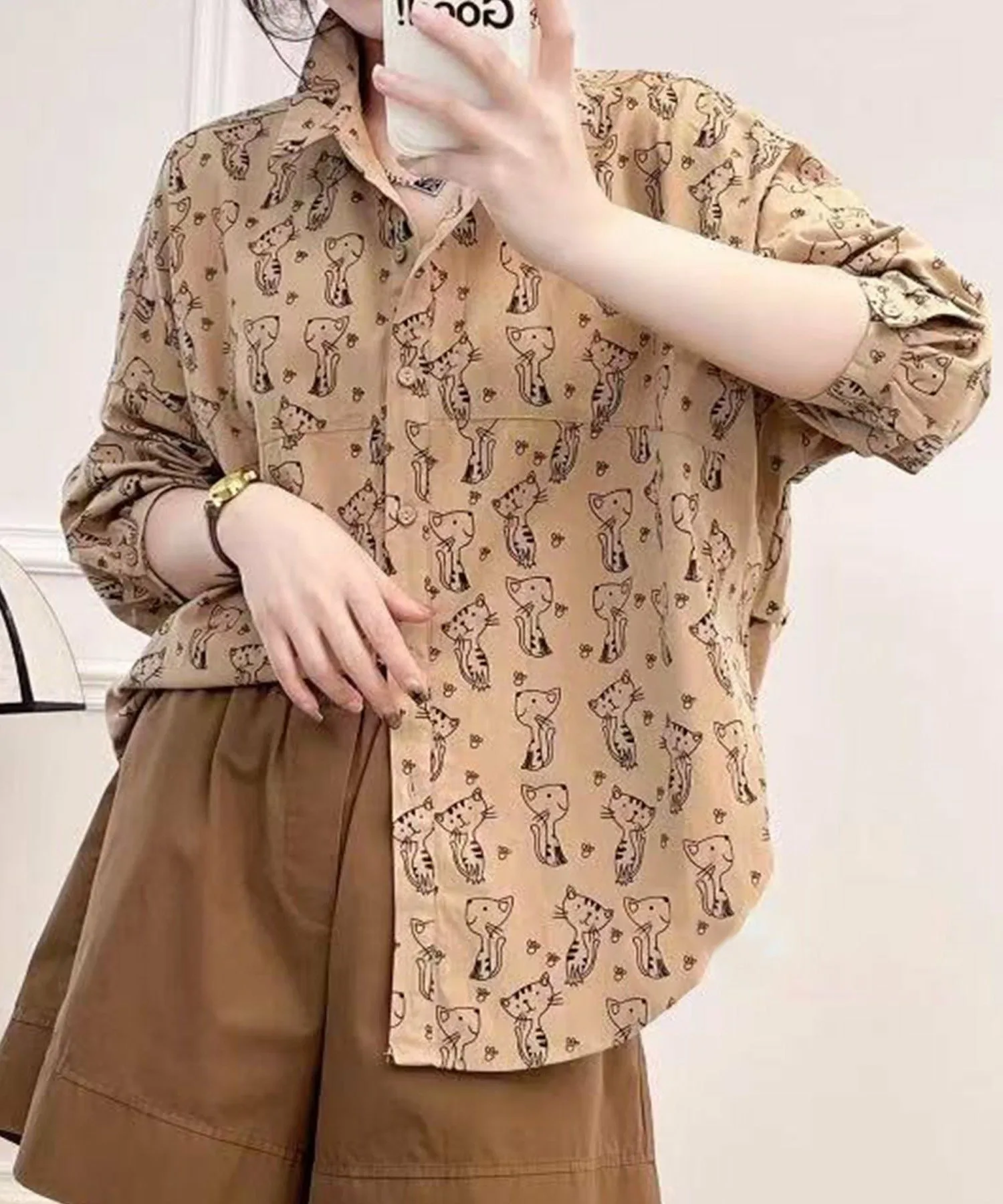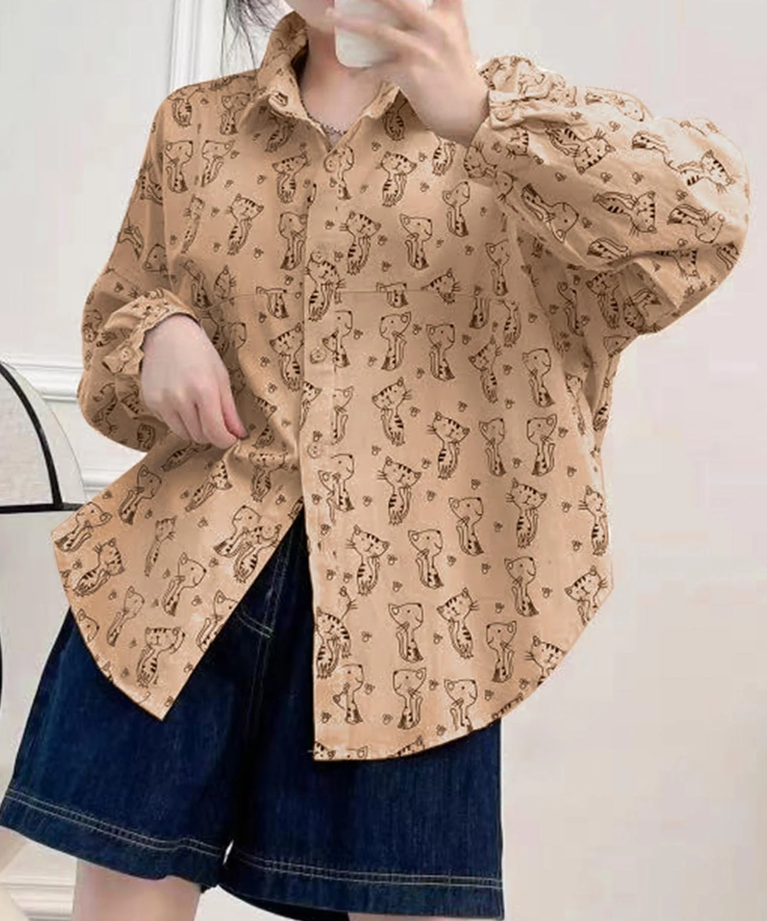 Эта рубашка с длинными рукавами украшена разнообразными принтами. Свободный силуэт обеспечивает комфортную и непринужденную посадку. Это идеальная вещь для повседневного стиля.