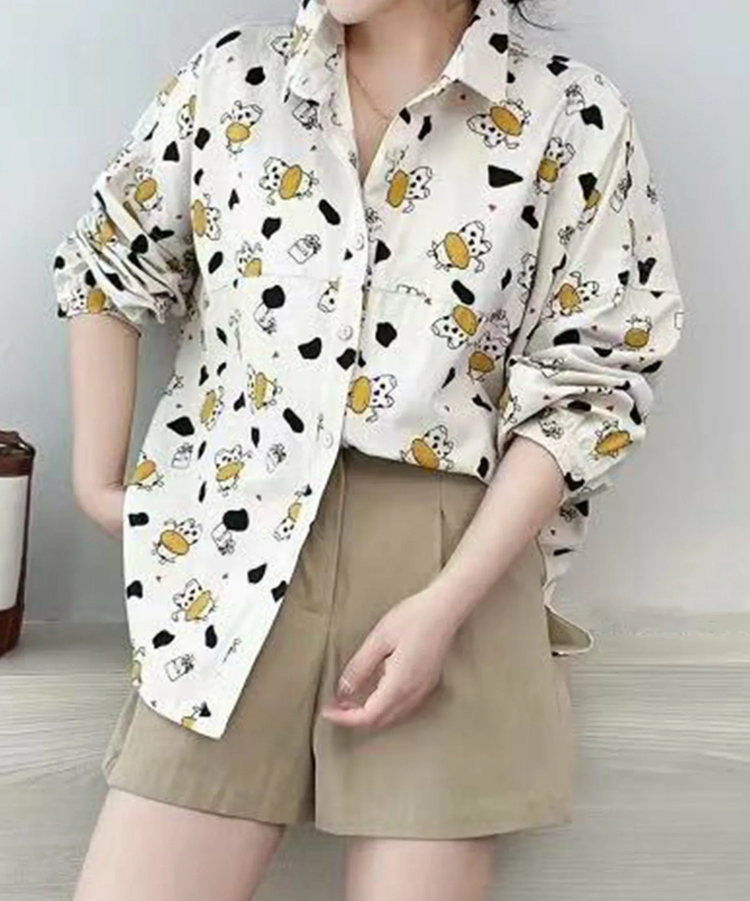 Эта рубашка с длинными рукавами украшена разнообразными принтами. Свободный силуэт обеспечивает комфортную и непринужденную посадку. Это идеальная вещь для повседневного стиля.