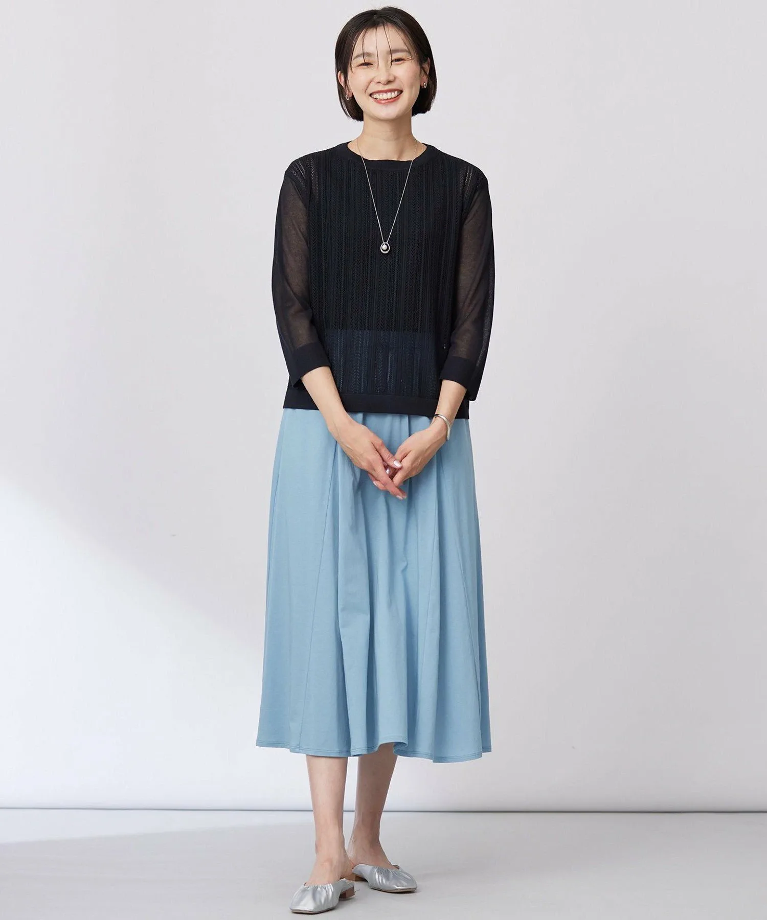 Подчеркните свои весенние образы с помощью идеального сочетания прозрачности! Пуловер длиной 3/4 с приятной на ощупь текстурой. Дизайн: Пуловер с нежной кружевной вязкой по всей поверхности и умеренной прозрачностью рукавов. Кружевная вязка только на основной части создает изысканный и элегантный образ, не будучи при этом слишком броским. Его можно носить как самостоятельно, так и в качестве нижнего слоя под жакет, а рукава длиной 3/4 делают его подходящим для длительного ношения. Это полезная вещь для добавления цвета в ваши весенние образы, благодаря своей универсальности его можно носить с любыми брюками или юбками. Материал: Изготовлен из тонкой вискозно-полиэстерной пряжи. Обладает гладкой драпировкой и приятной на ощупь текстурой. Его нежная, блестящая текстура делает его универсальным как для работы, так и для отдыха. Изделия из того же материала: Вязаный кардиган (KRGJGM0430) Большой размер (KRGTGM0430) Маленький размер (KRG0GM0430) Полосатый вязаный пуловер (KRGJGM0431) Большой размер (KRGTGM0431) Маленький размер (KRG0GM0431) Жилет (KRGJGM0432) Большой размер (KRGTGM0432) Маленький размер (KRG0GM0432) *Обратите внимание, что изображения товаров являются образцами и могут быть изменены по цвету, размеру и другим характеристикам. Модель: H170 C81 W59 H85