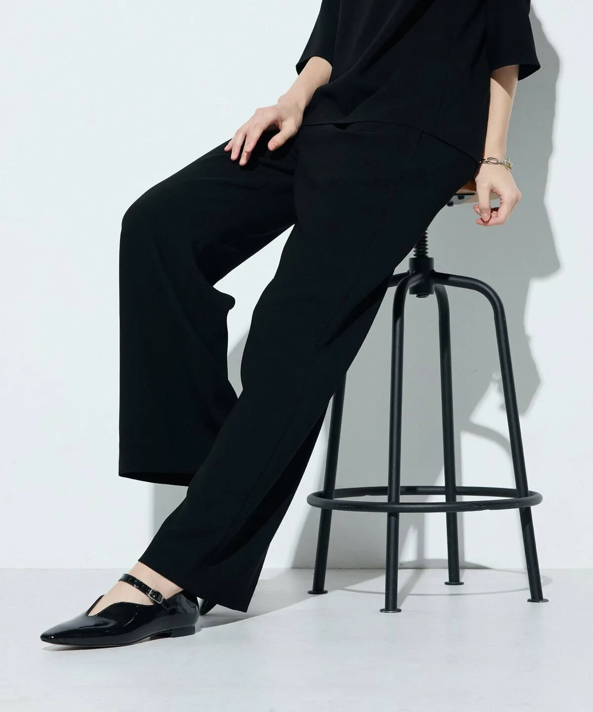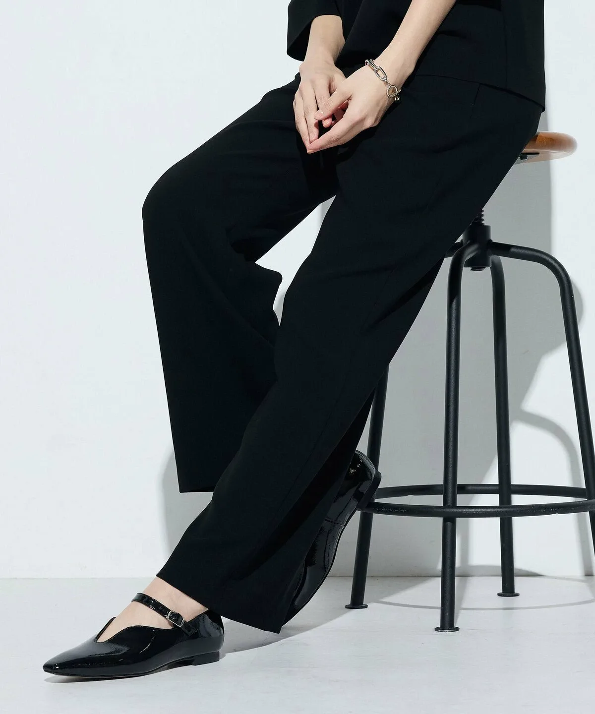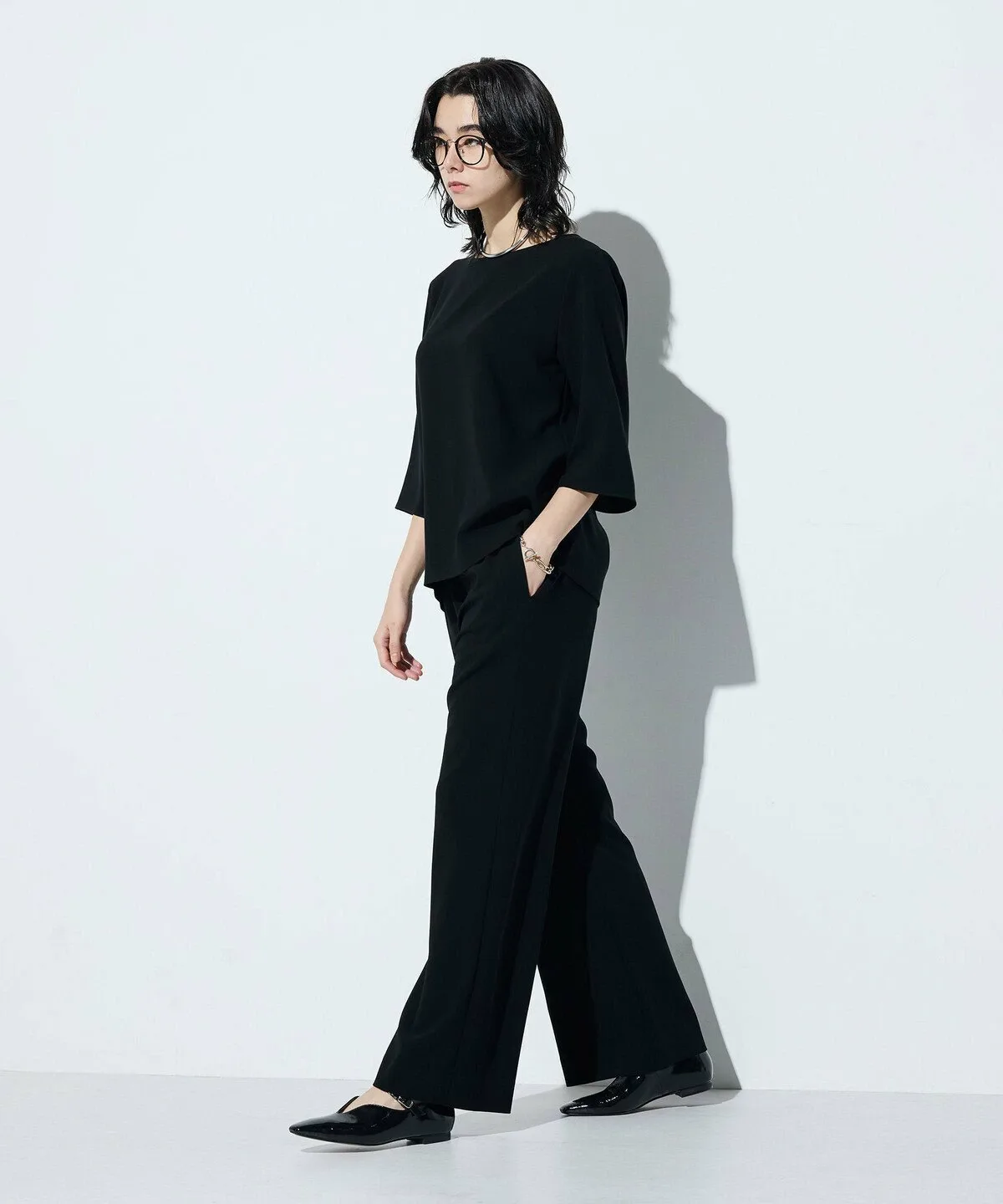 Ткань двойного плетения придает брюкам умеренно плотную текстуру, благодаря чему они меньше подчеркивают фигуру.