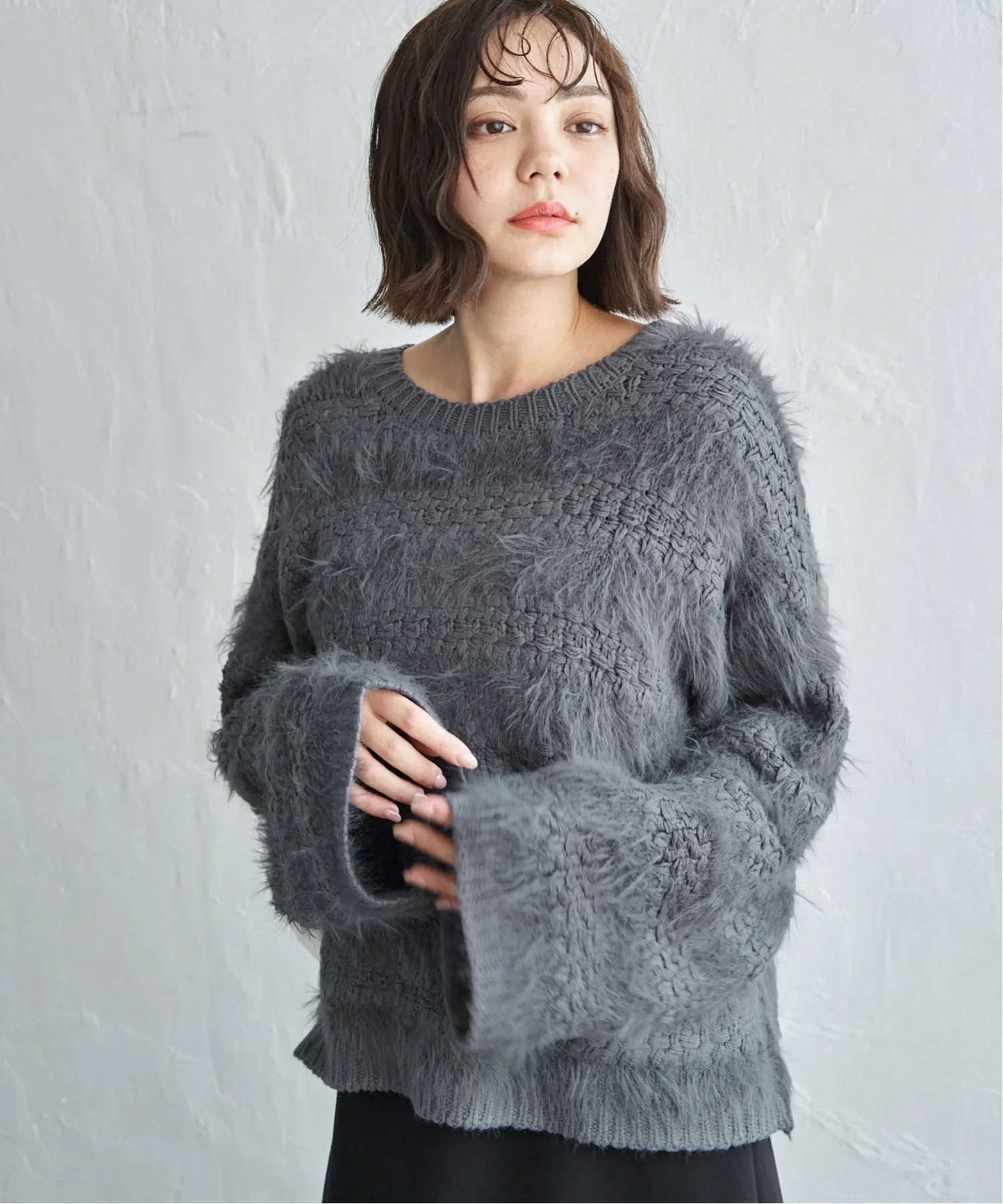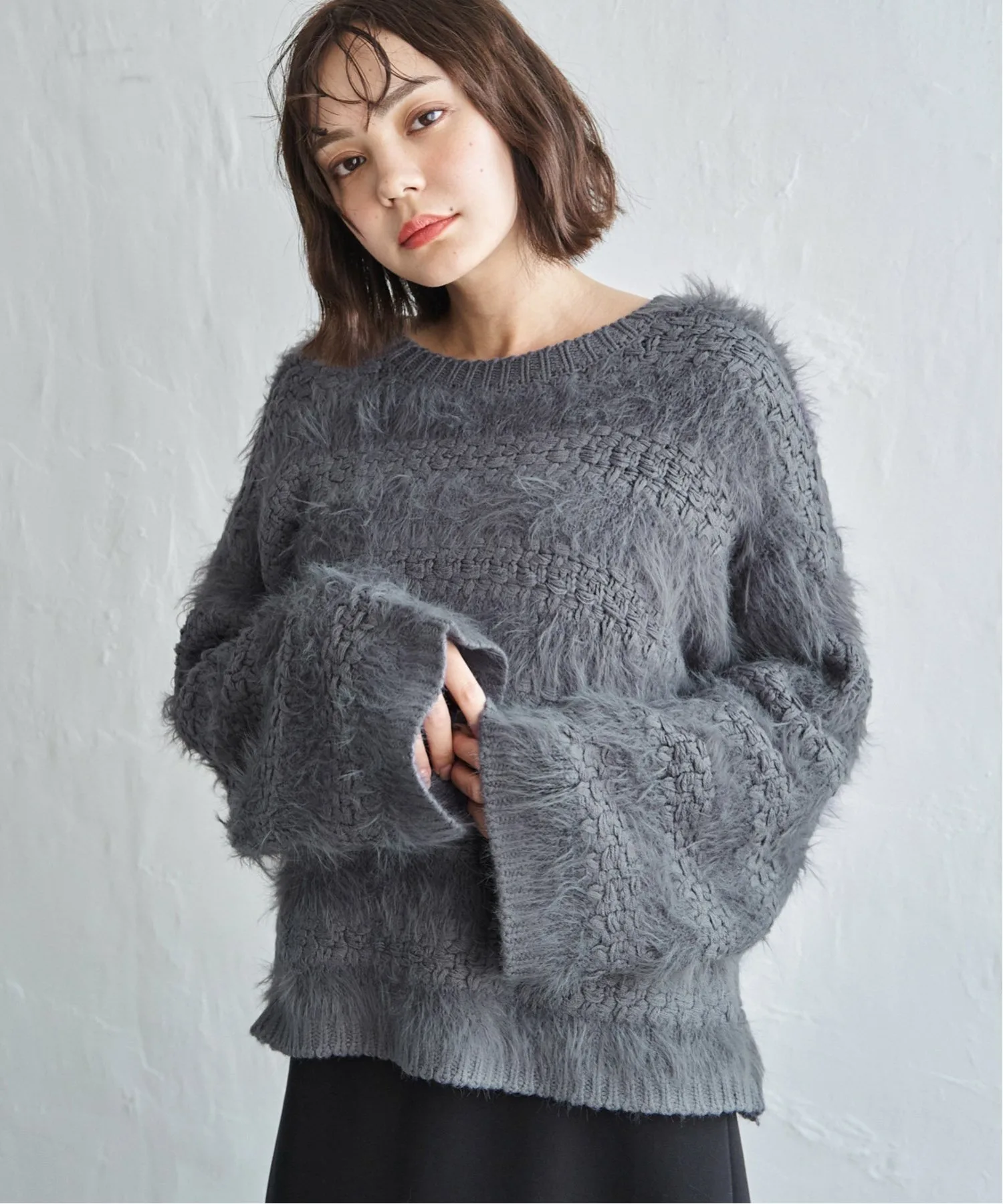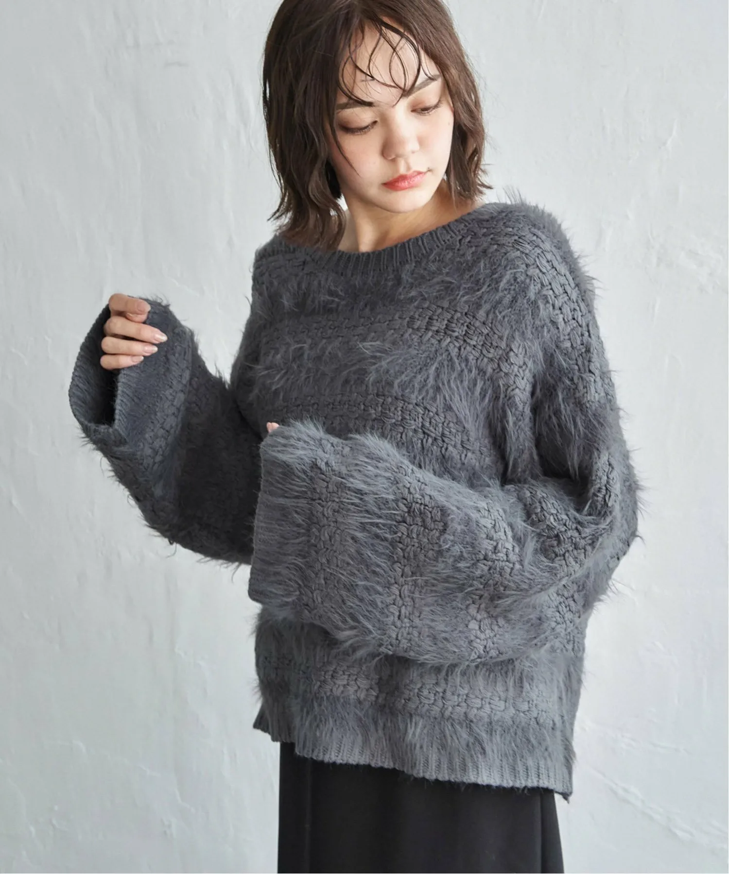 Этот трикотаж сочетает в себе свободную вязку и пушистую пряжу.