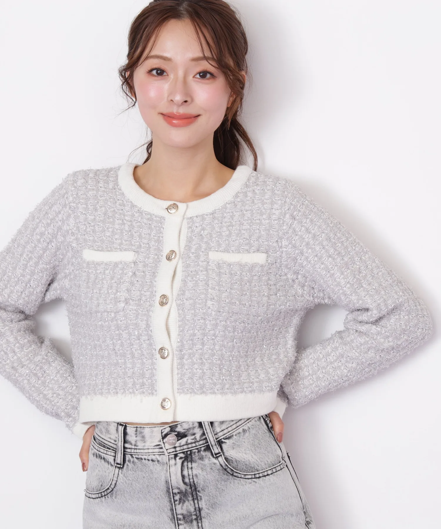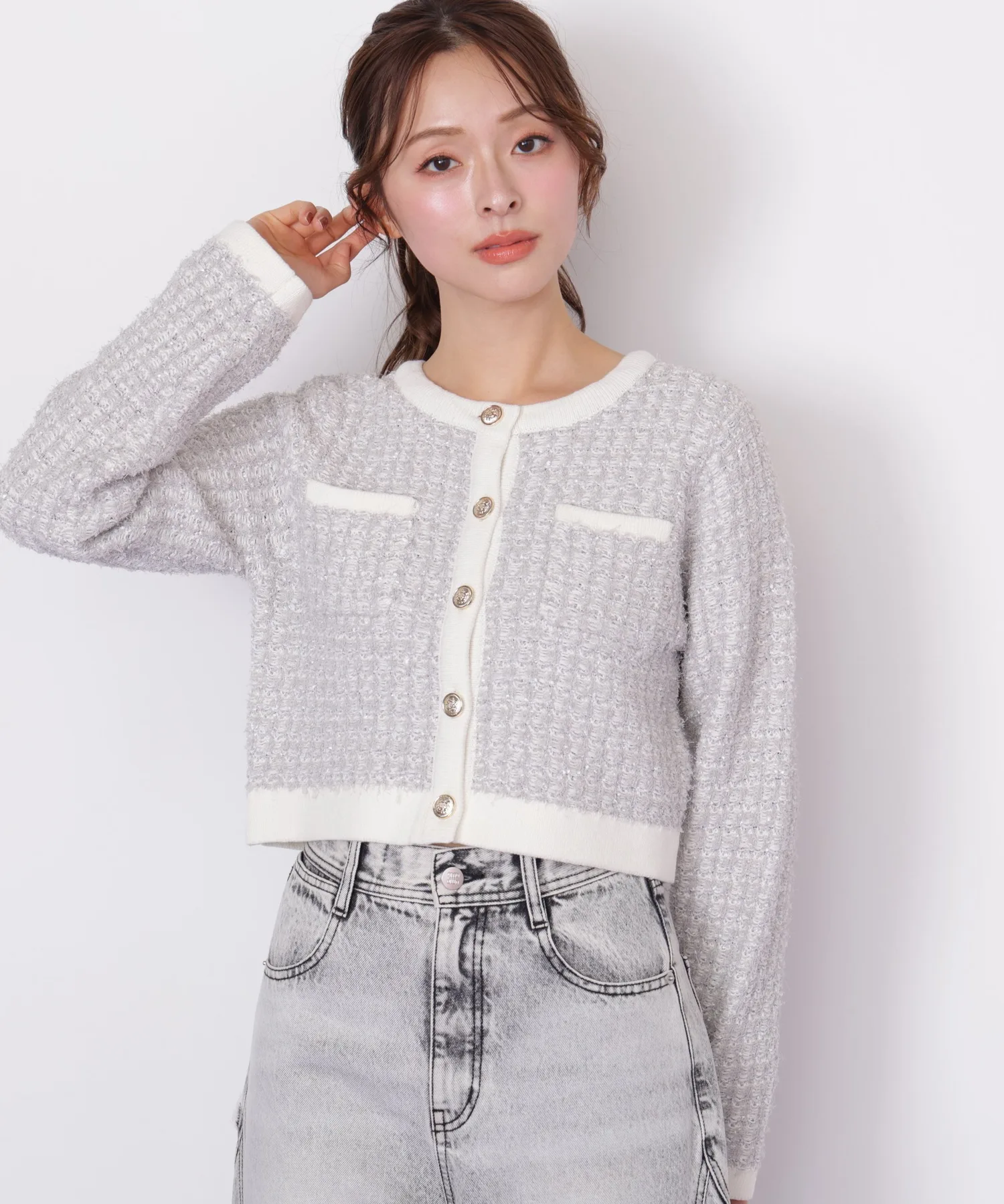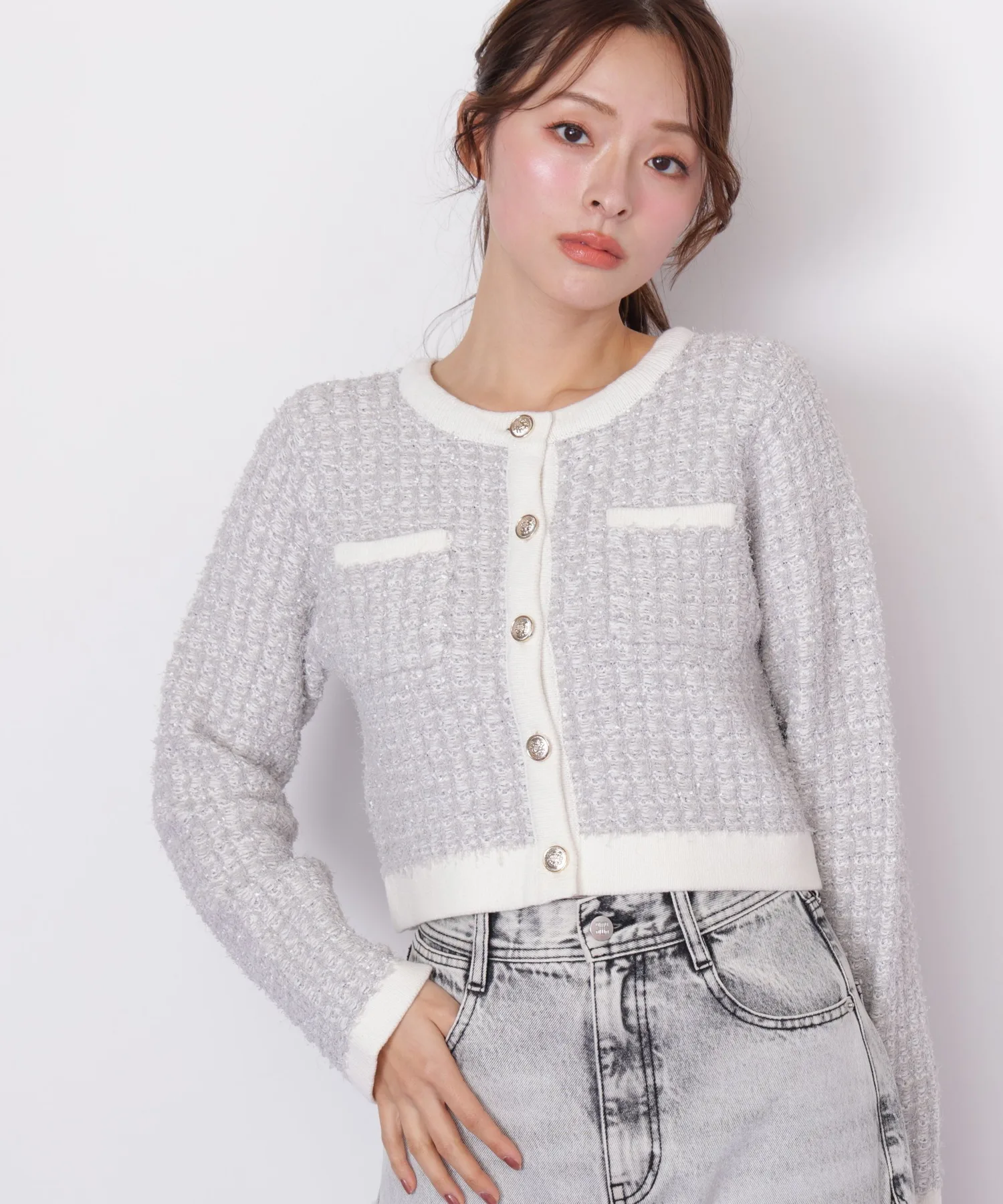 Этот вязаный жакет выполнен из великолепного комбинированного материала, напоминающего твид. Он имеет оптимальную толщину, обеспечивая легкость и одновременно роскошь, а сочетание с простым платьем или брюками подчеркнет ваш образ. Это универсальный жакет, мягкий на ощупь, но при этом аккуратный и женственный. *Цвет может отличаться в зависимости от условий освещения во время фотосъемки.