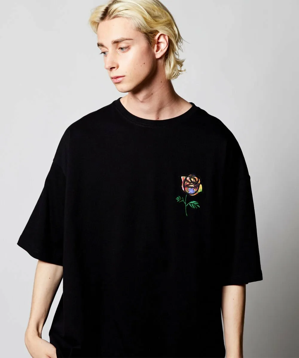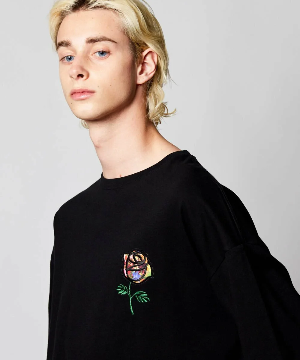 На левой стороне груди с помощью специальной техники вырезан мотив розы, а сзади вставлен оригинальный материал, что добавляет изюминку, характерную для бренда.